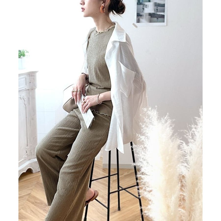 同素材のパンツと合わせて旬のセットアップコーデが完成します♪