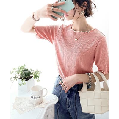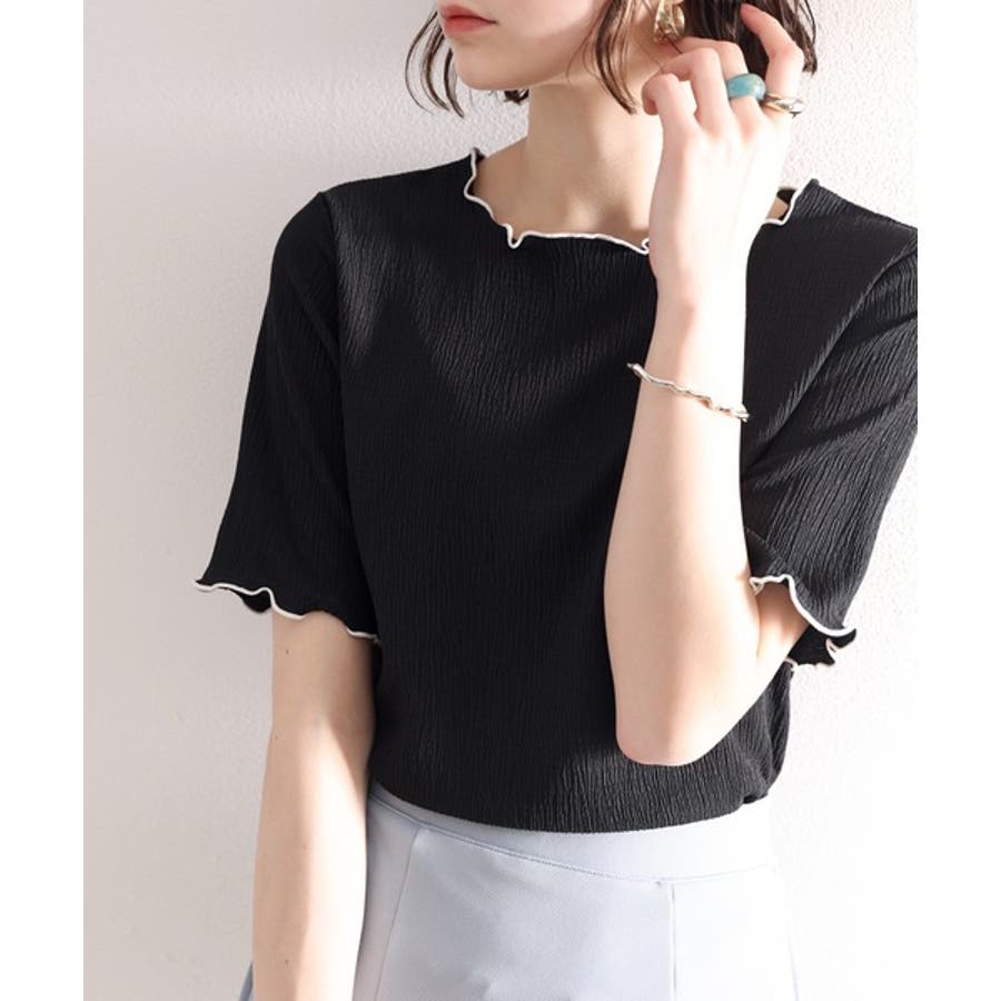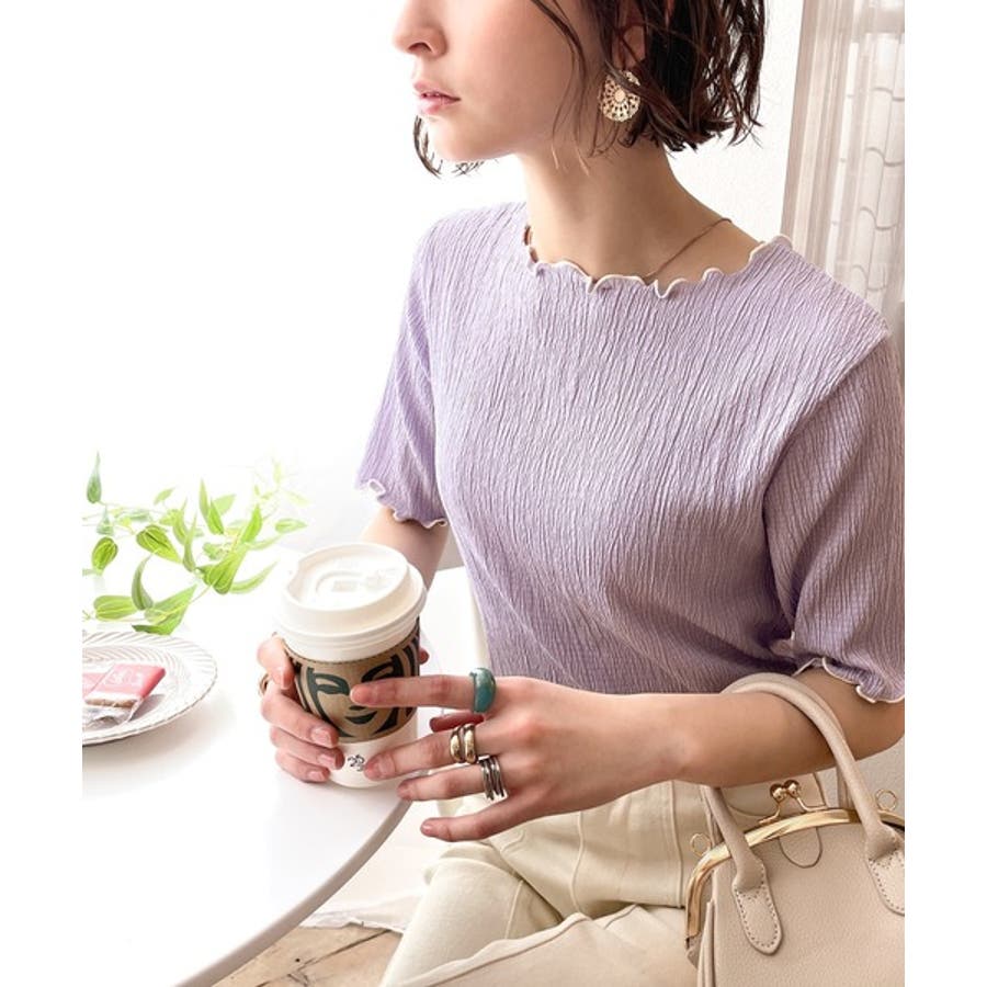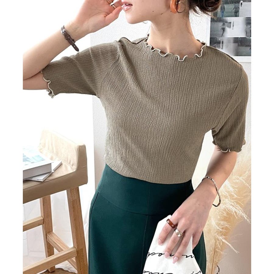 シボ感のあるシャーリングカットソー。