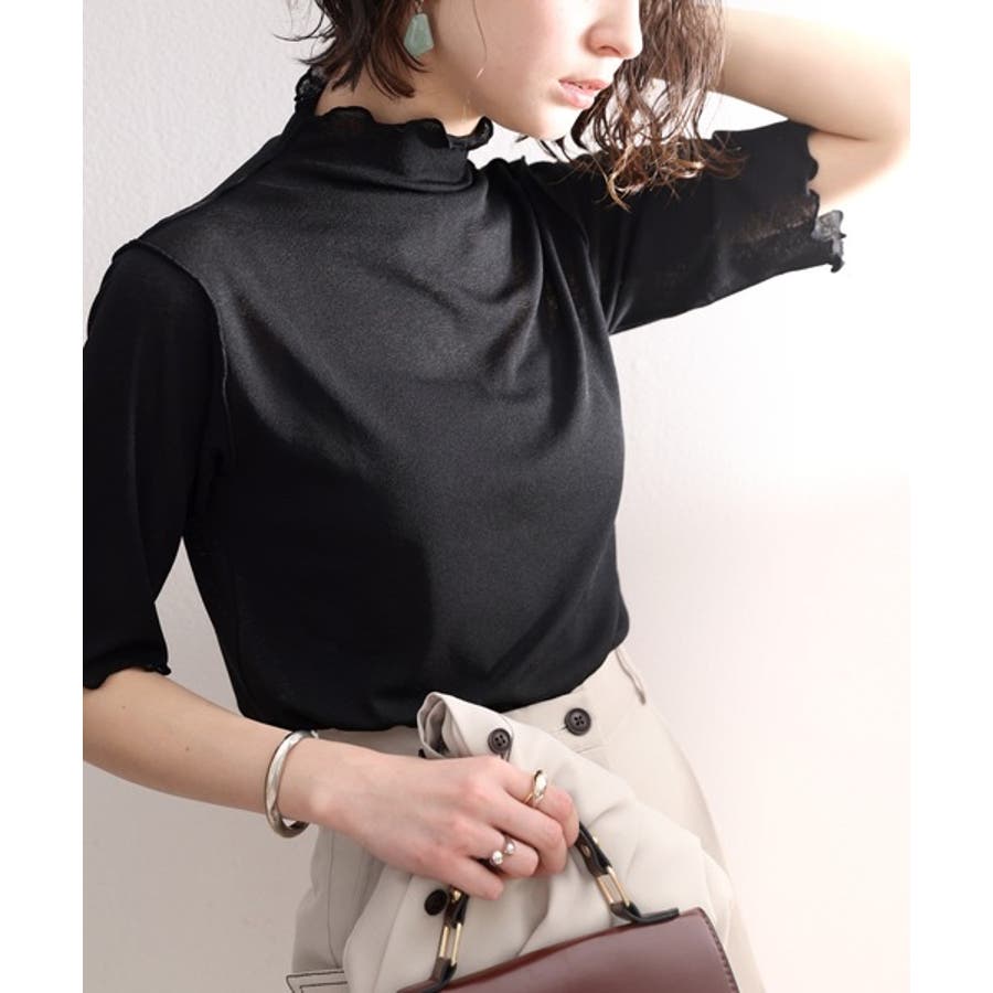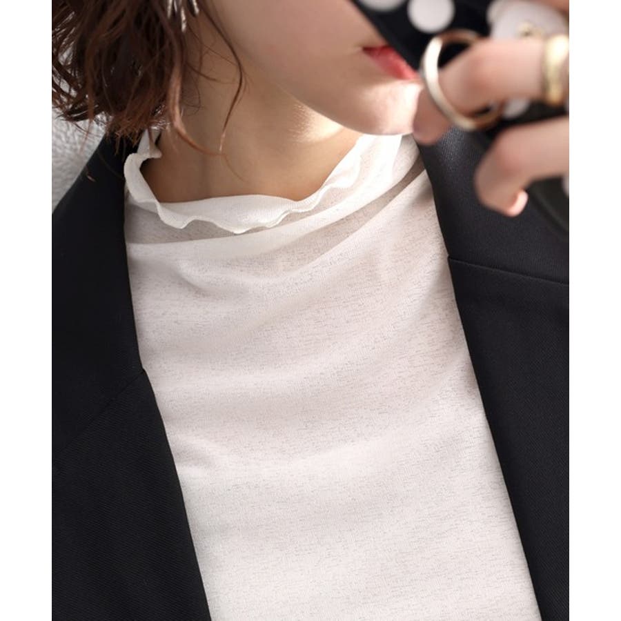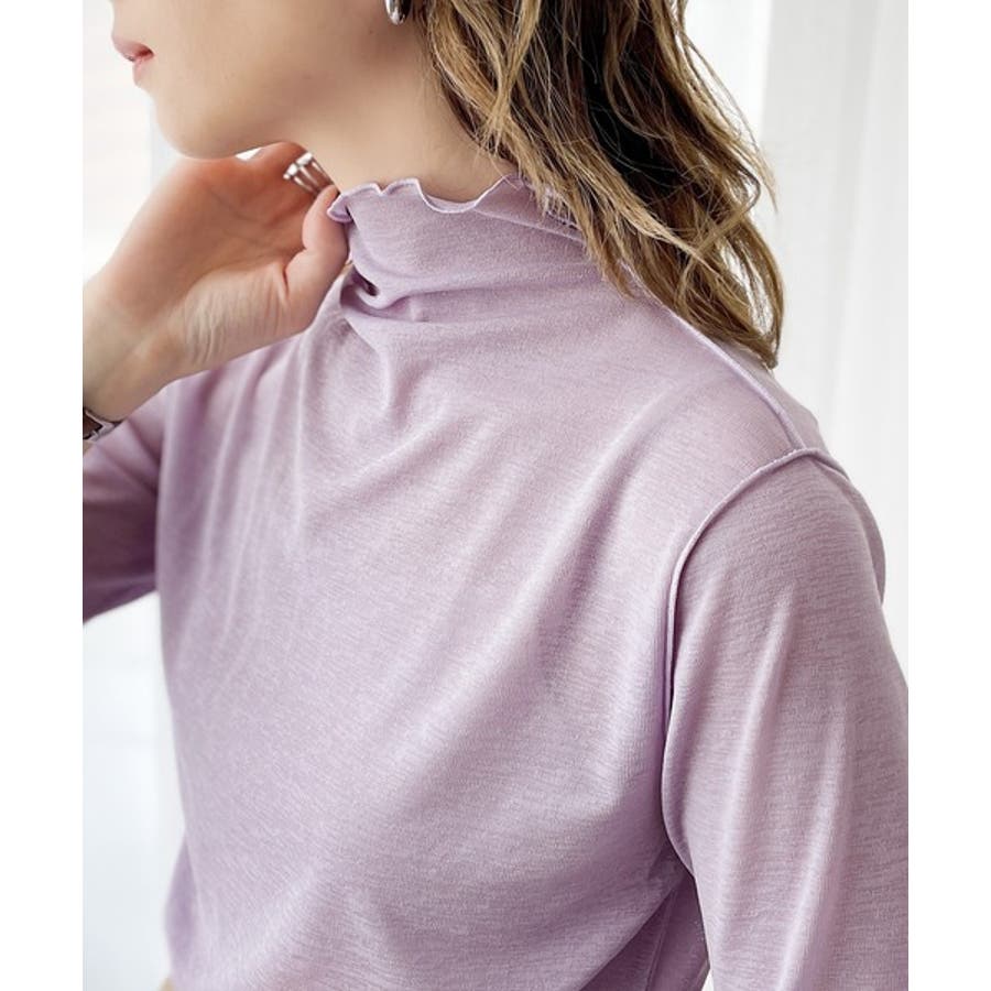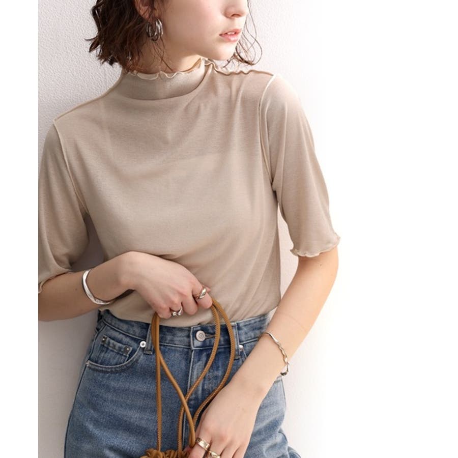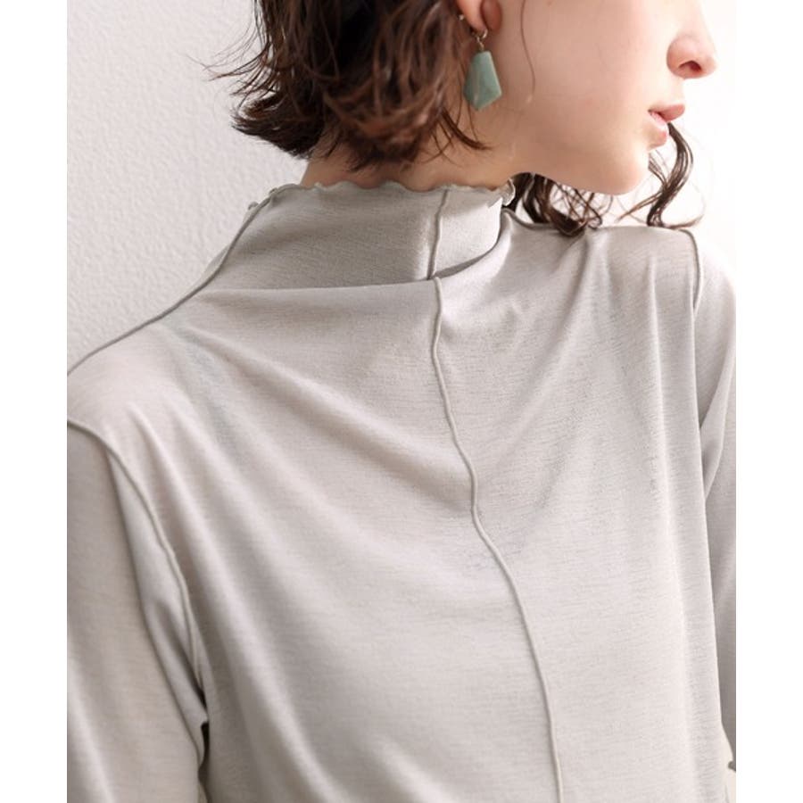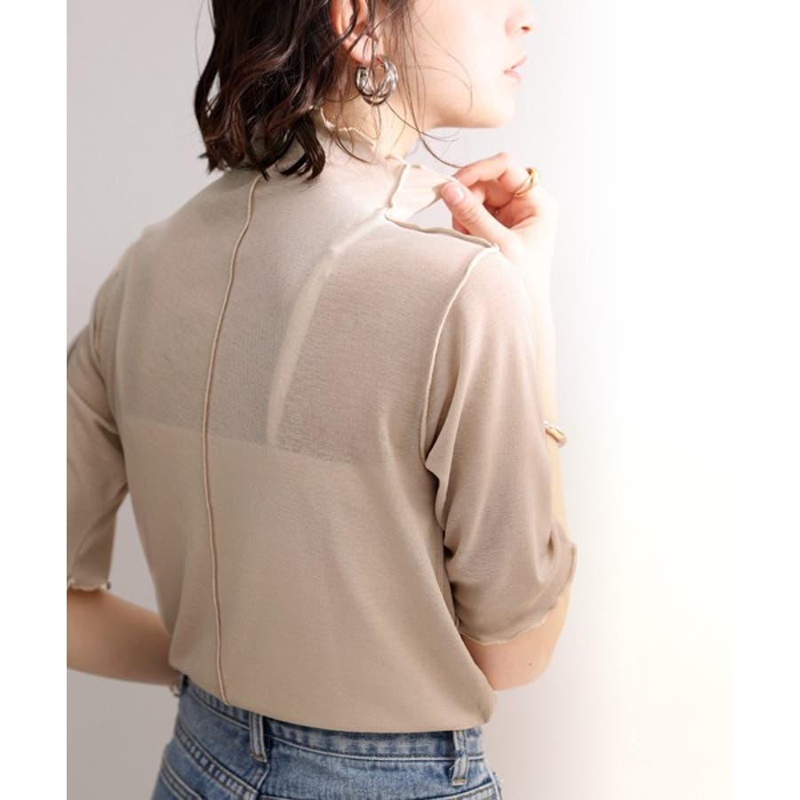 透け感のあるシンプルなハイネックトップス。