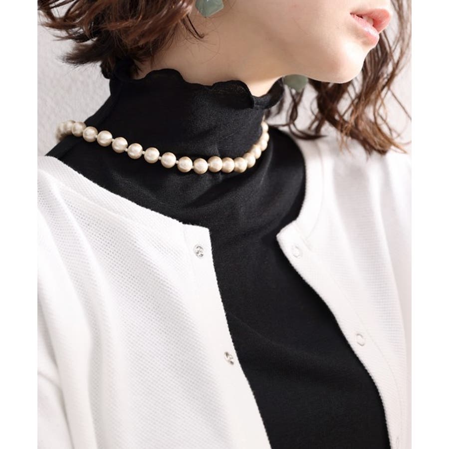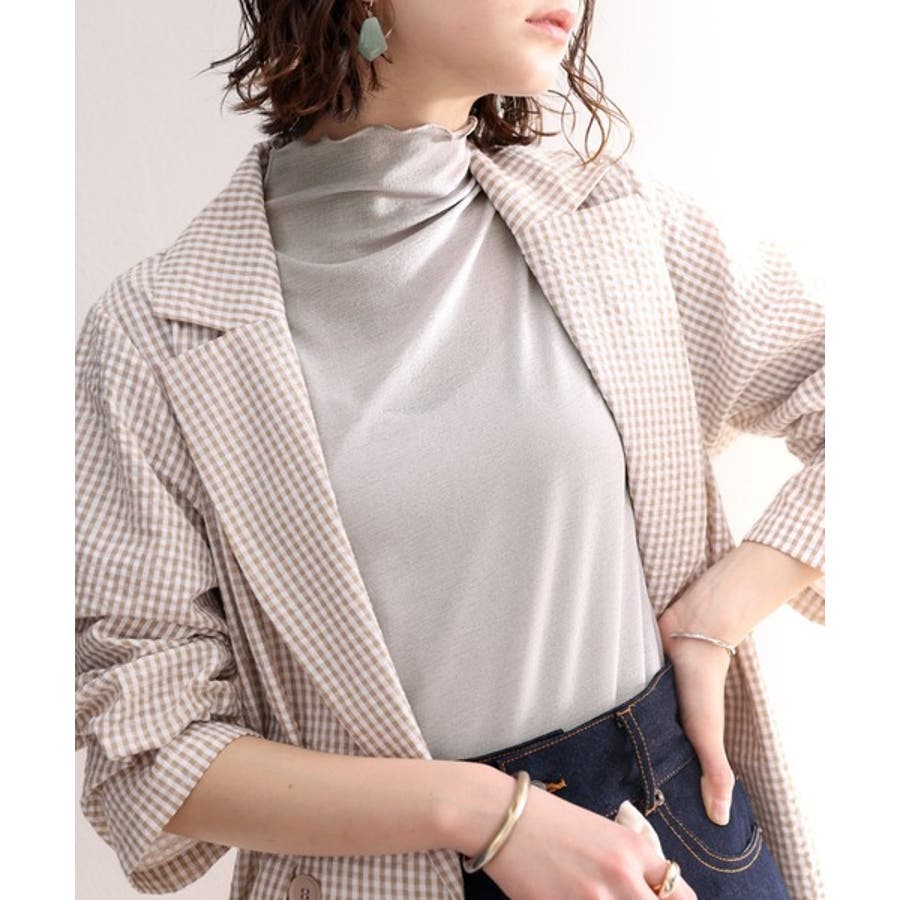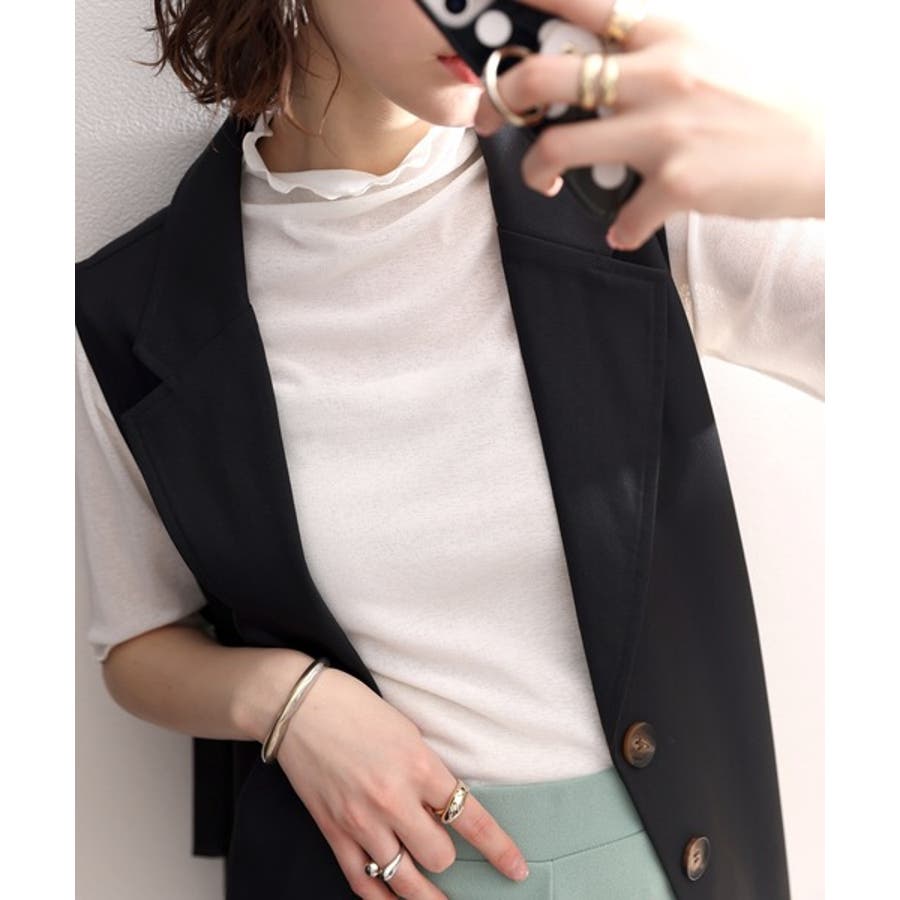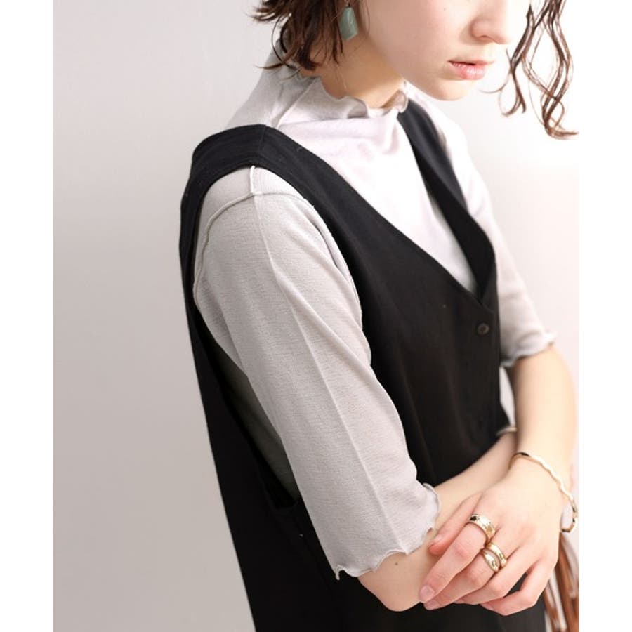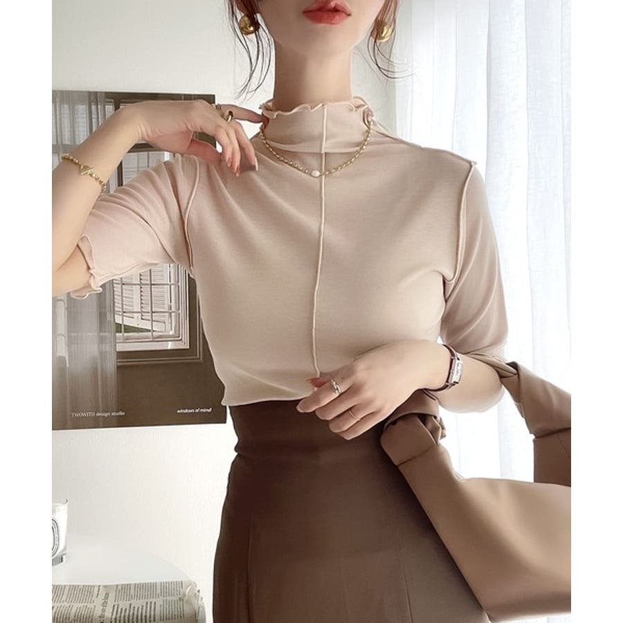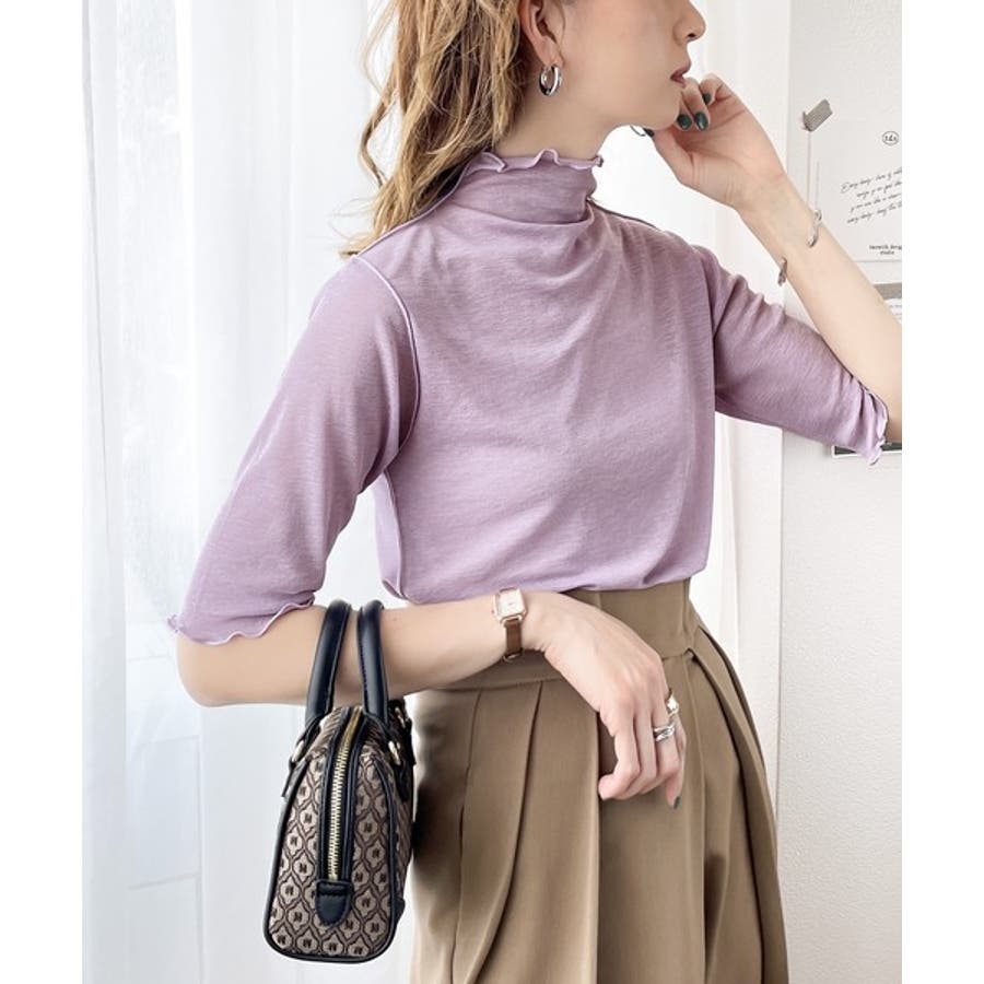 透け感のあるシンプルなハイネックトップス。