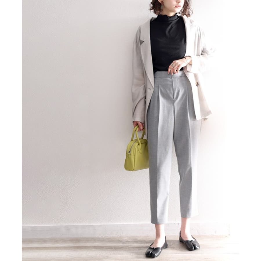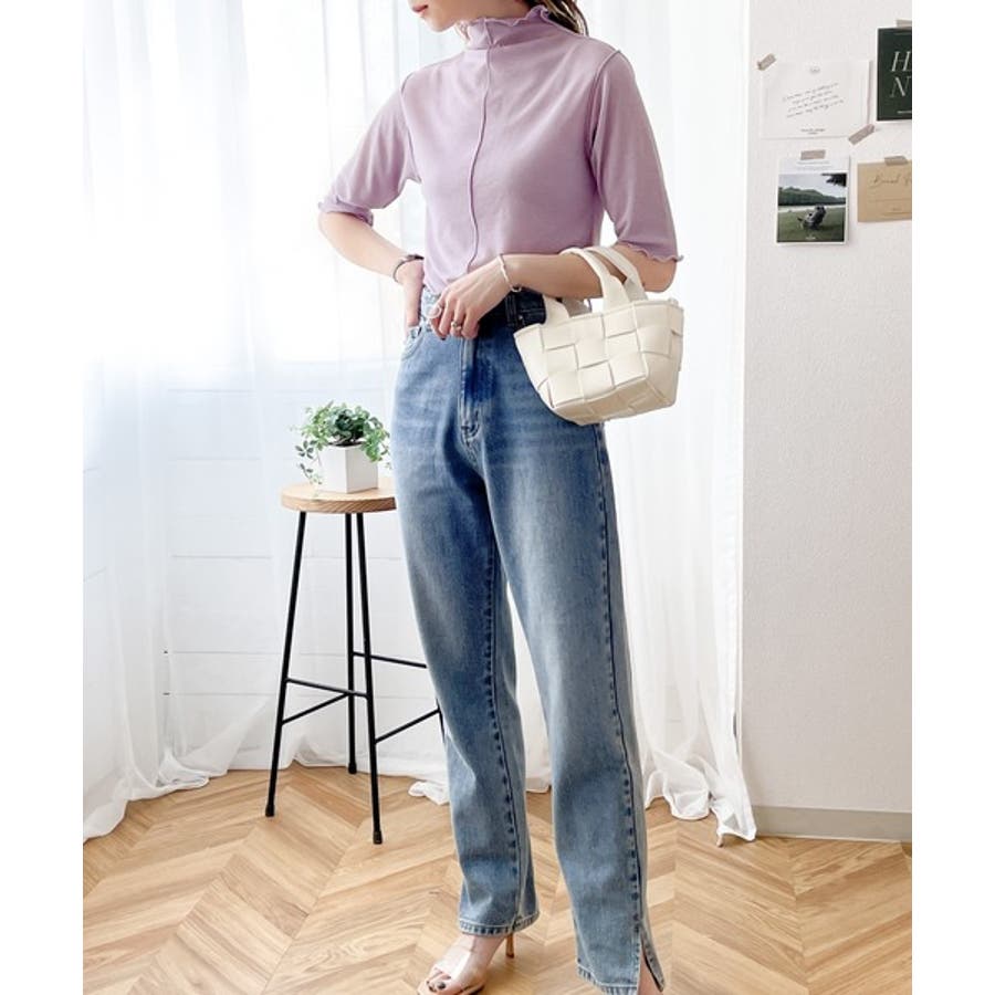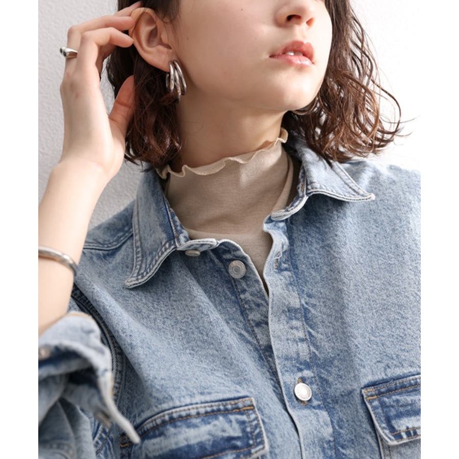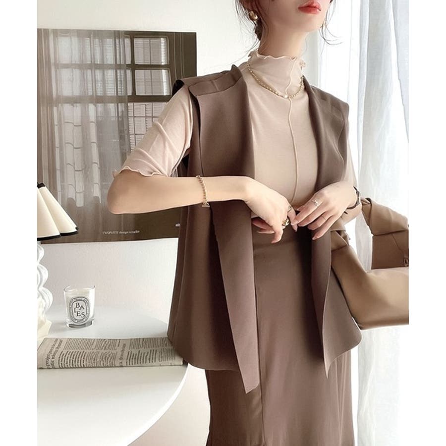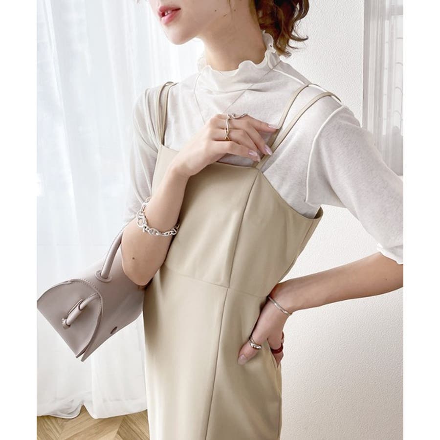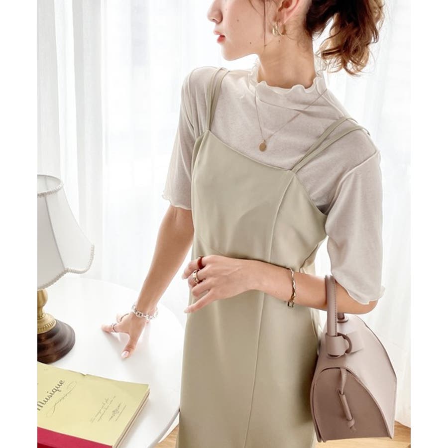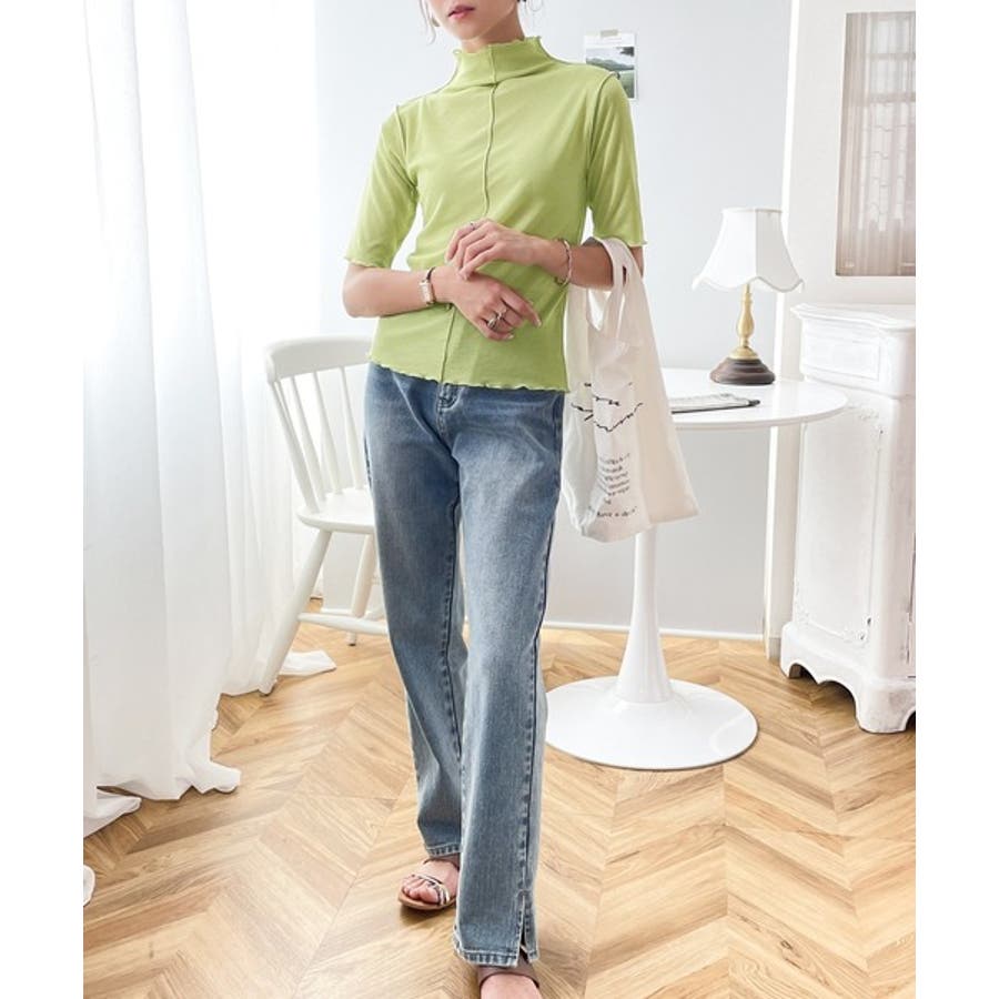 透け感のあるシンプルなハイネックトップス。