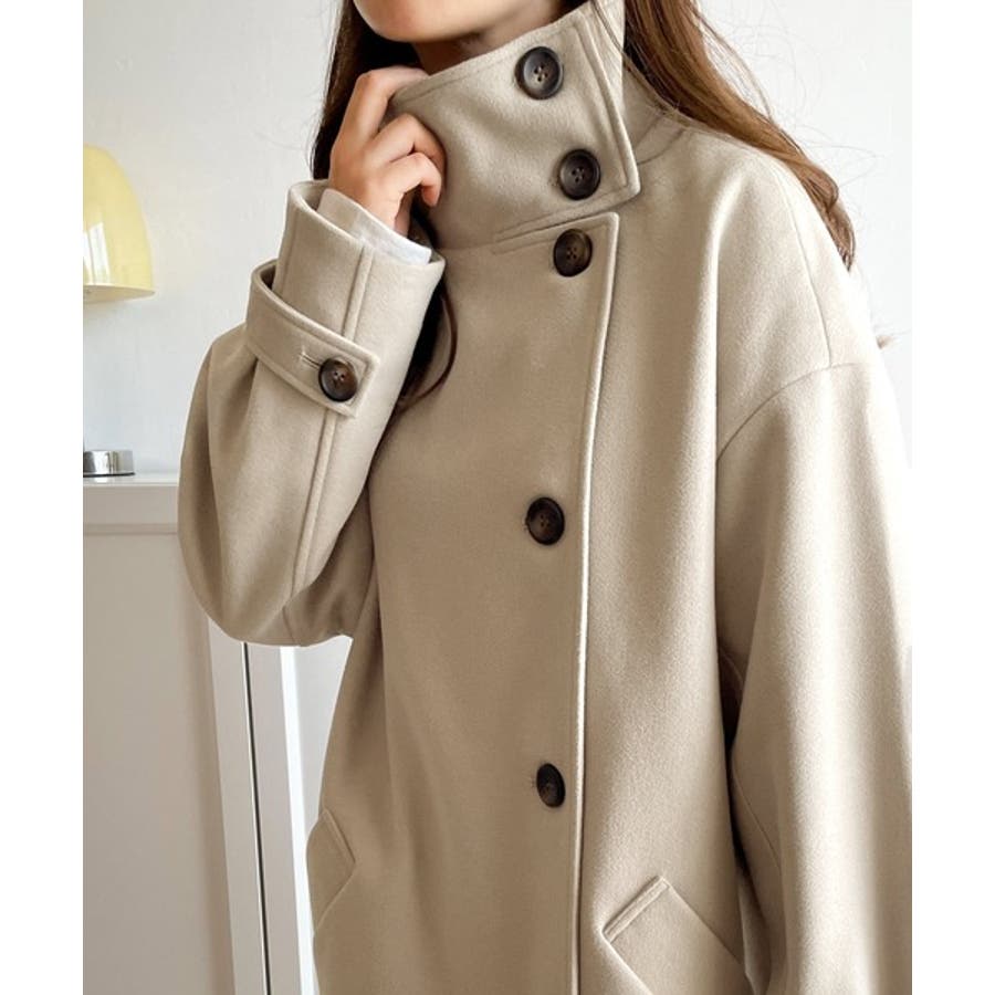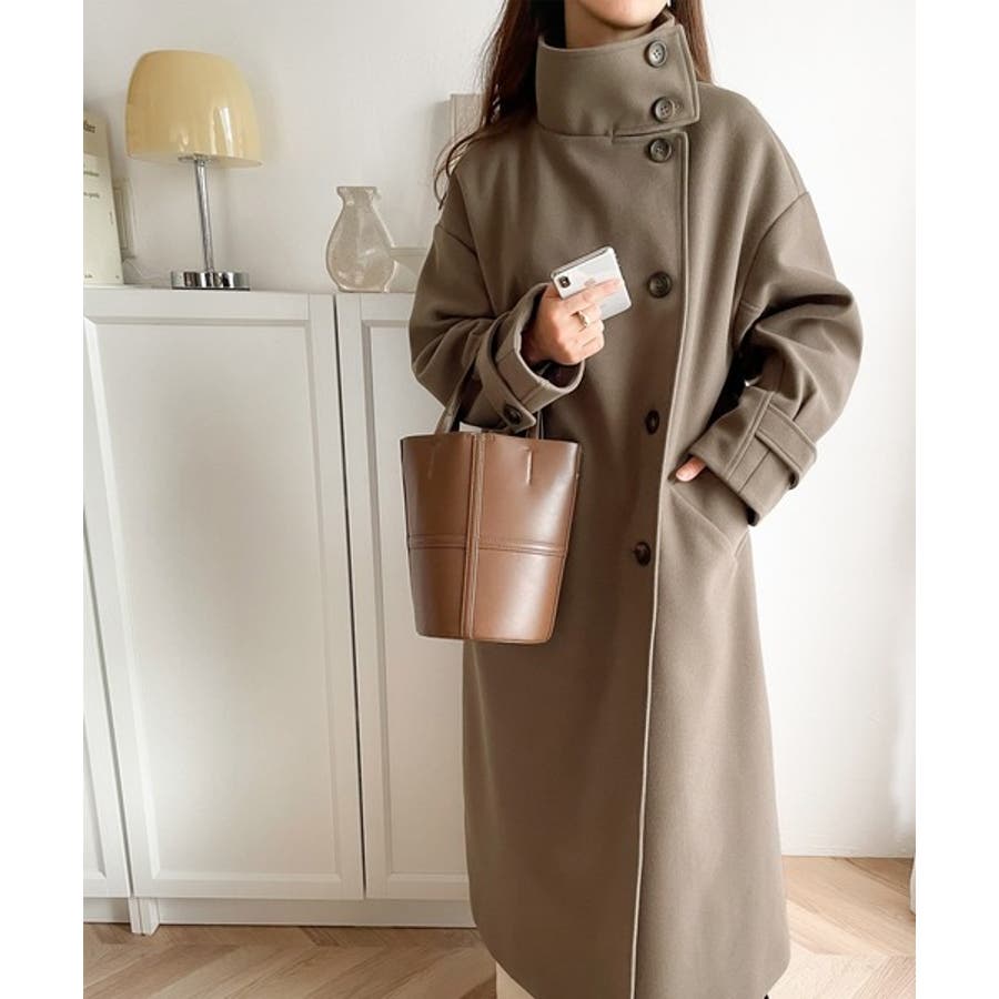 この秋冬トレンドのスタンドカラーロングコートです。