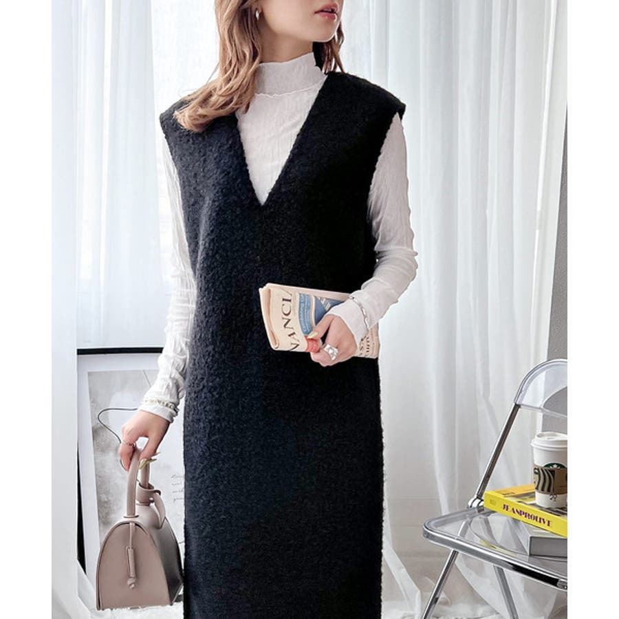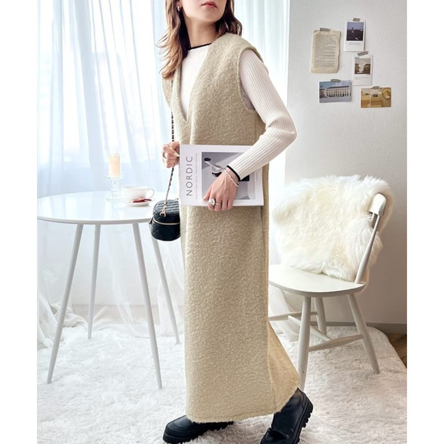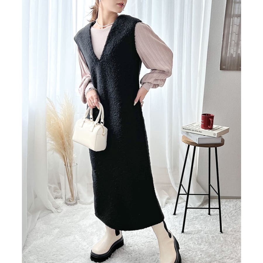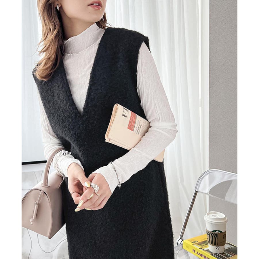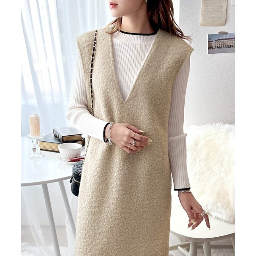 くるくる起毛がキュート。フェイクリングウール Vネックワンピース