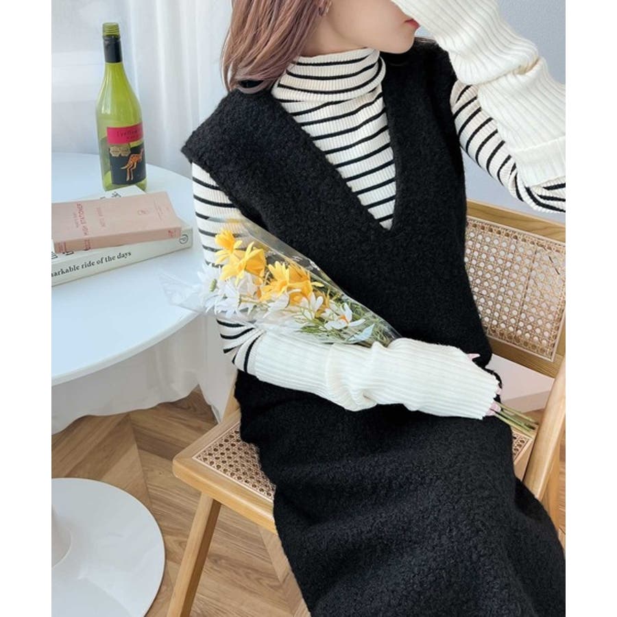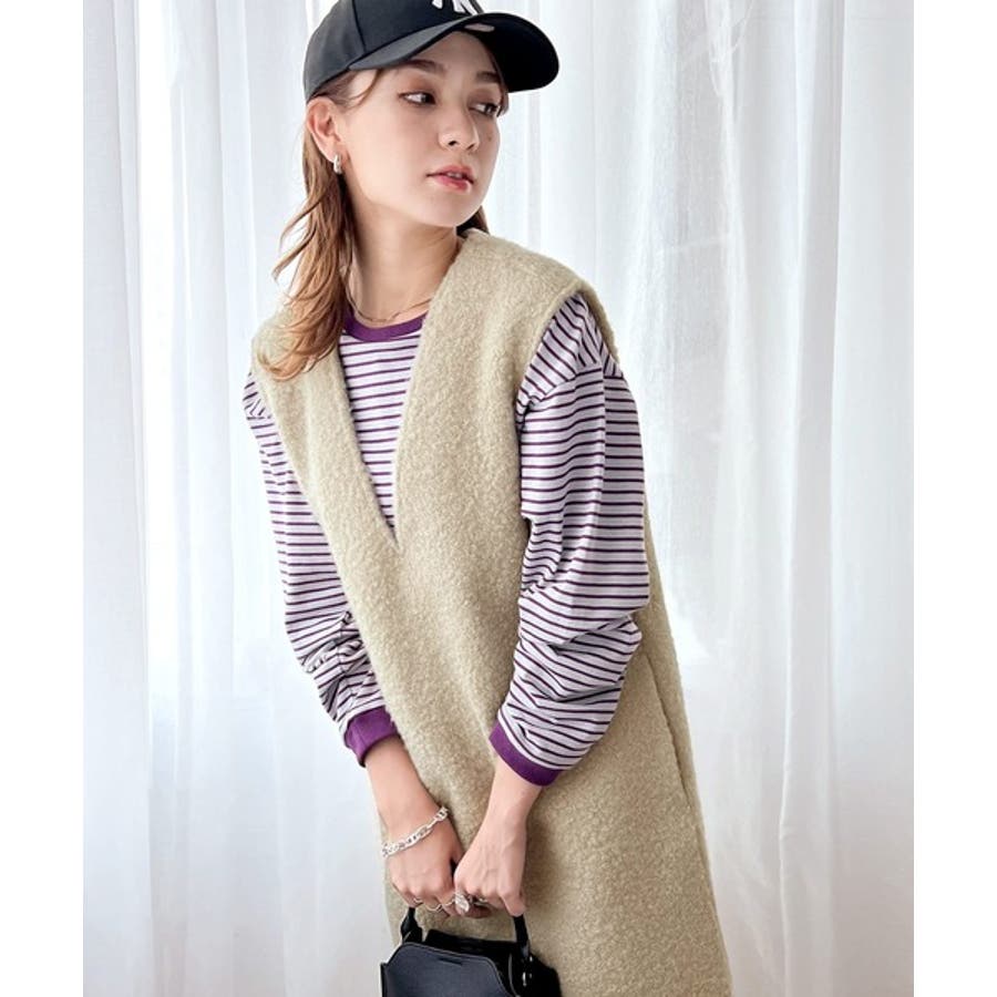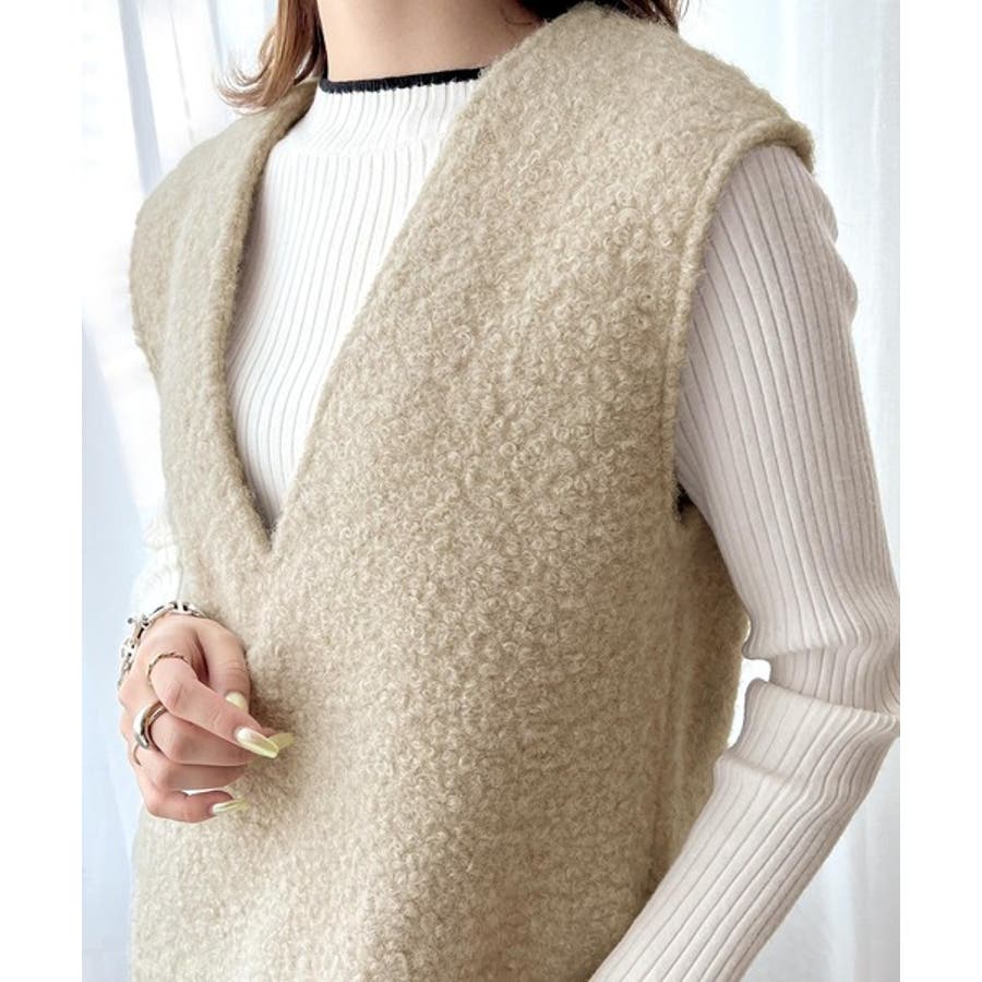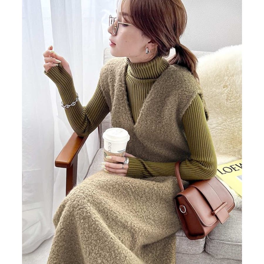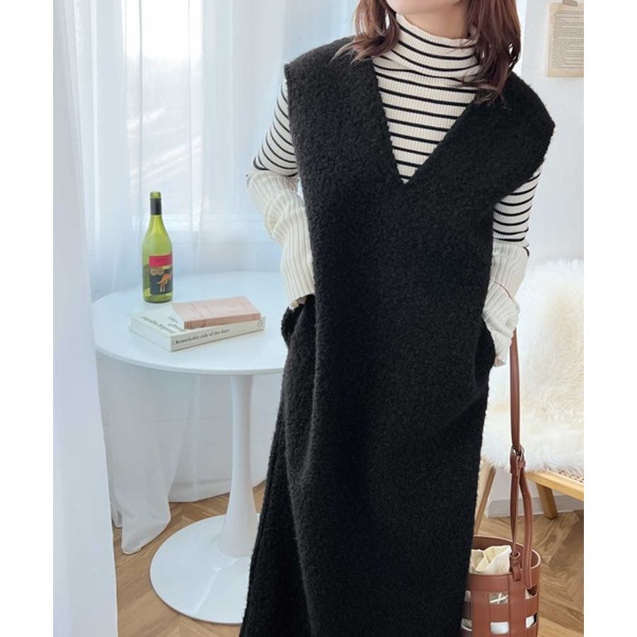 くるくる起毛がキュート。フェイクリングウール Vネックワンピース