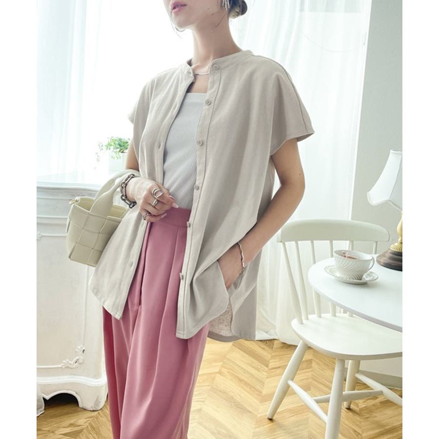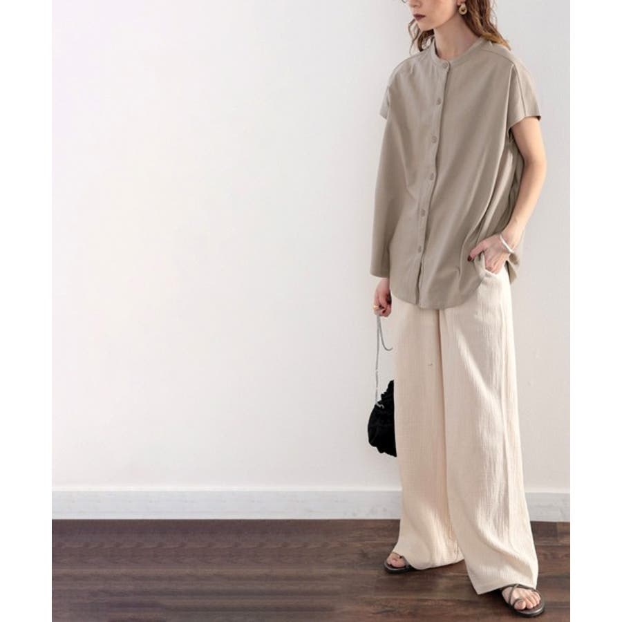 襟元にちょっぴりデザイン性のあるバンドカラーでキリッとした印象に。