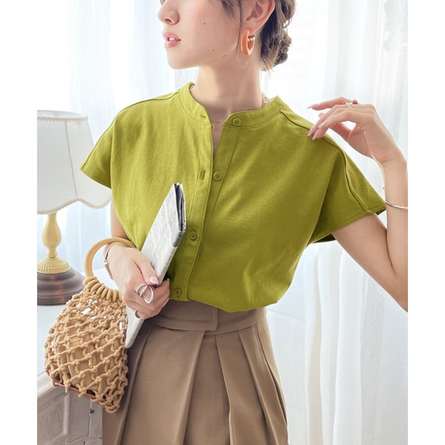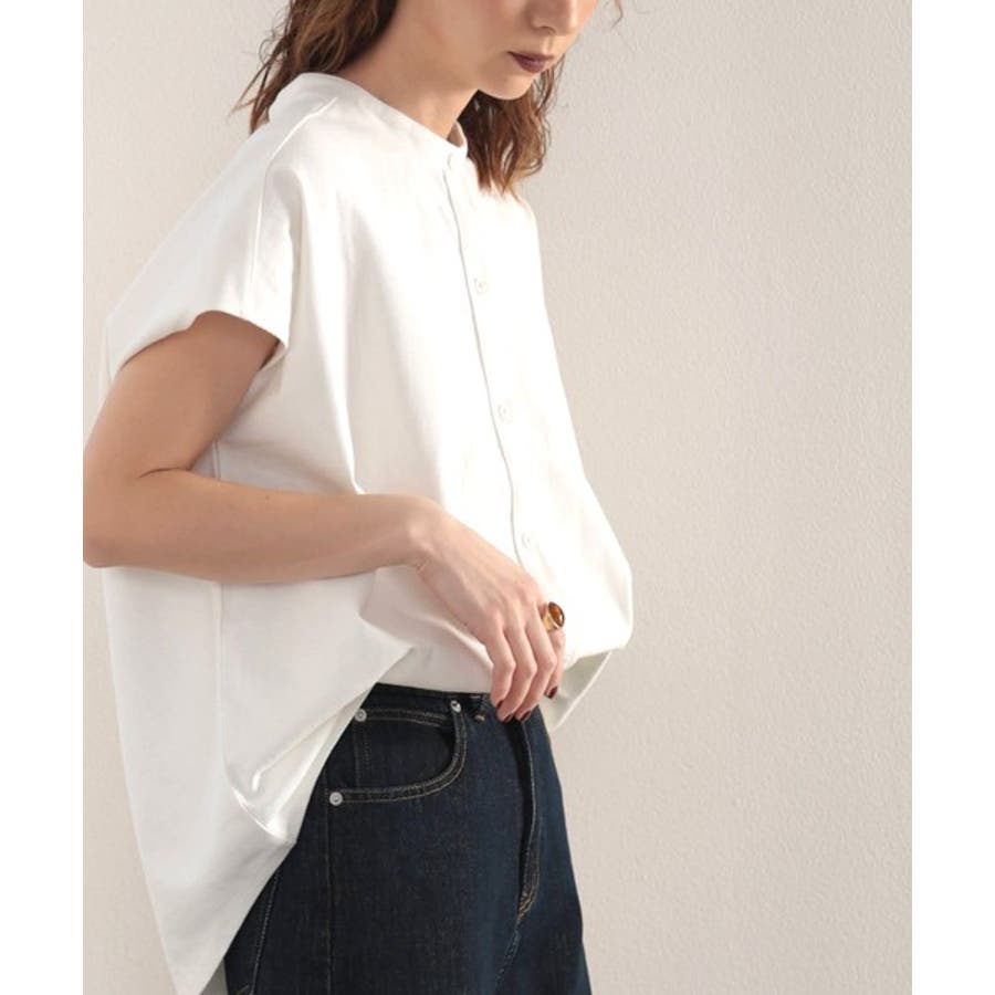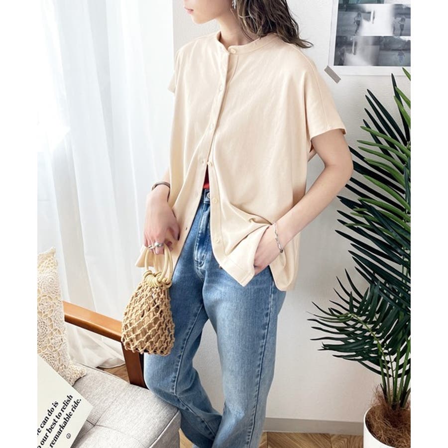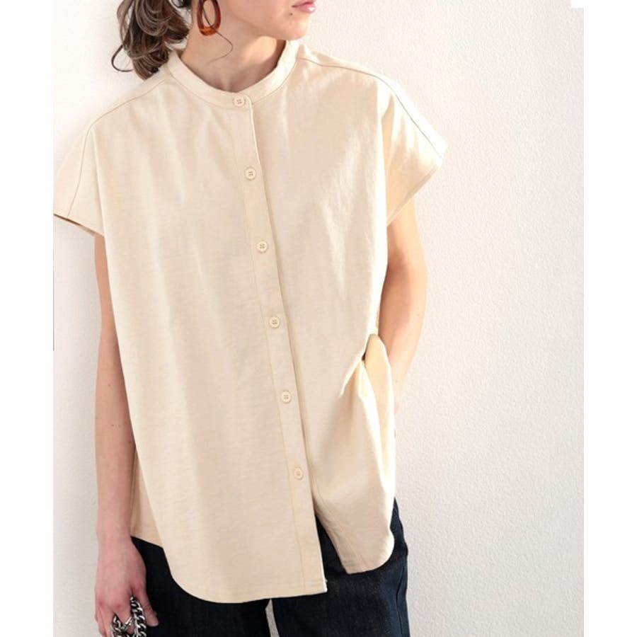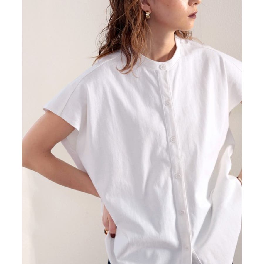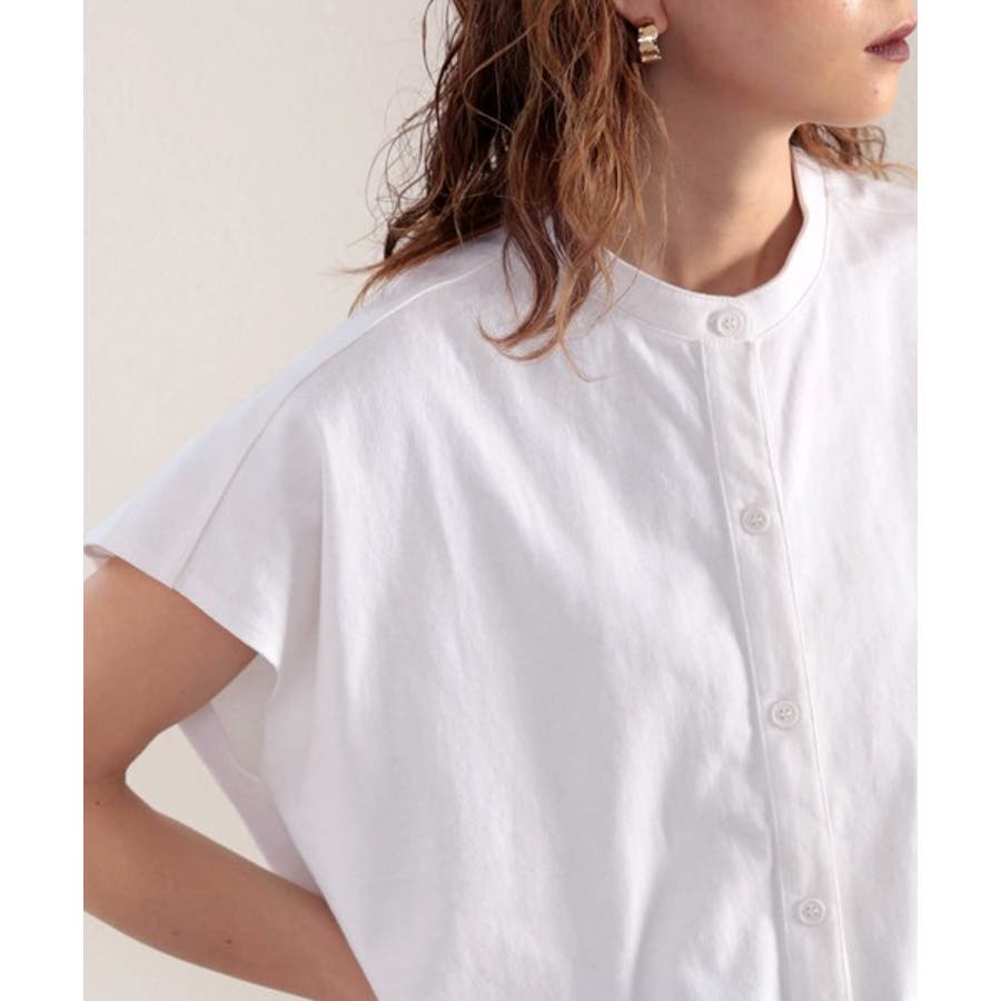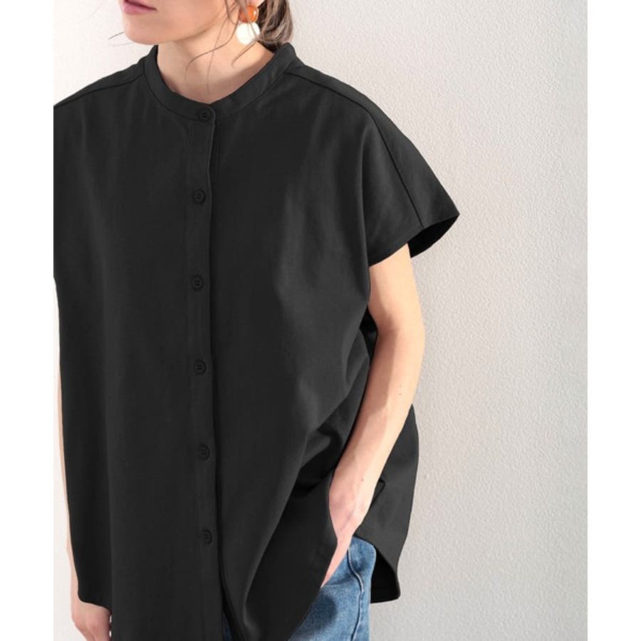 シャツ見えするのにシワになりにくい!綿100%。しっかり生地のバンドカラーカット…