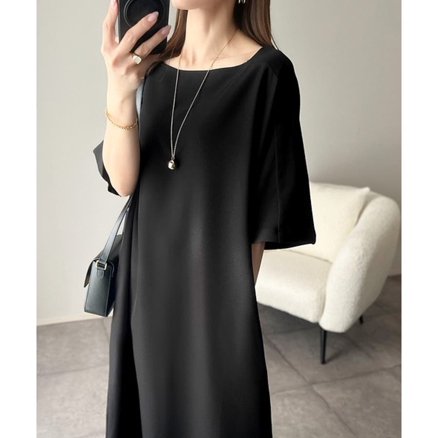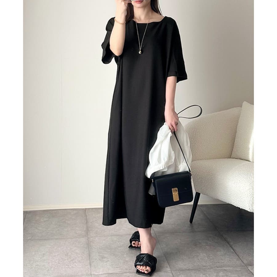 洗練された大人のカジュアル♪麻調スクエアネックラグランワンピース