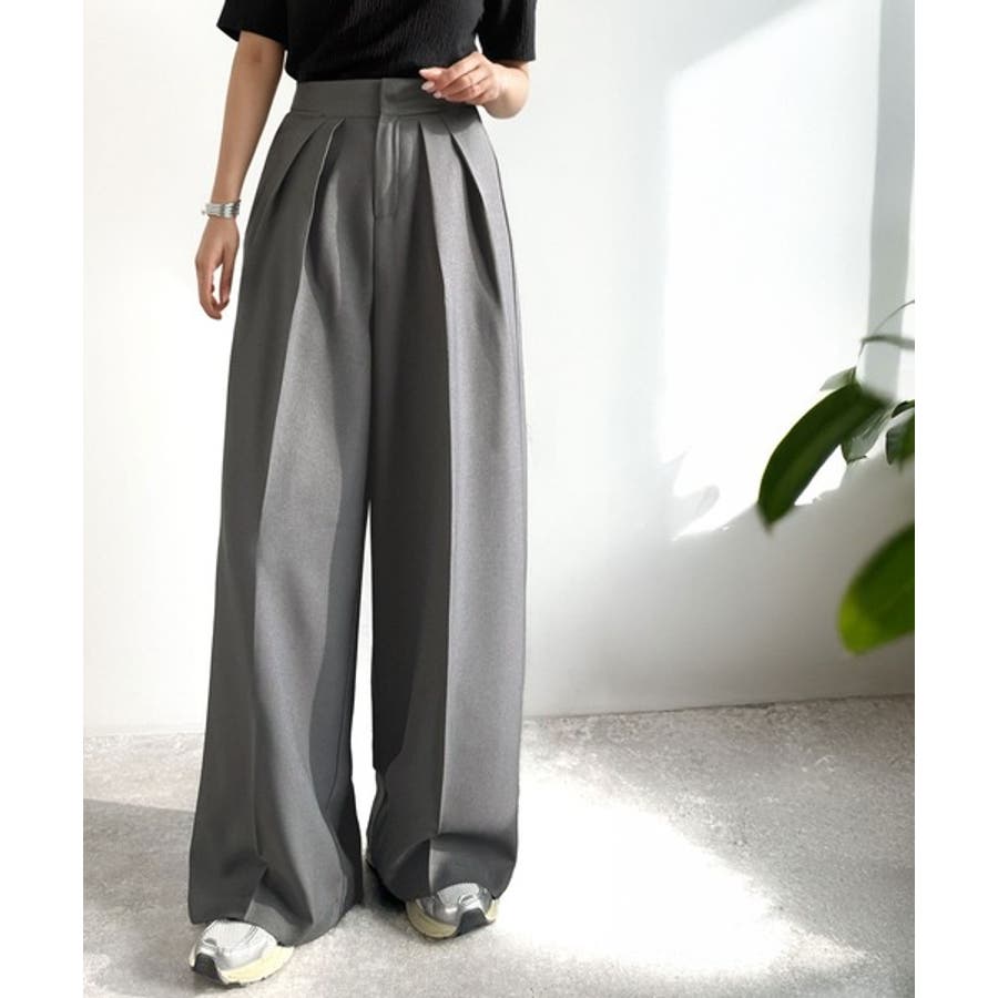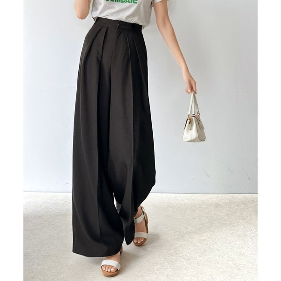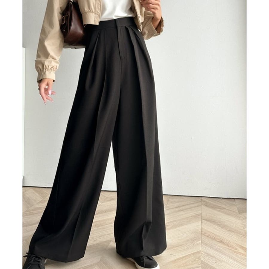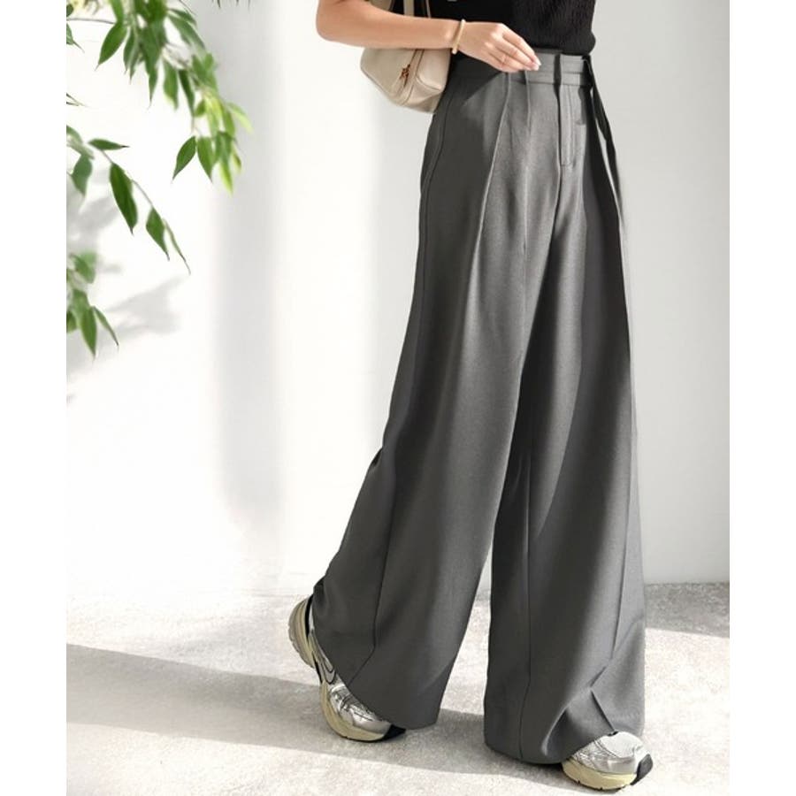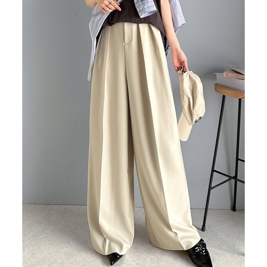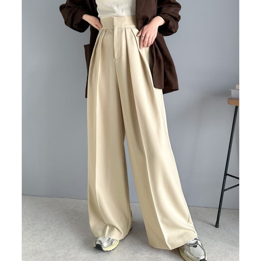 さらっと美脚。細見え2インタックハイウエストワイドスラックスパンツ