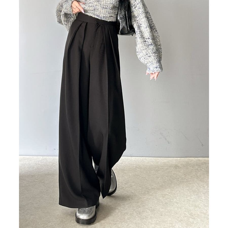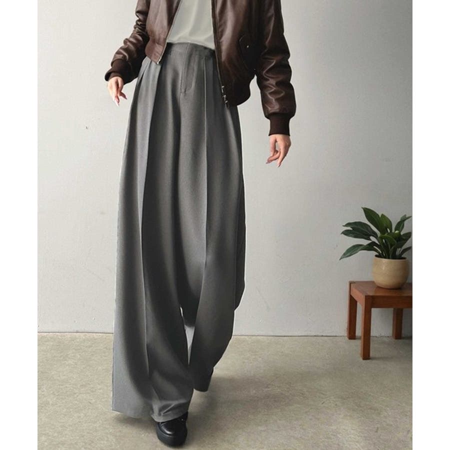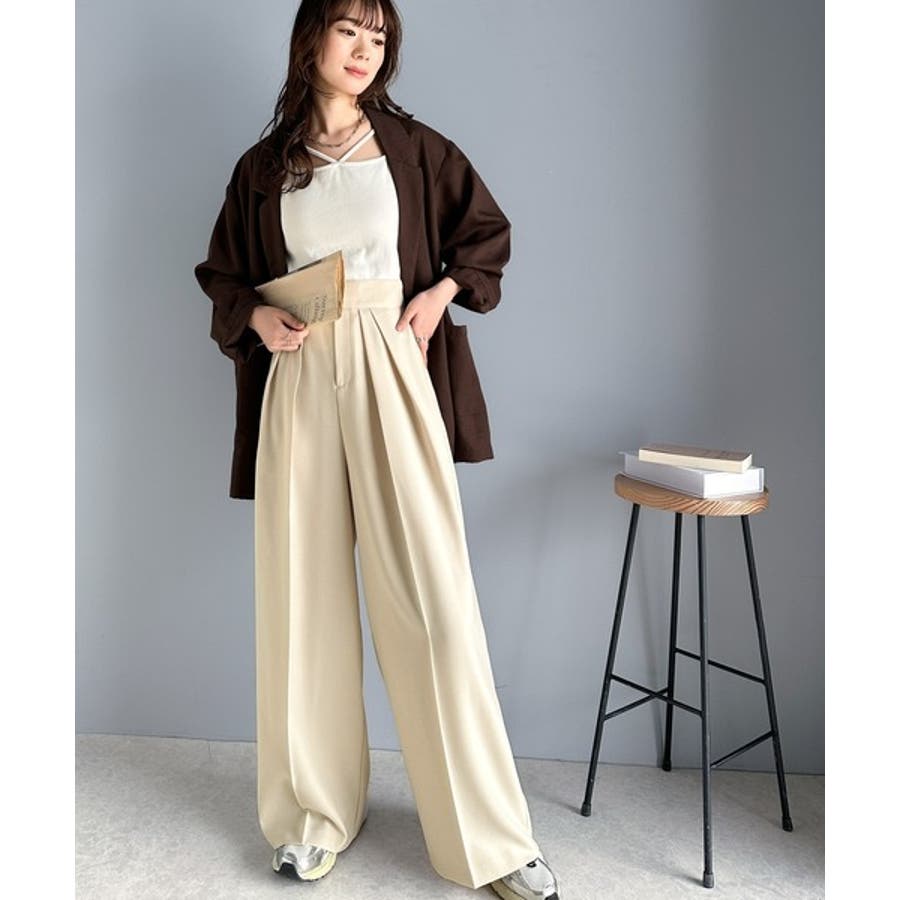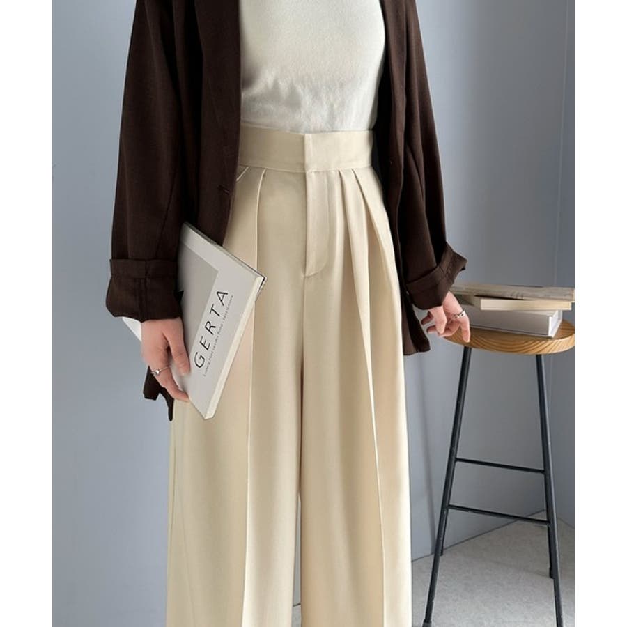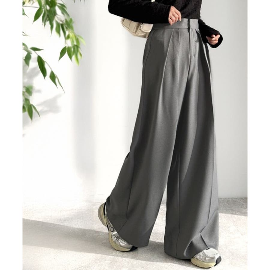 さらっと美脚。細見え2インタックハイウエストワイドスラックスパンツ