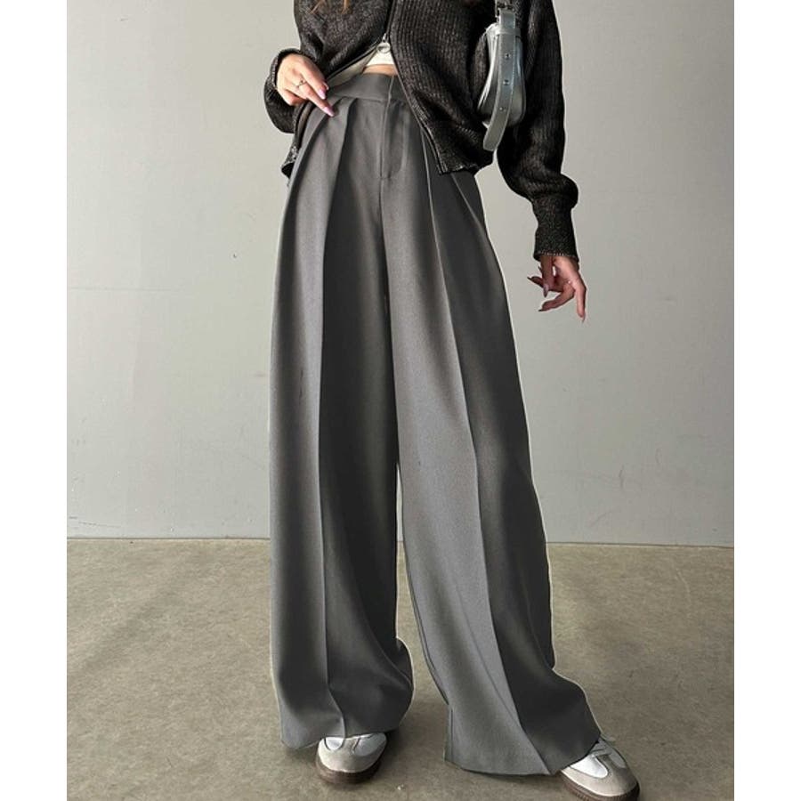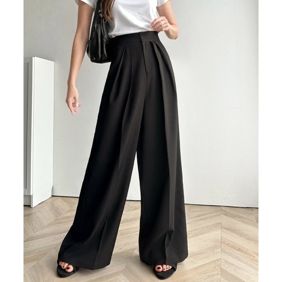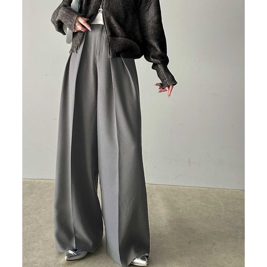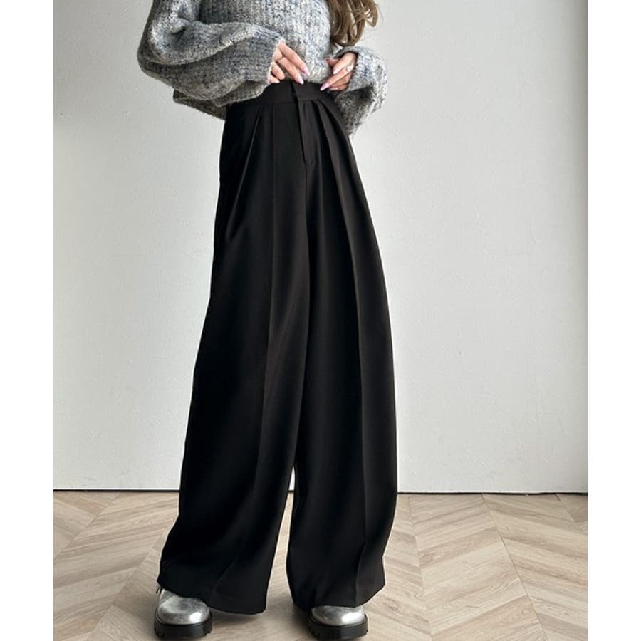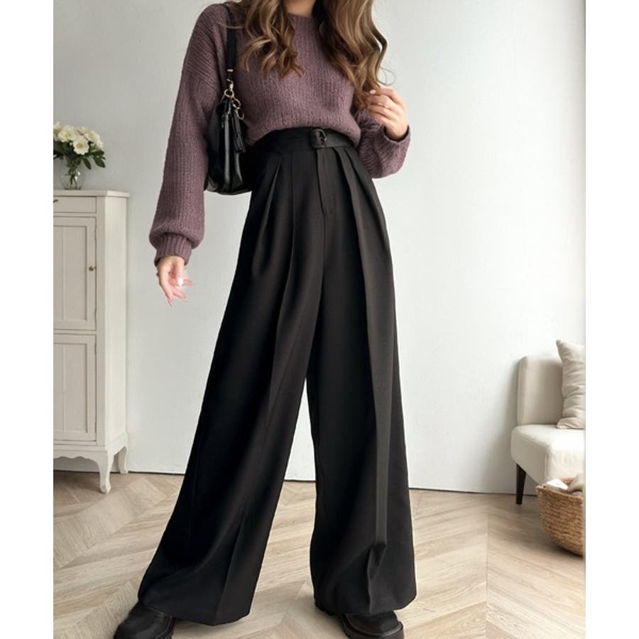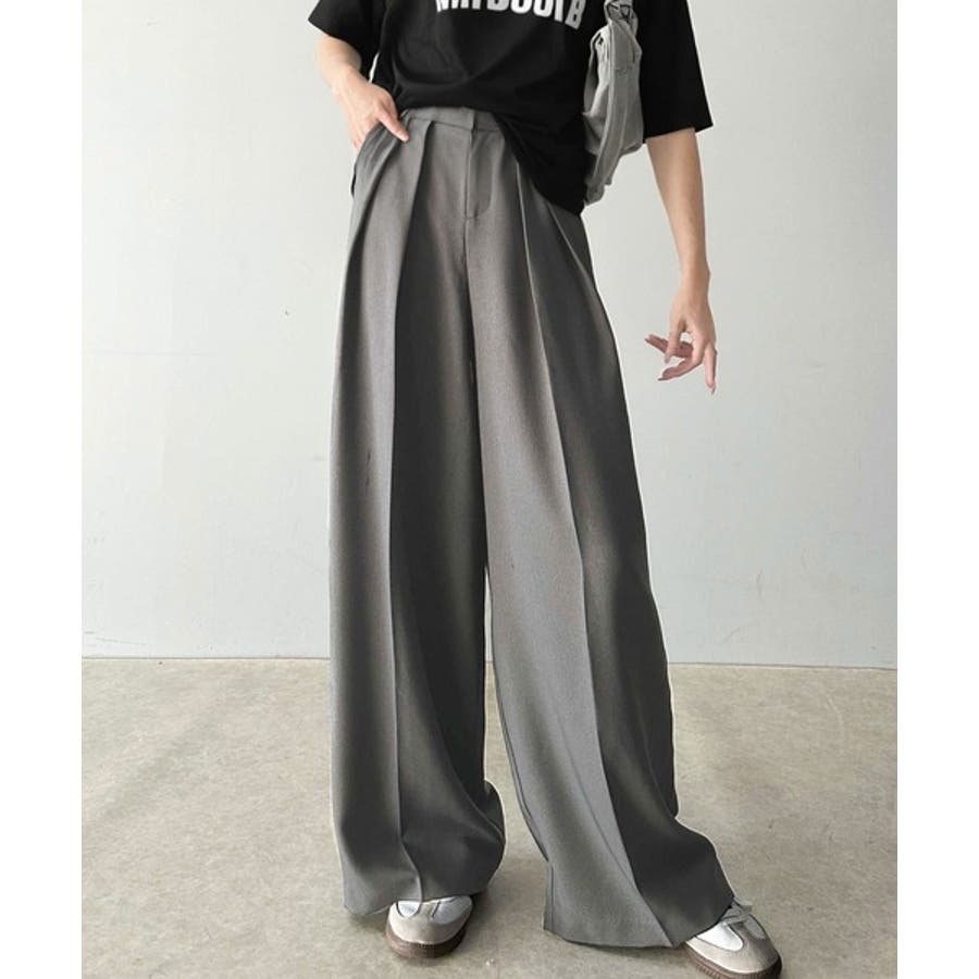 さらっと美脚。細見え2インタックハイウエストワイドスラックスパンツ