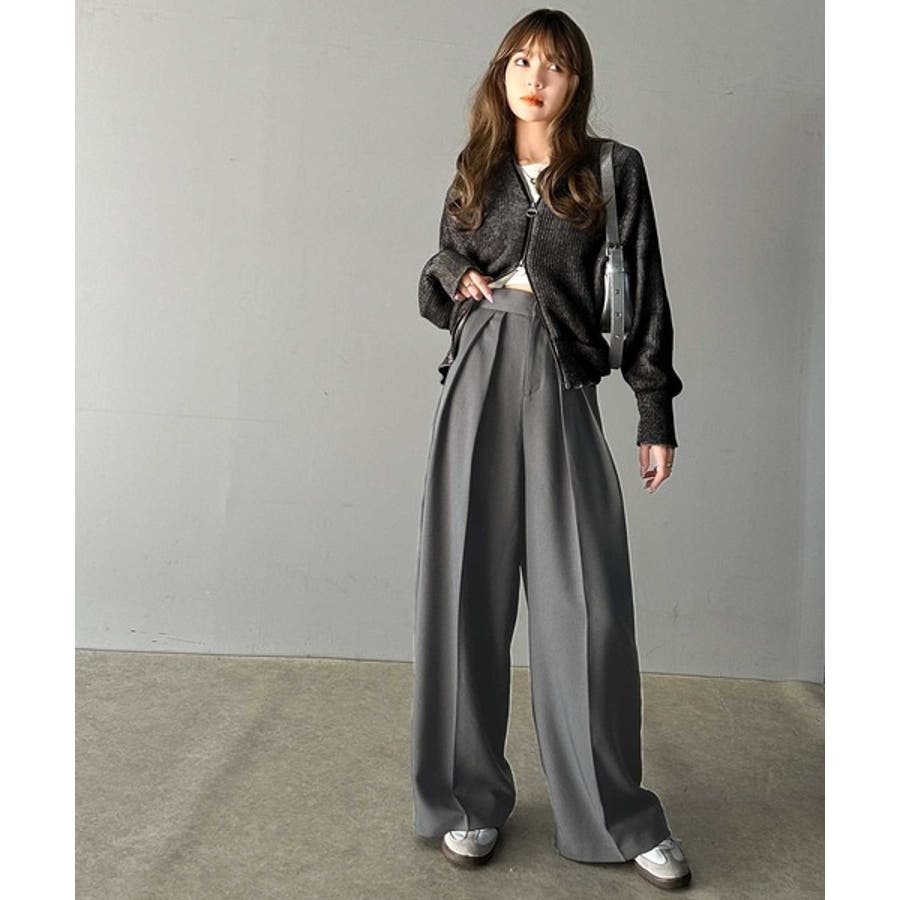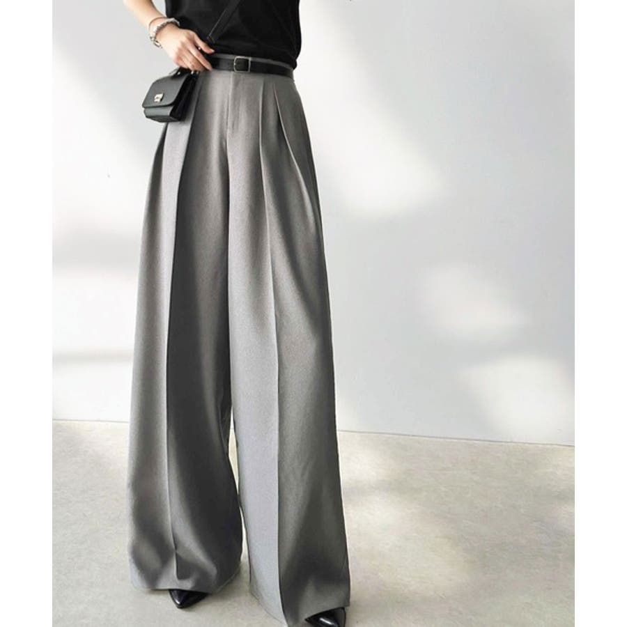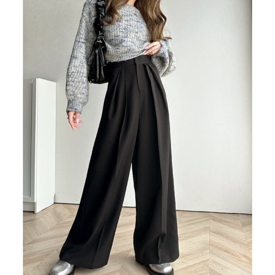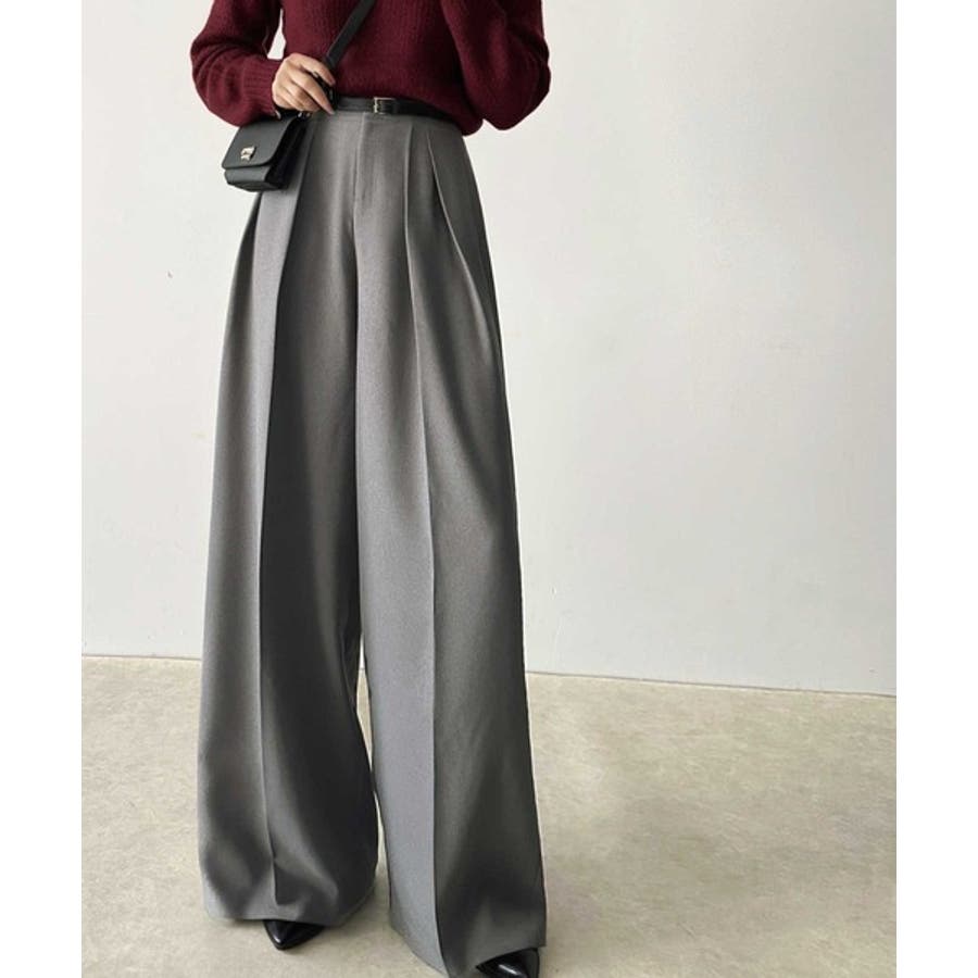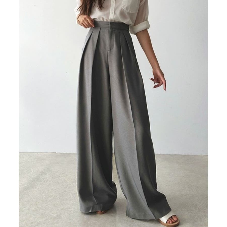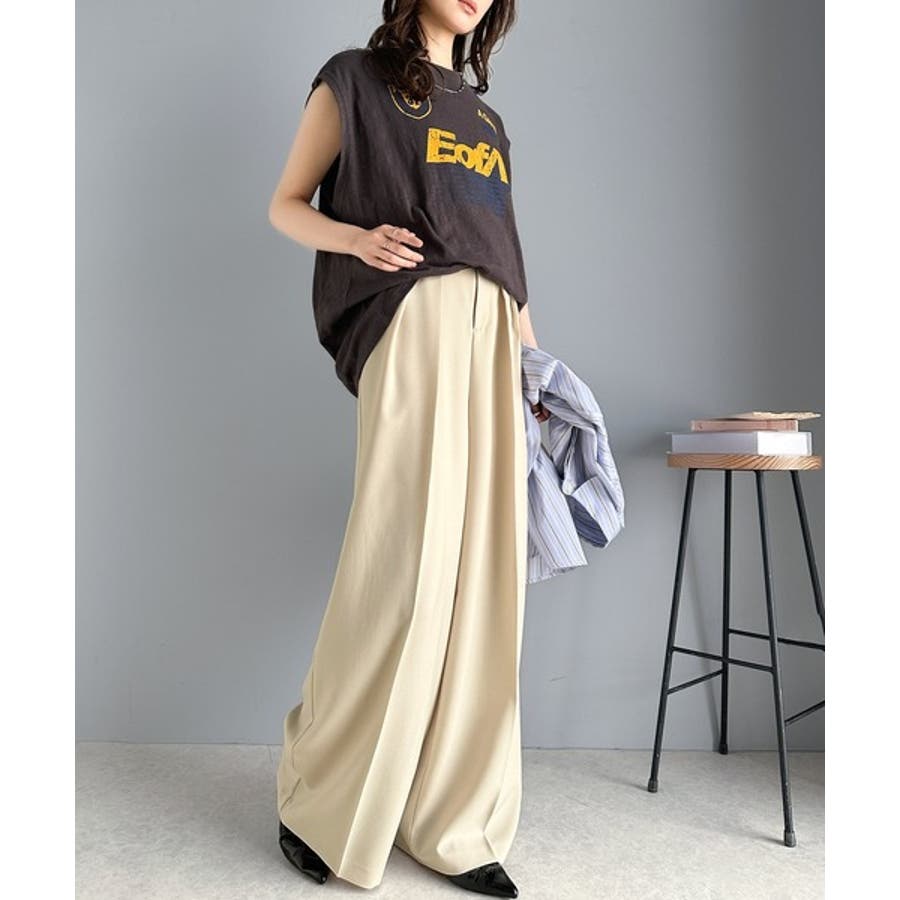 さらっと美脚。細見え2インタックハイウエストワイドスラックスパンツ