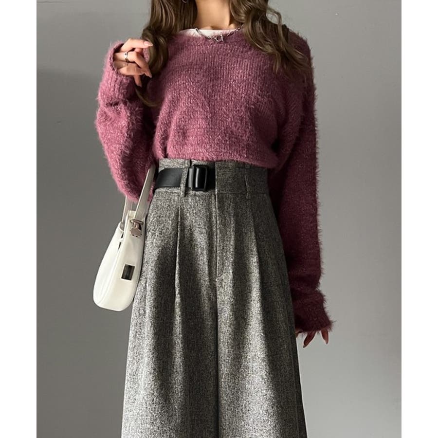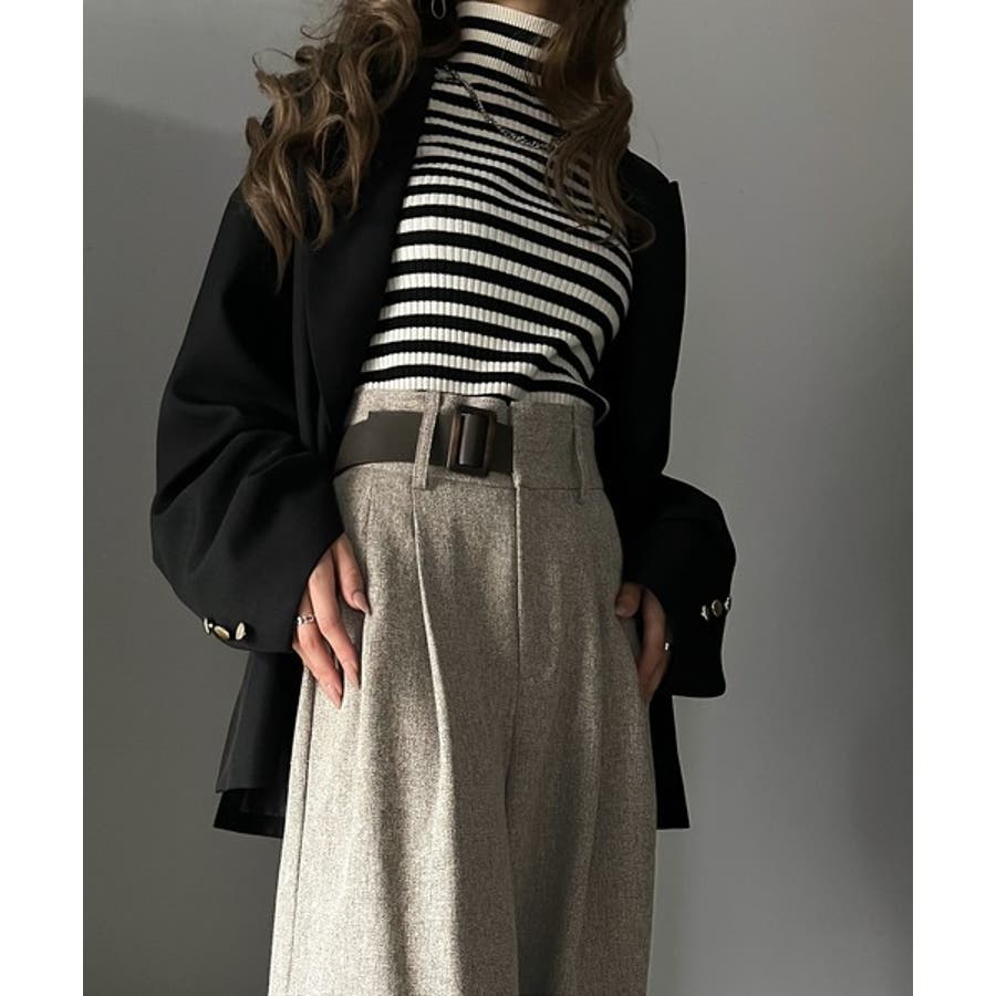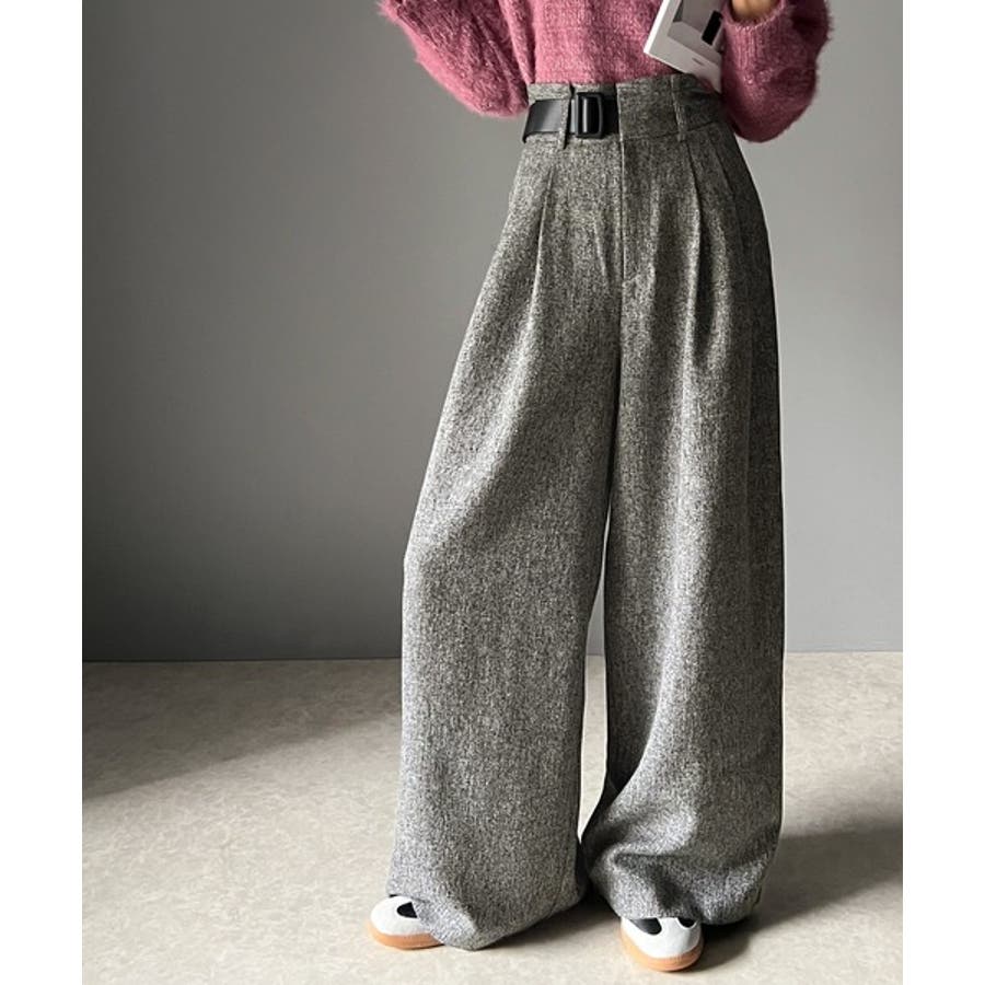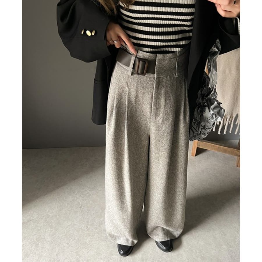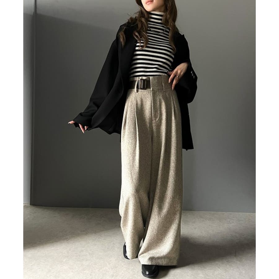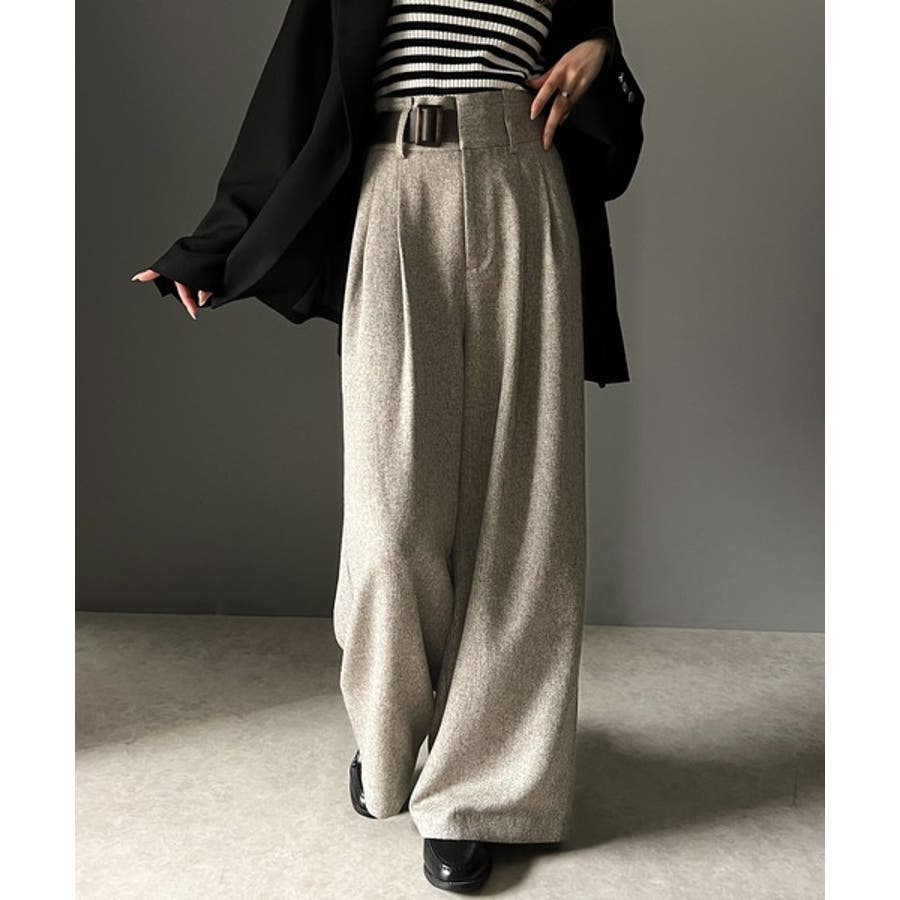 ウエストベルトが目を惹く。ツイード調ハイウエストワイドスラックスパンツ