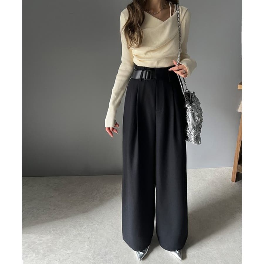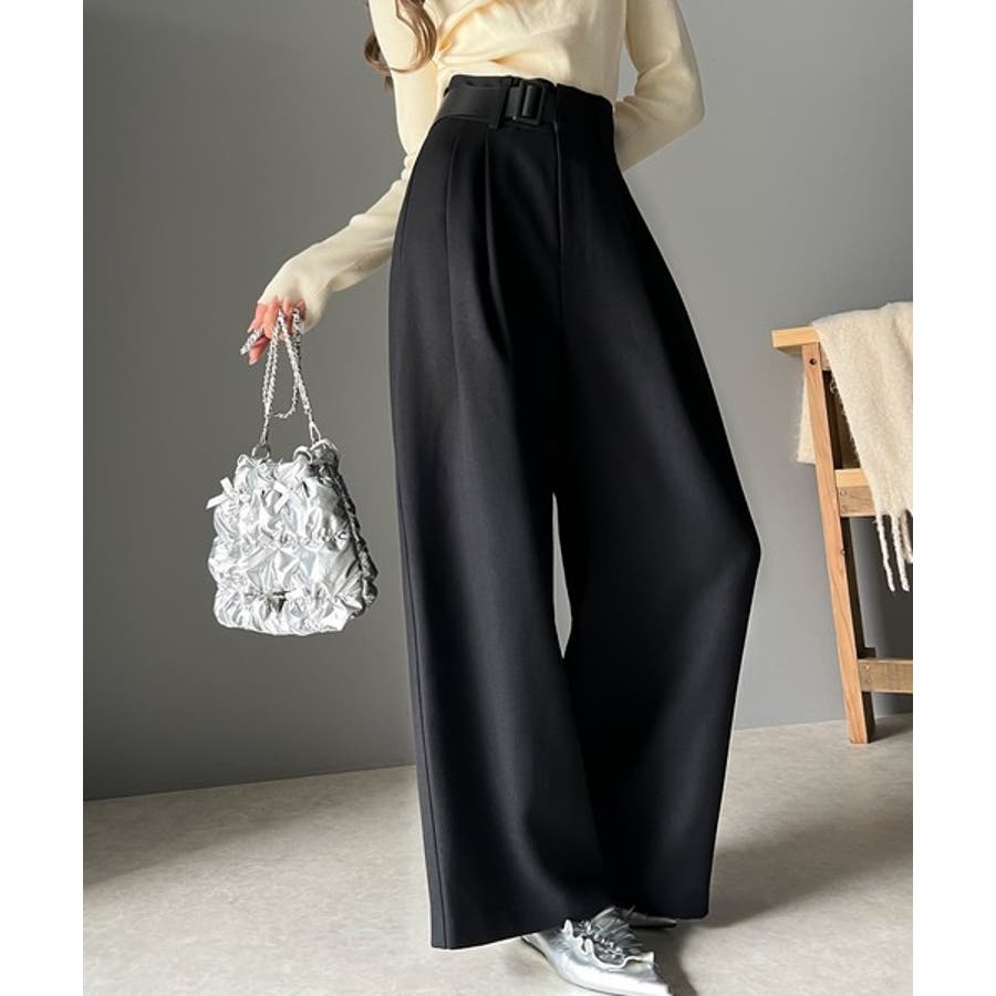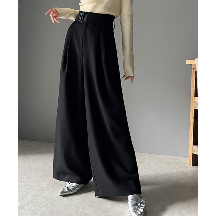 ウエストマークをすることでスタイルアップ効果ワイドを発揮する秋服・冬服コーデにぴったりのワイドパンツです。