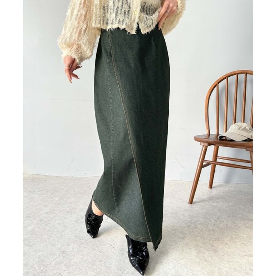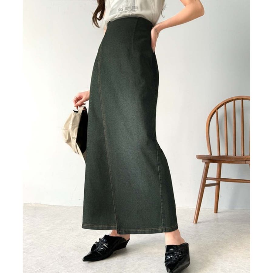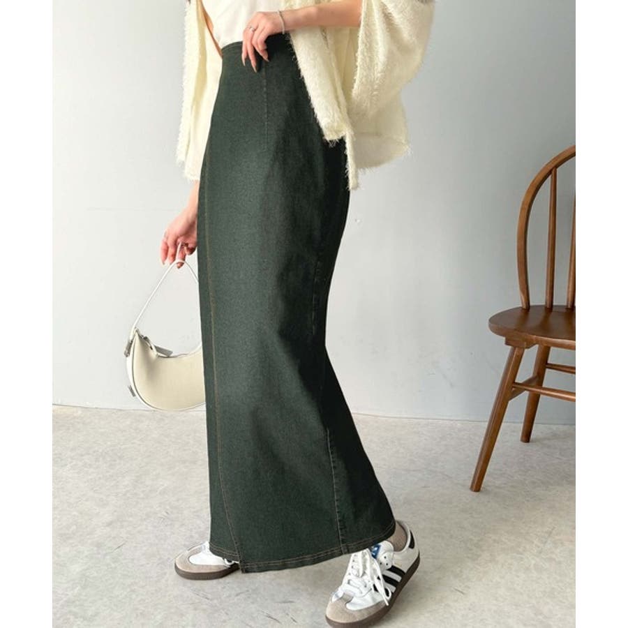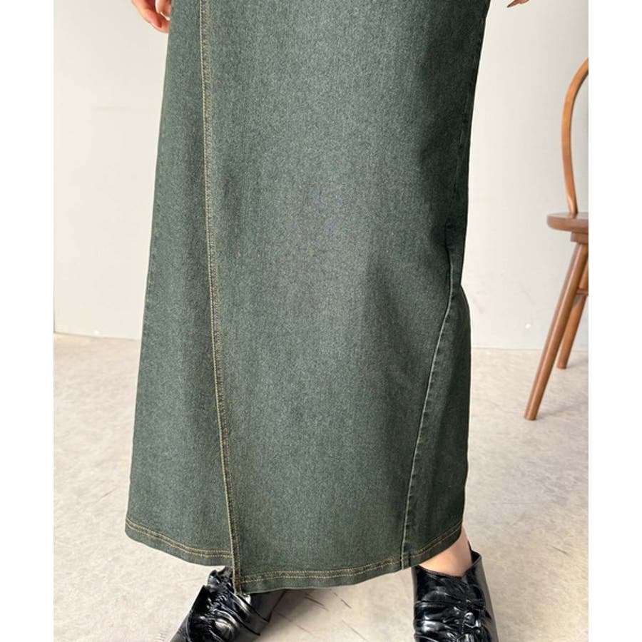 ヴィンテージライクなデニムスタイルに。ストレッチデニム素材ロングタイトスカート