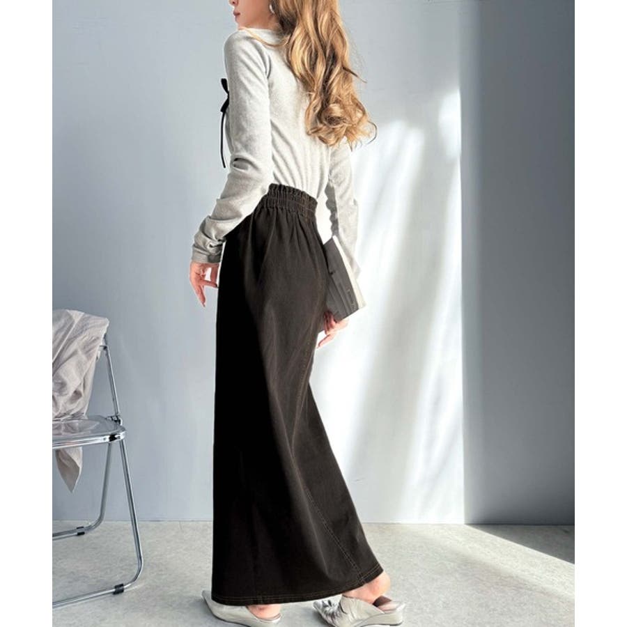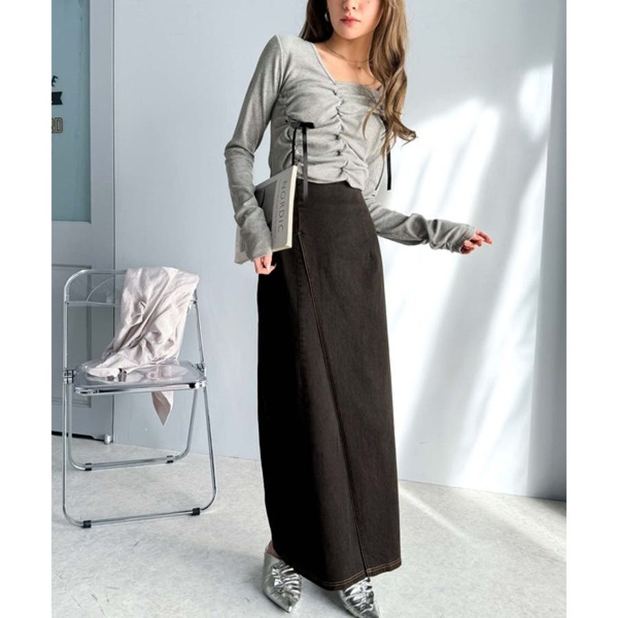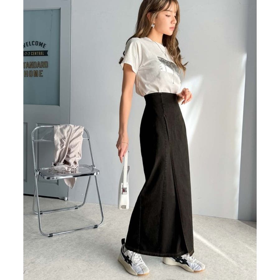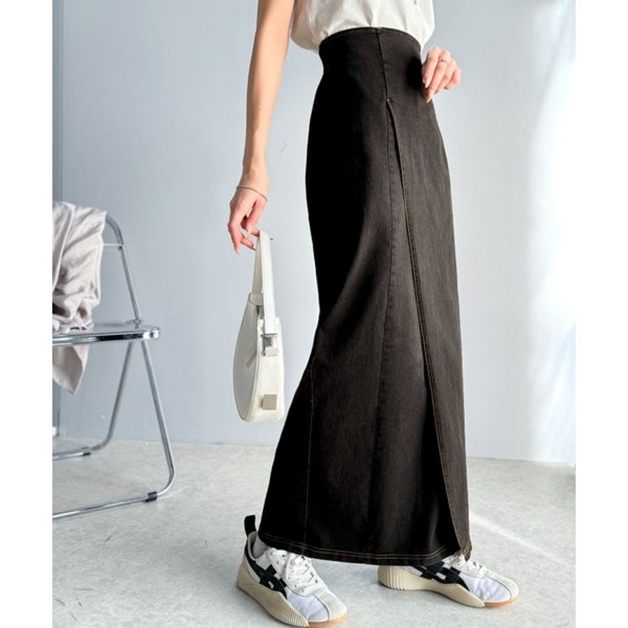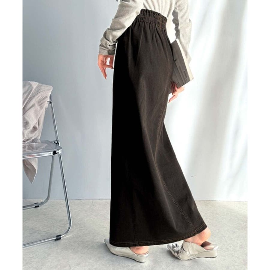 ヴィンテージライクなデニムスタイルに。ストレッチデニム素材ロングタイトスカート