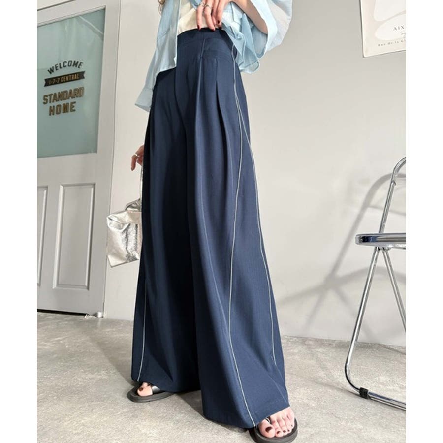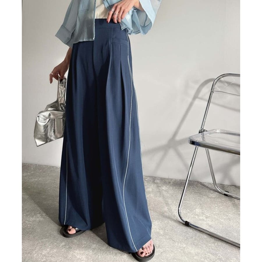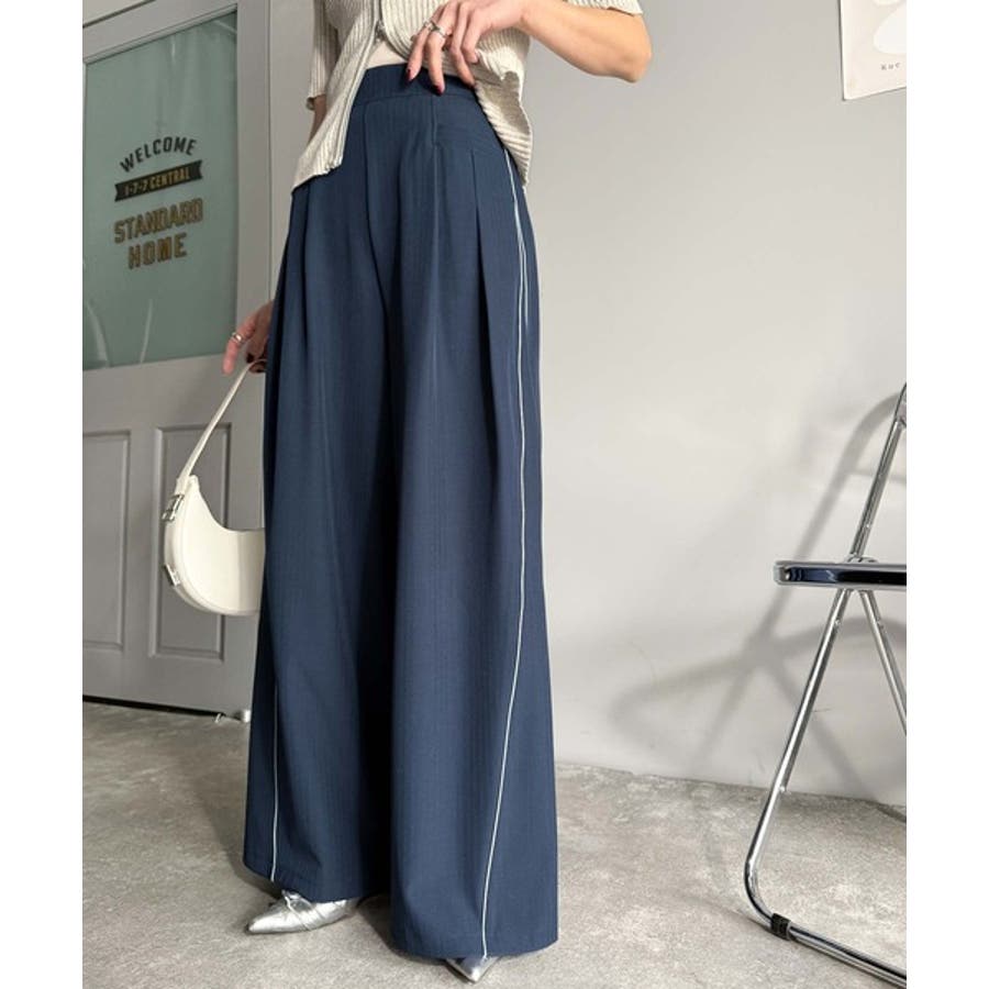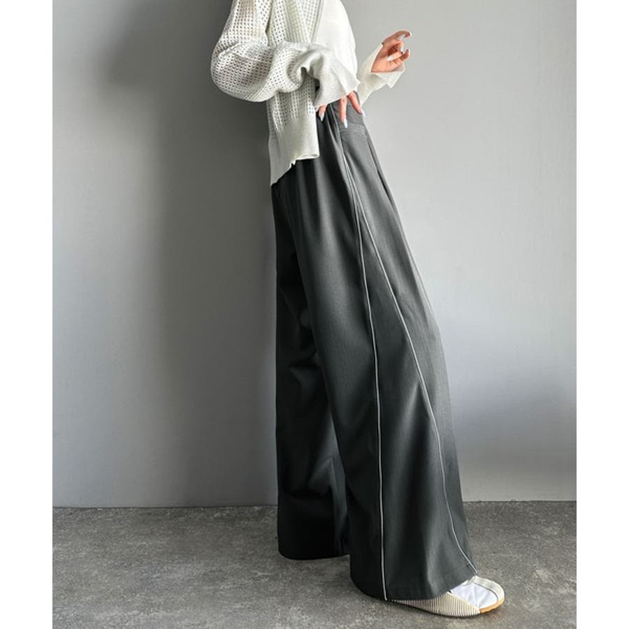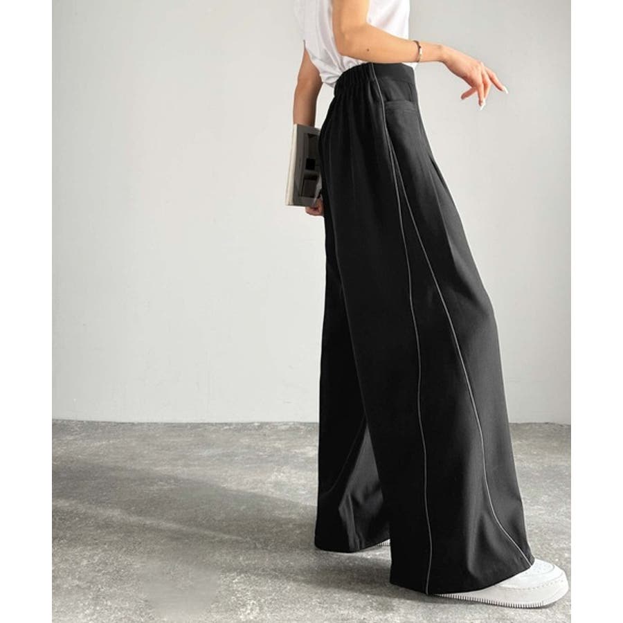 サイドのパイピングデザインがアクセントのワイドパンツ。