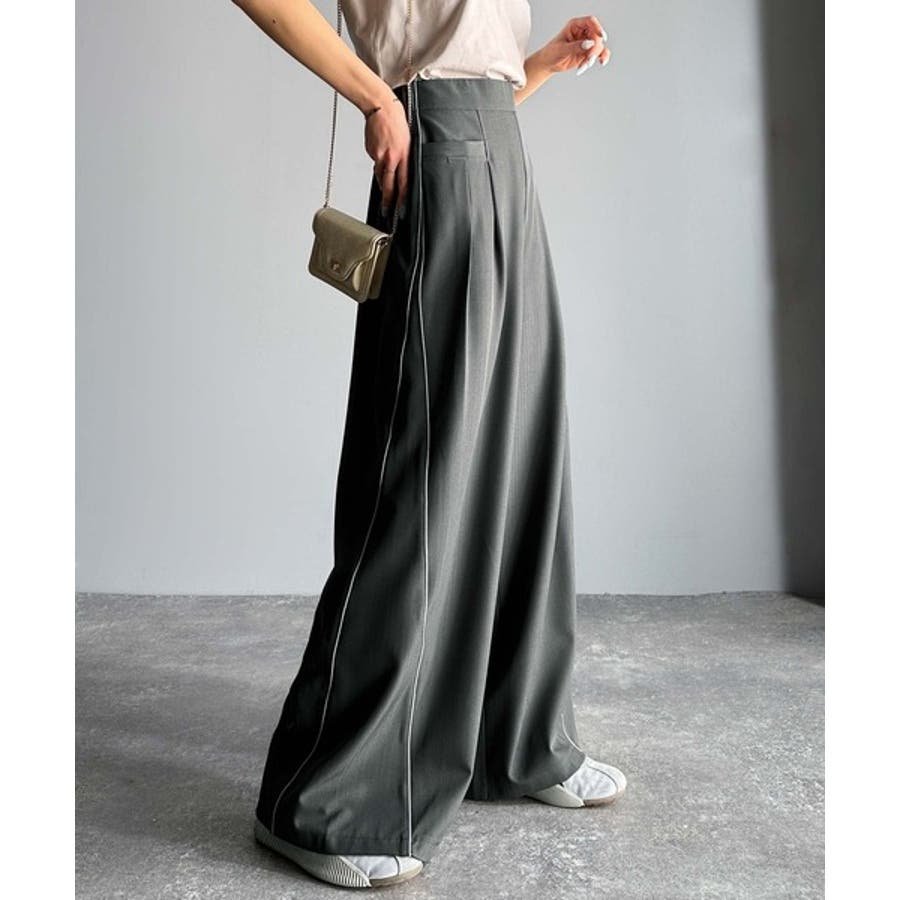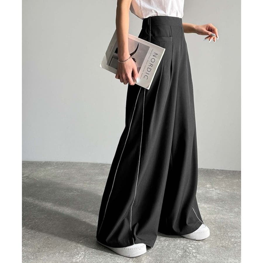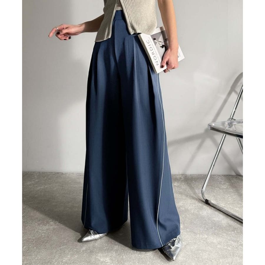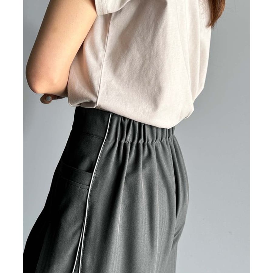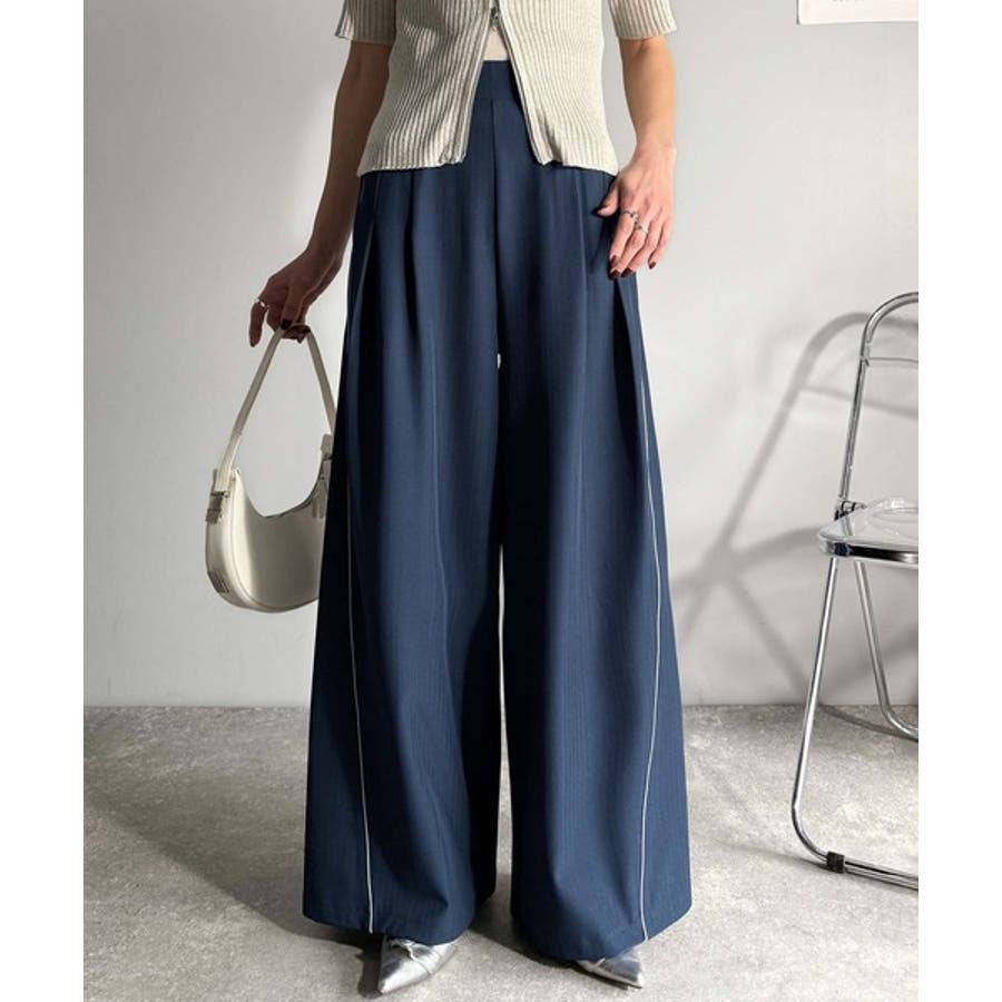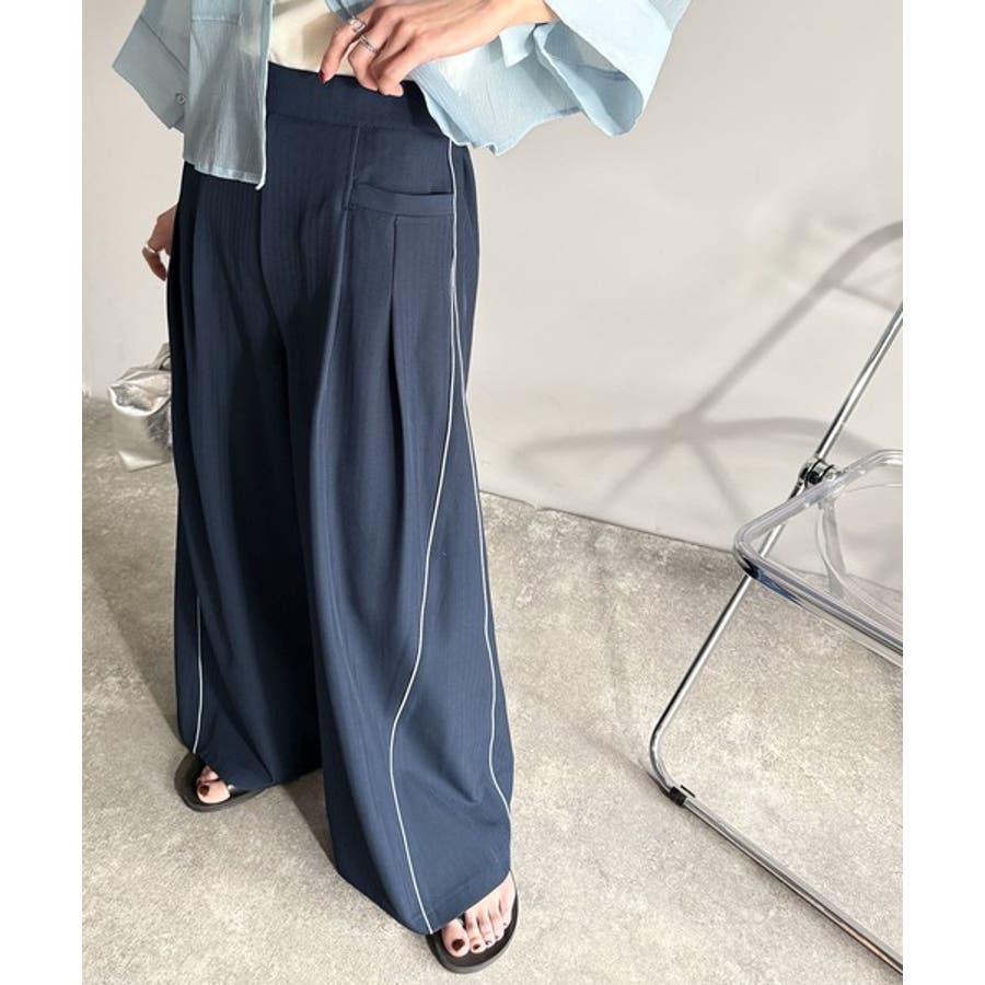 サイドのパイピングデザインがアクセントのワイドパンツ。