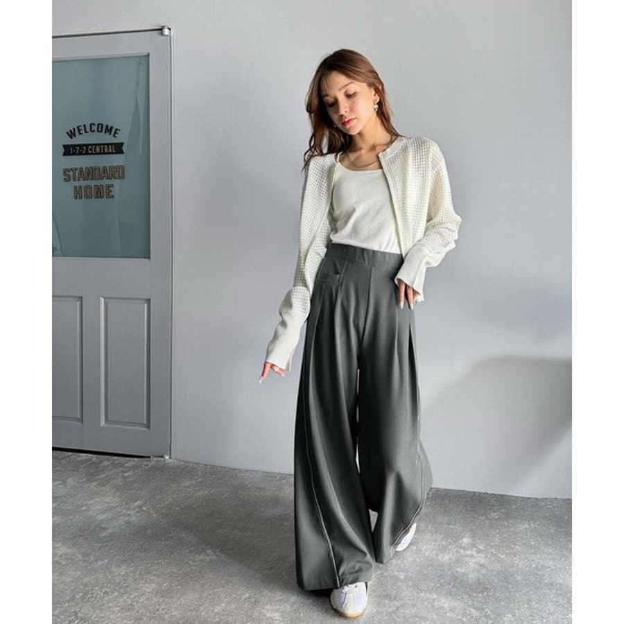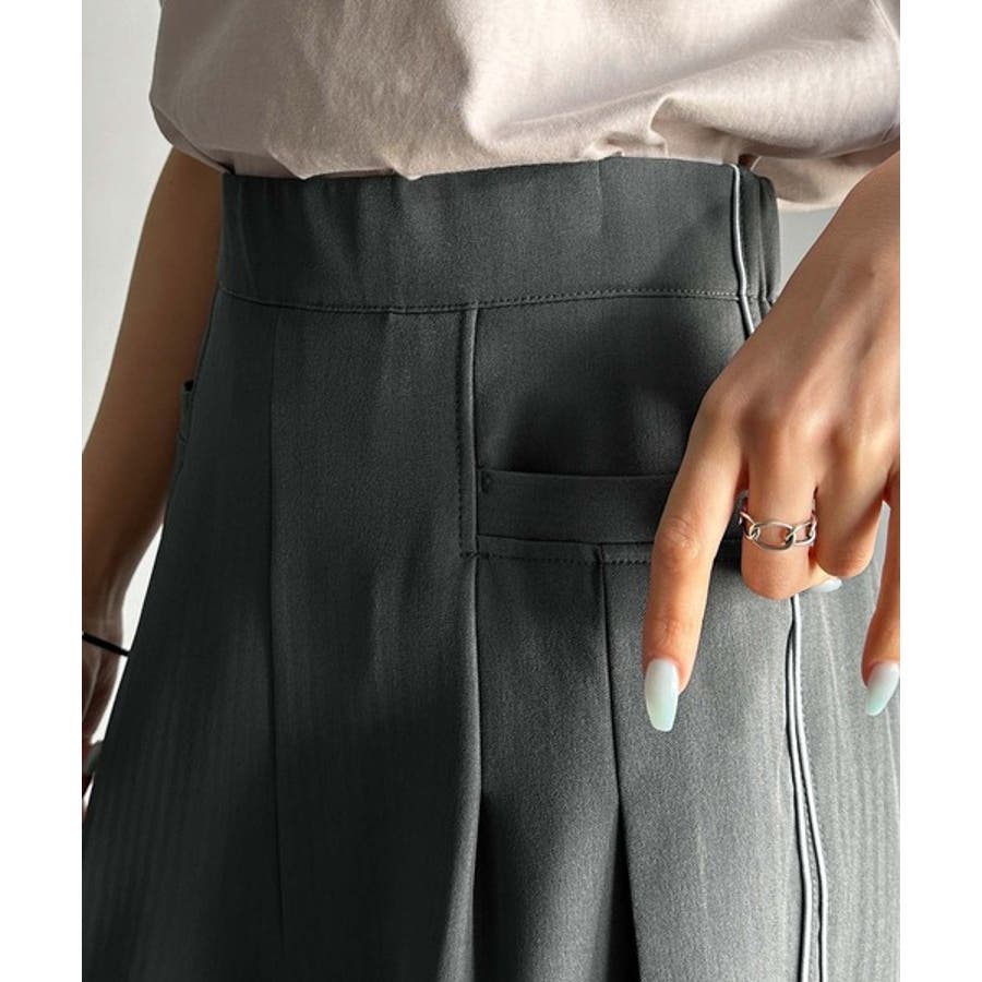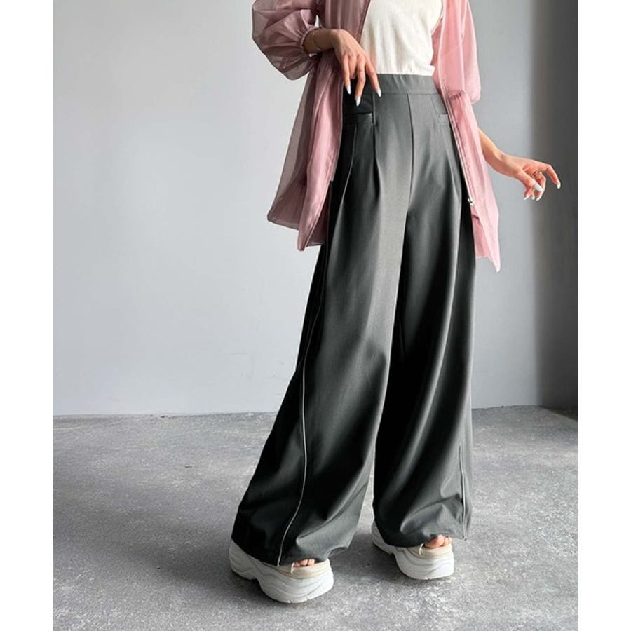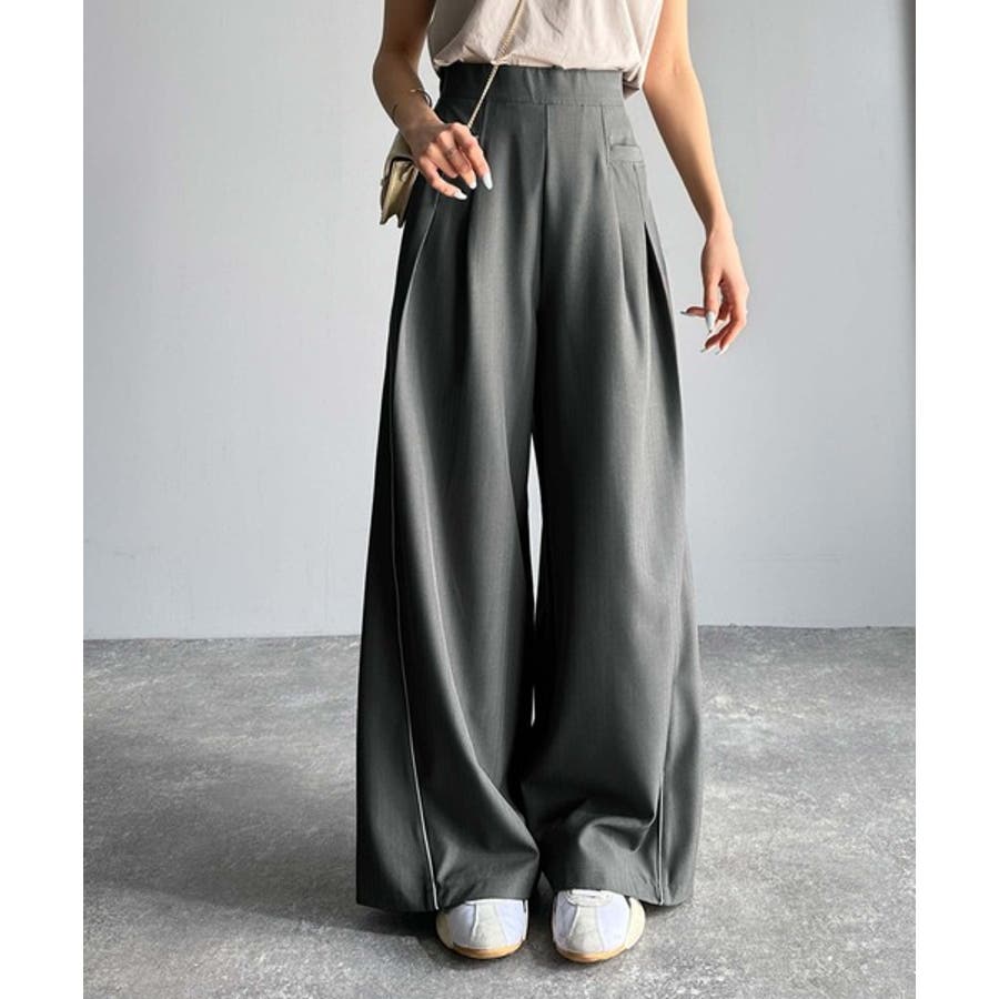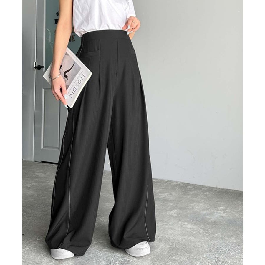 サイドのパイピングデザインがアクセントのワイドパンツ。