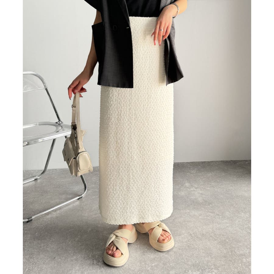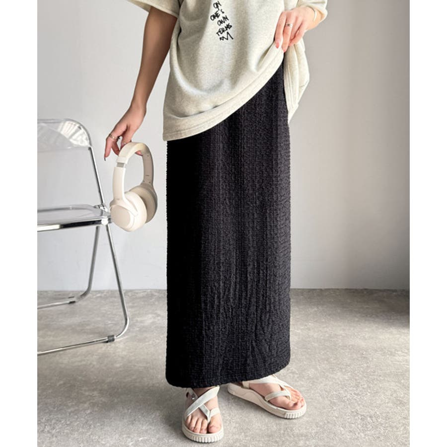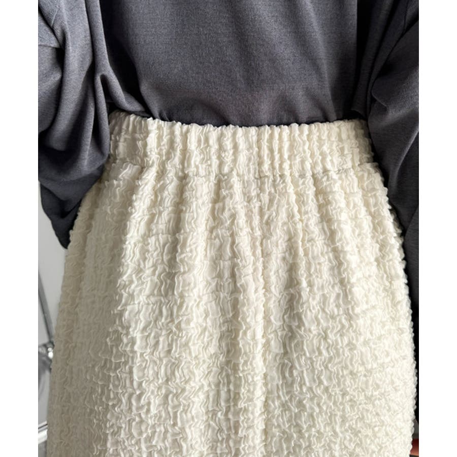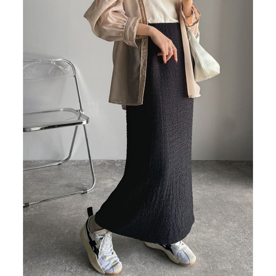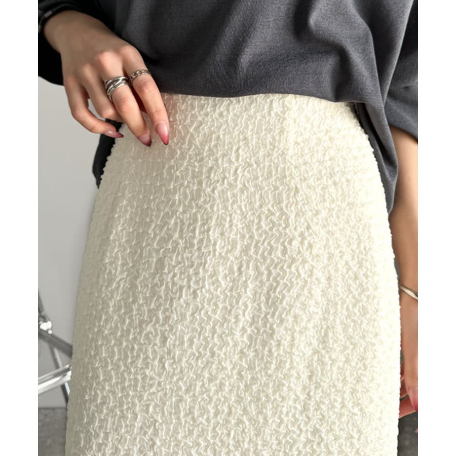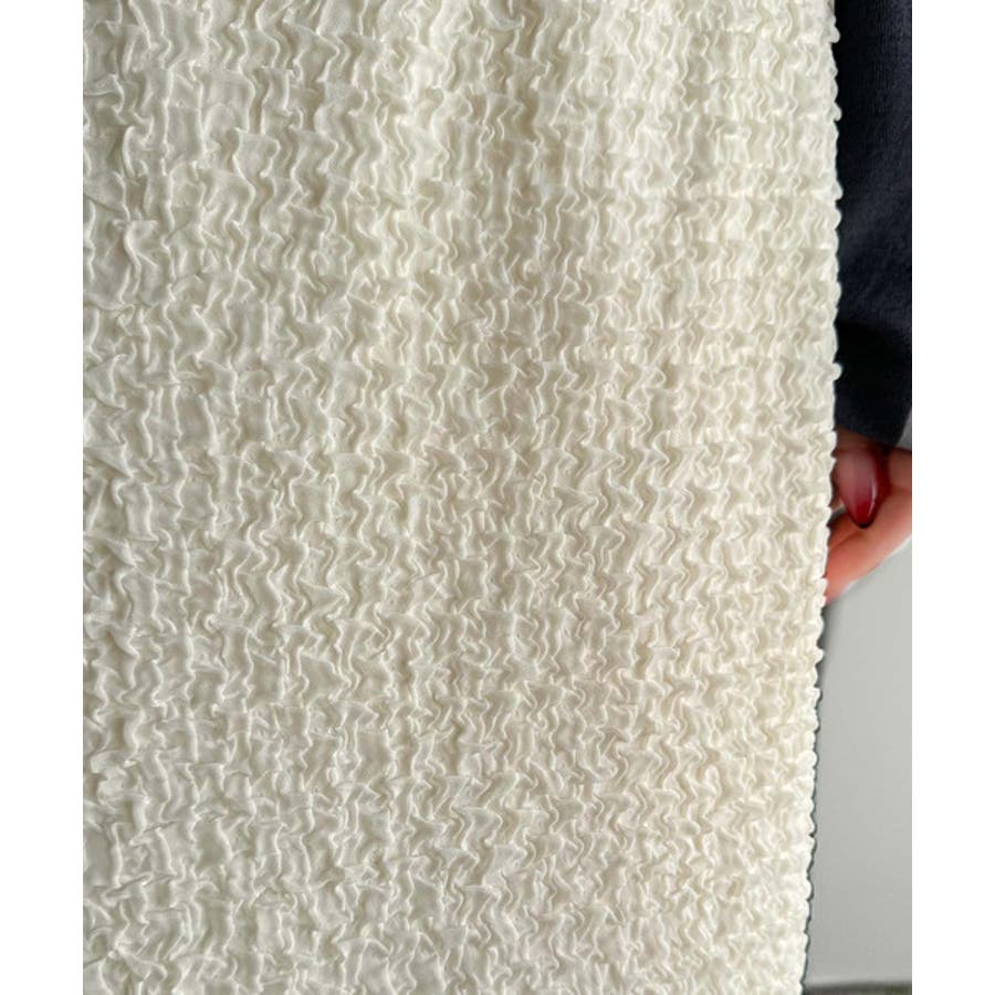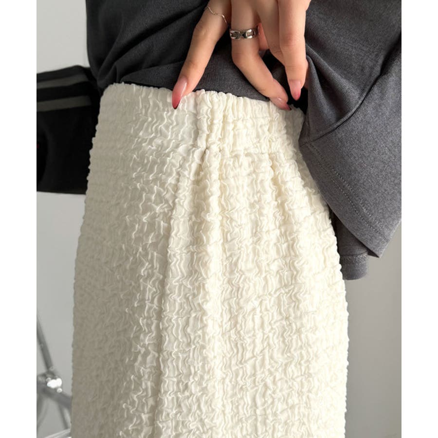 ぽこぽこ素材がかわいい♪シャーリングファブリックストレートスカート(後ろゴム)