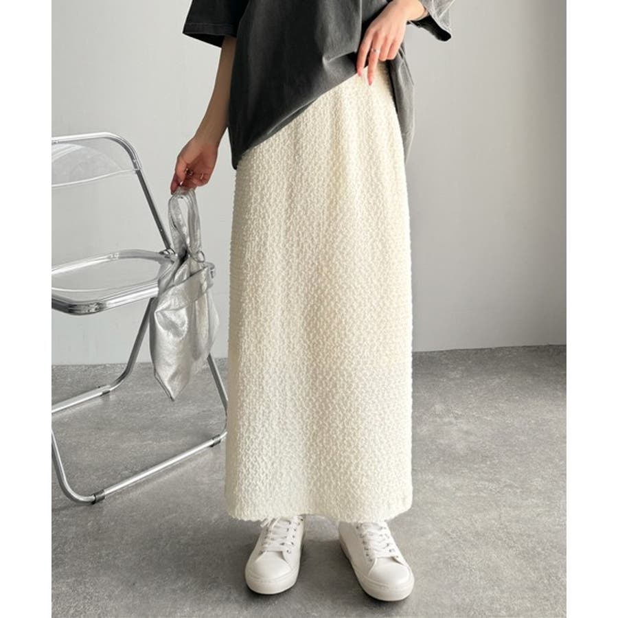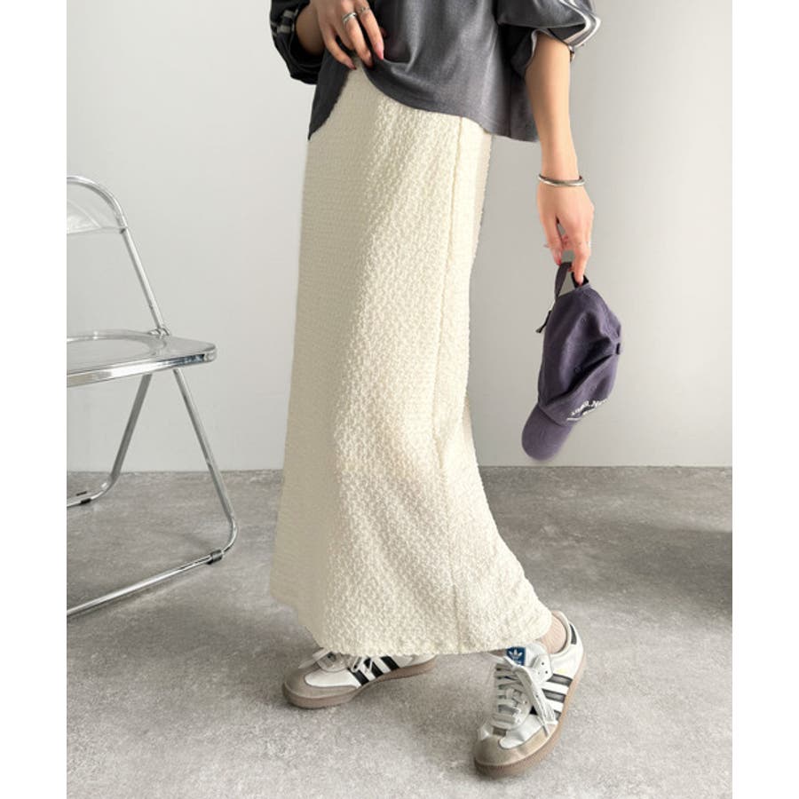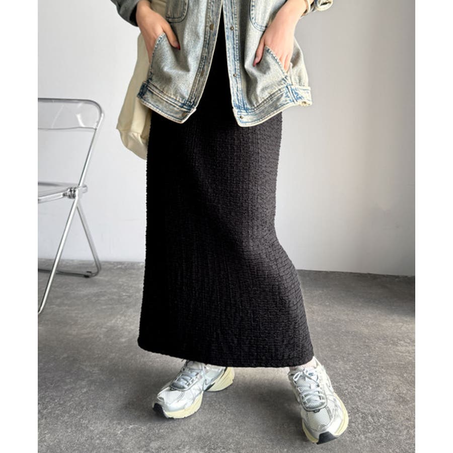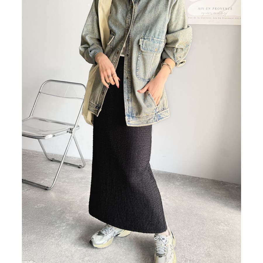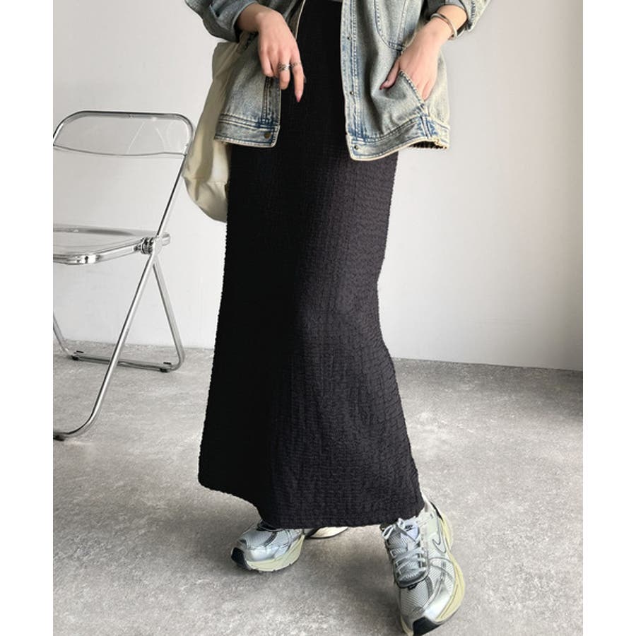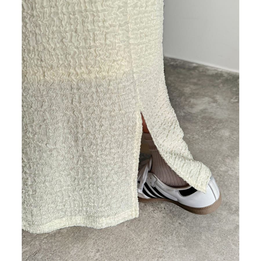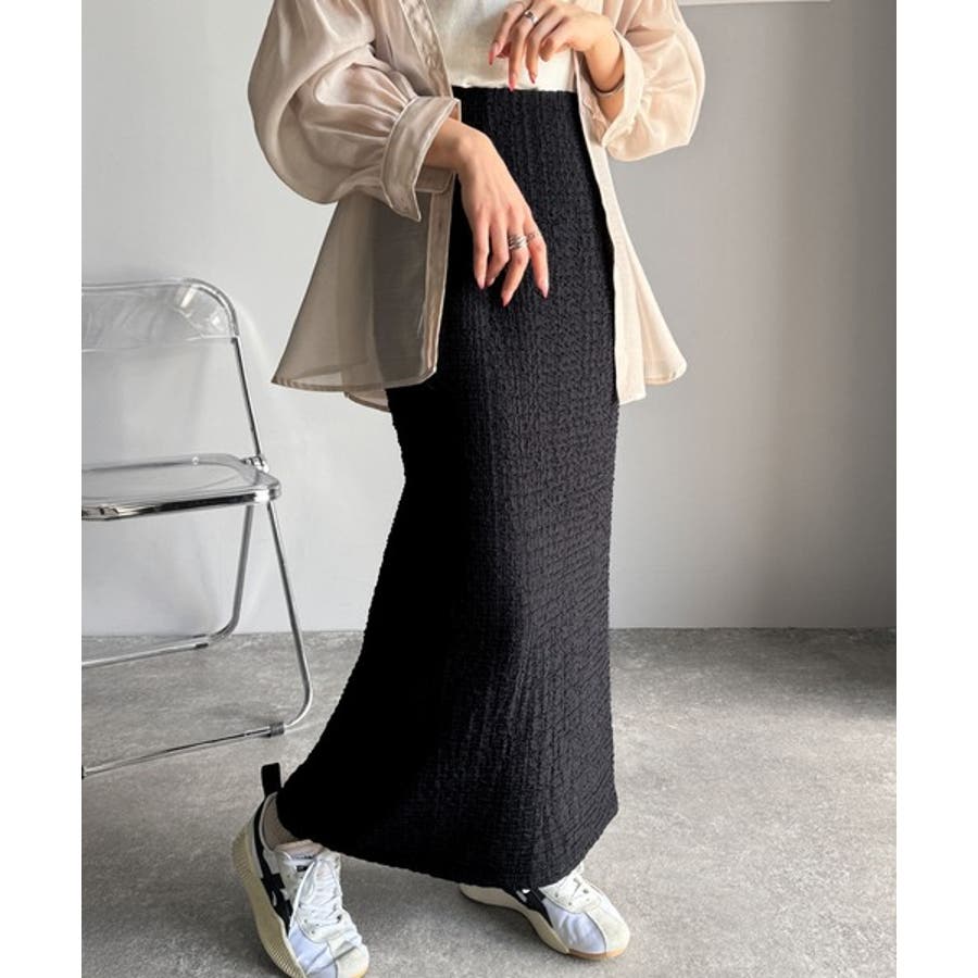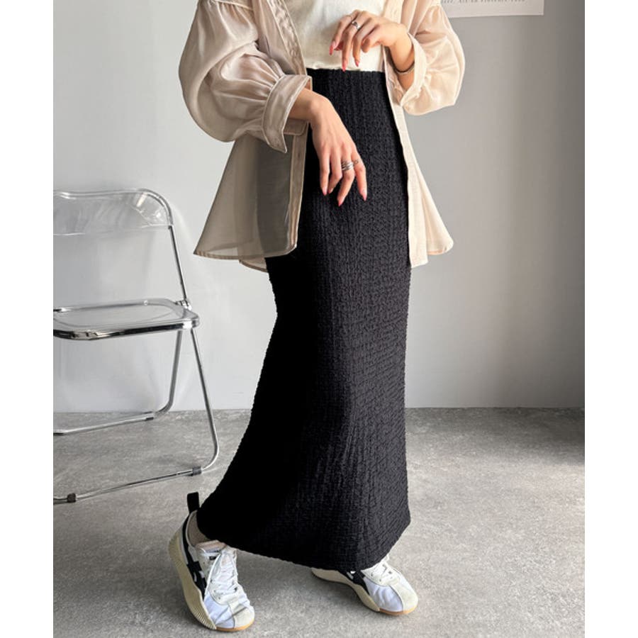ぽこぽこ素材がかわいい♪シャーリングファブリックストレートスカート(後ろゴム)