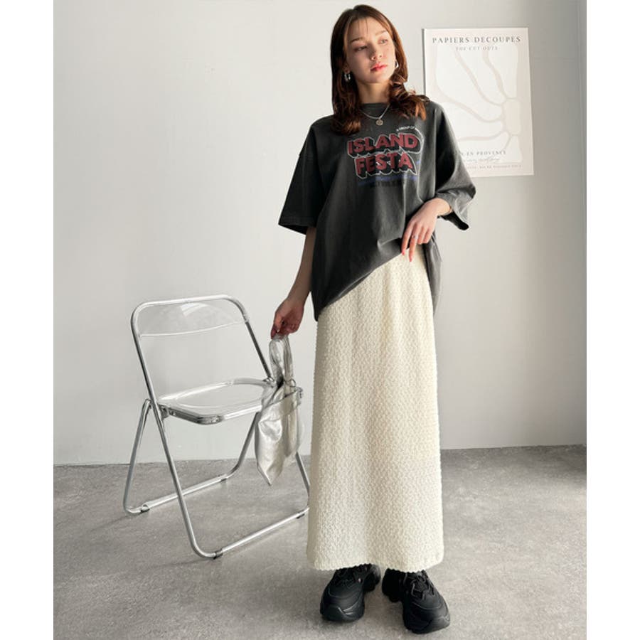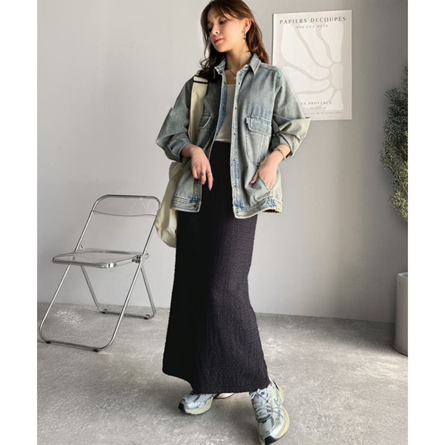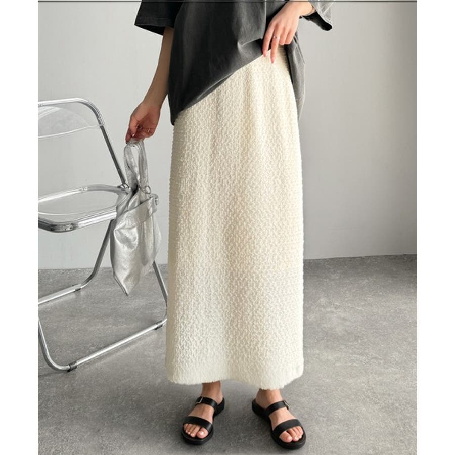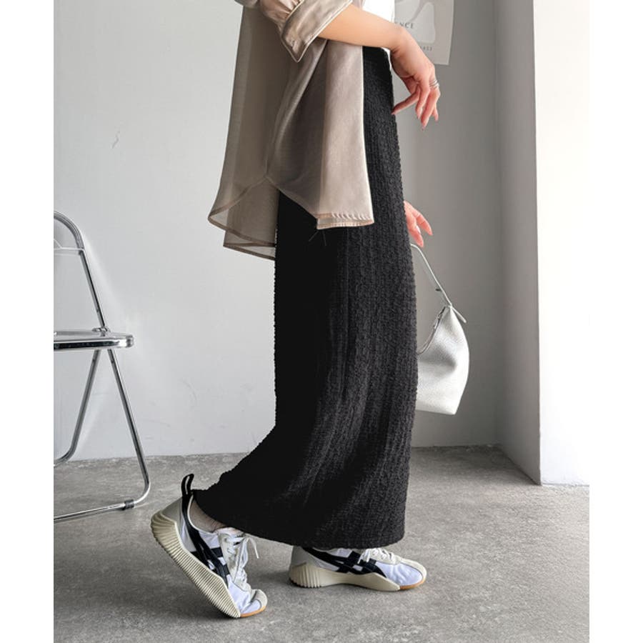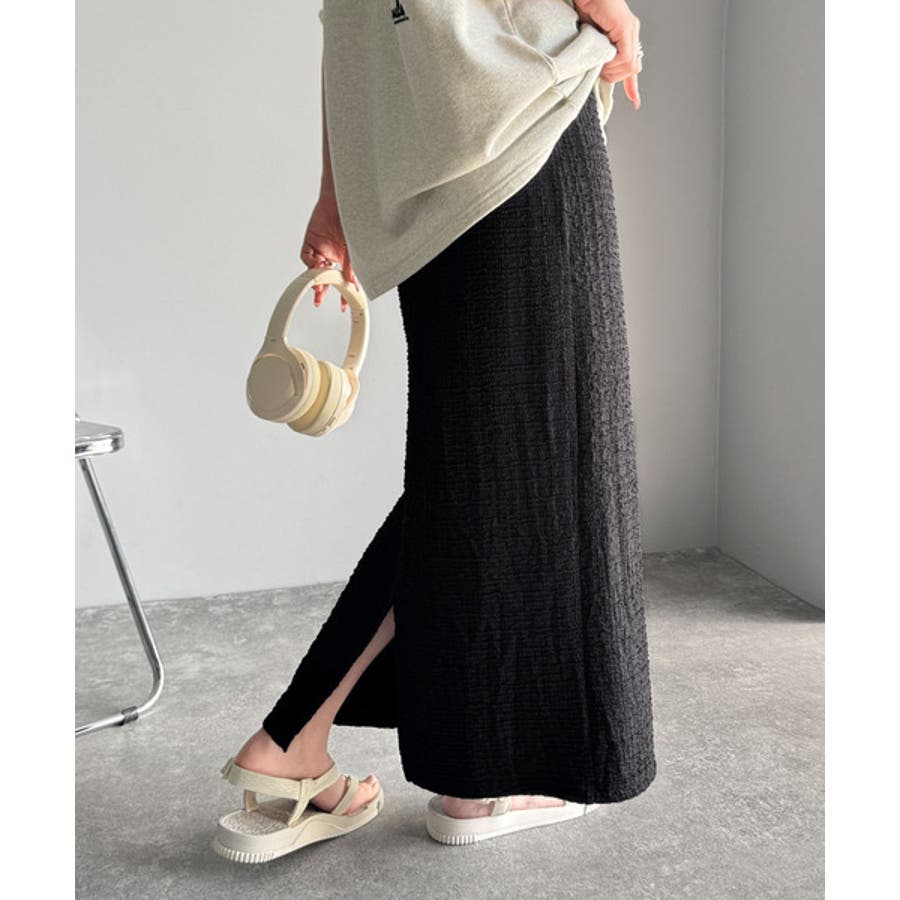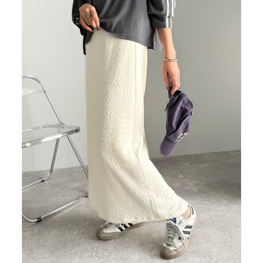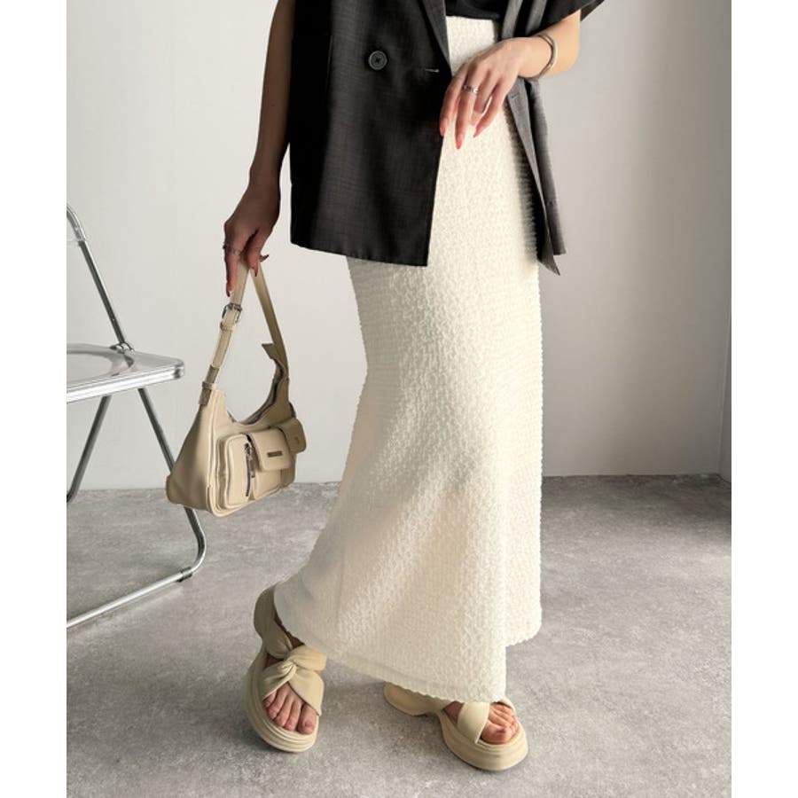 ぽこぽこ素材がかわいい♪シャーリングファブリックストレートスカート(後ろゴム)