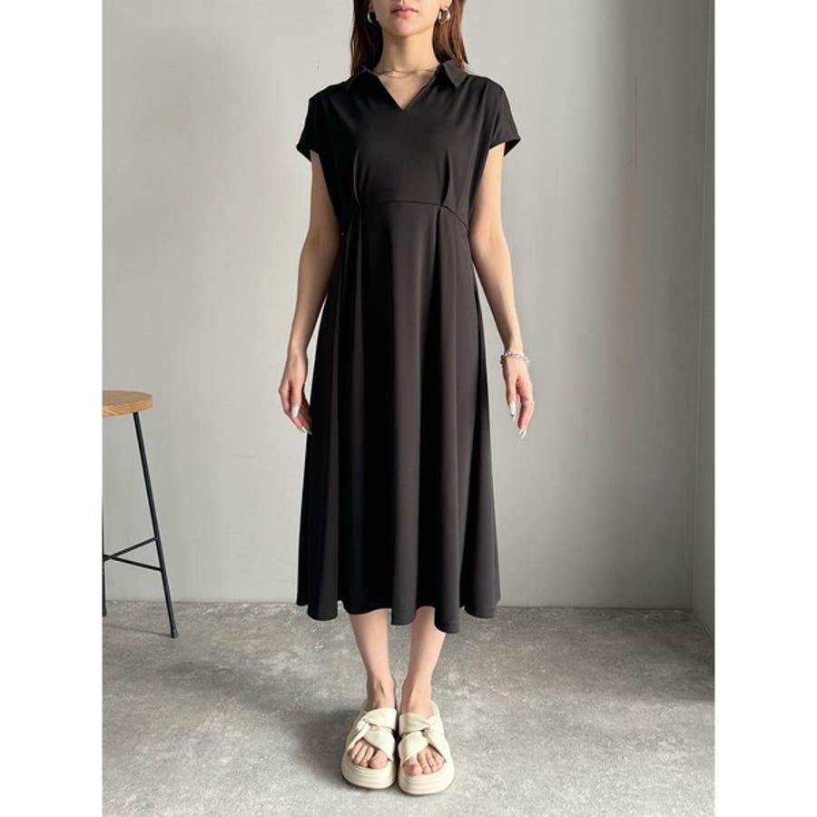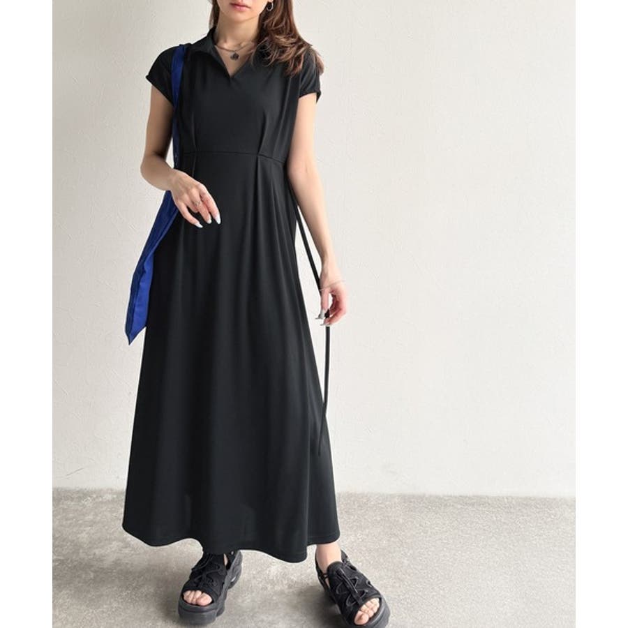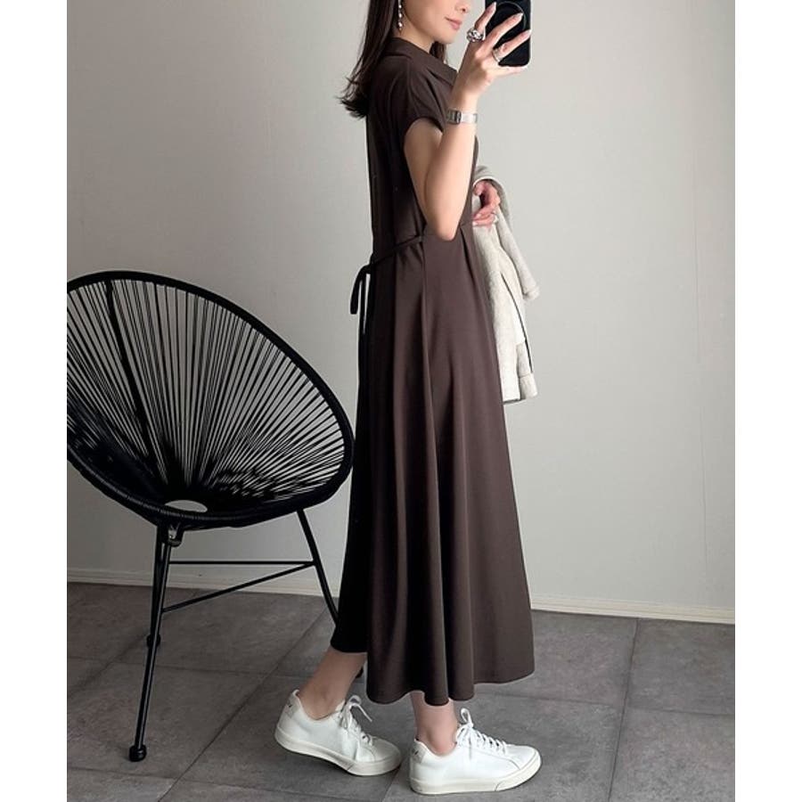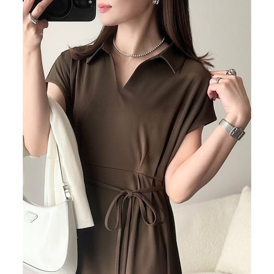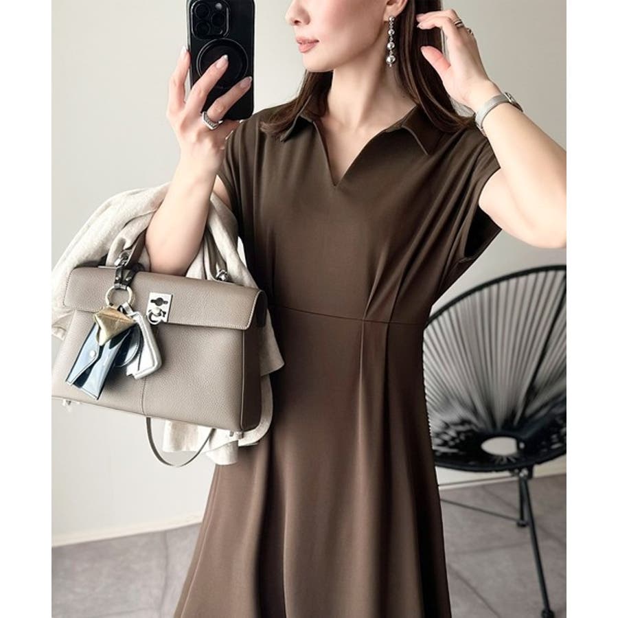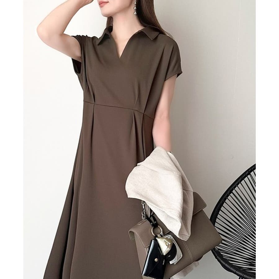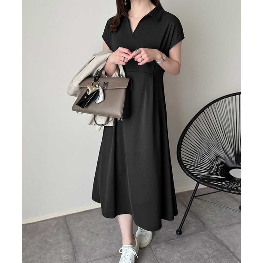 こちらのスキッパー美ラインワンピースは、シンプルながら存在感のあるデザインが魅力の一つ。