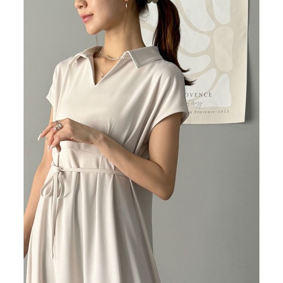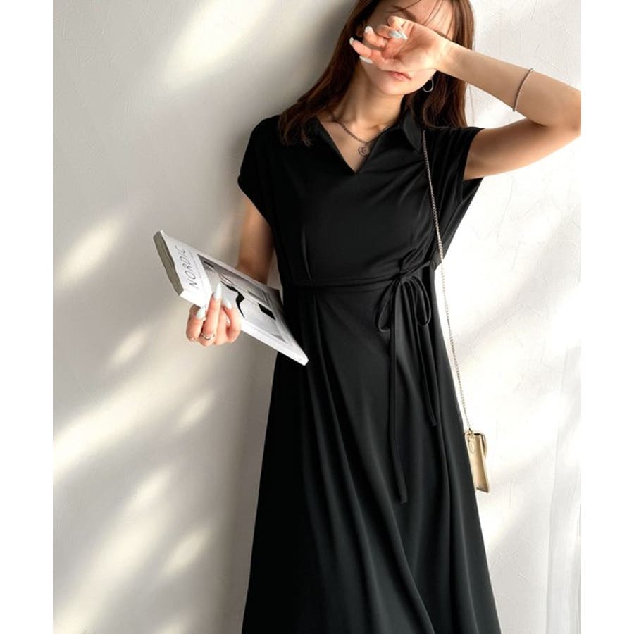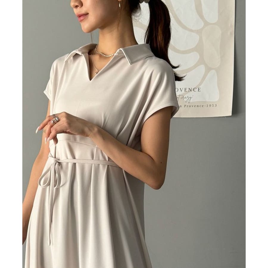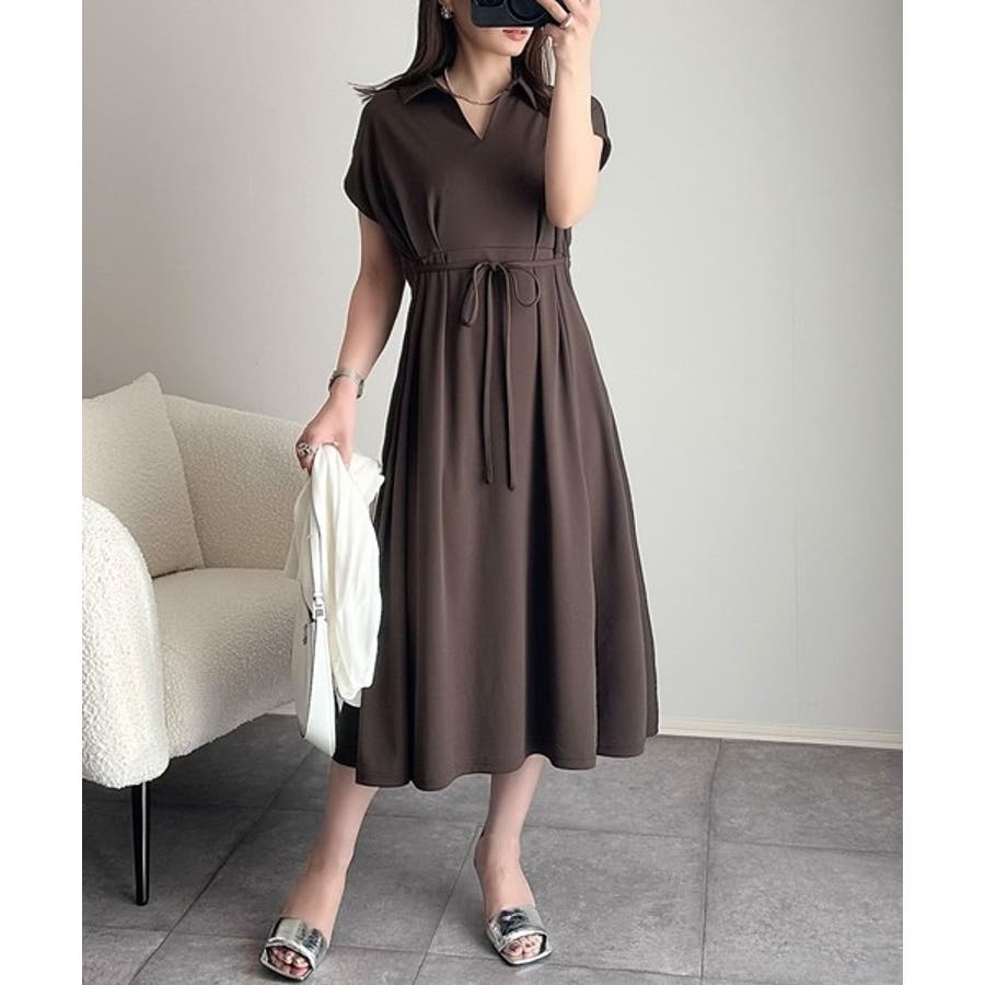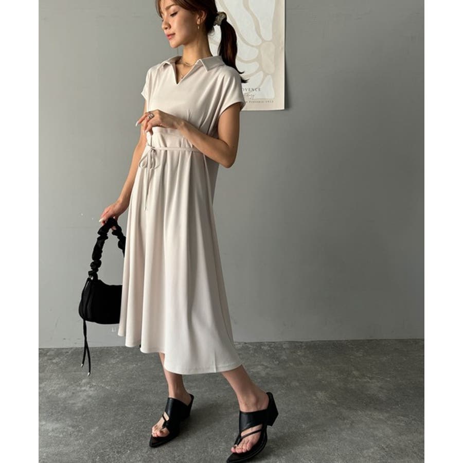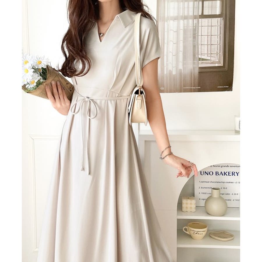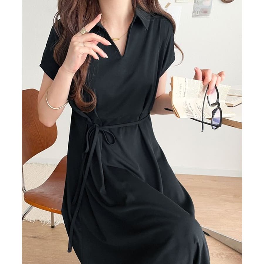 こちらのスキッパー美ラインワンピースは、シンプルながら存在感のあるデザインが魅力の一つ。