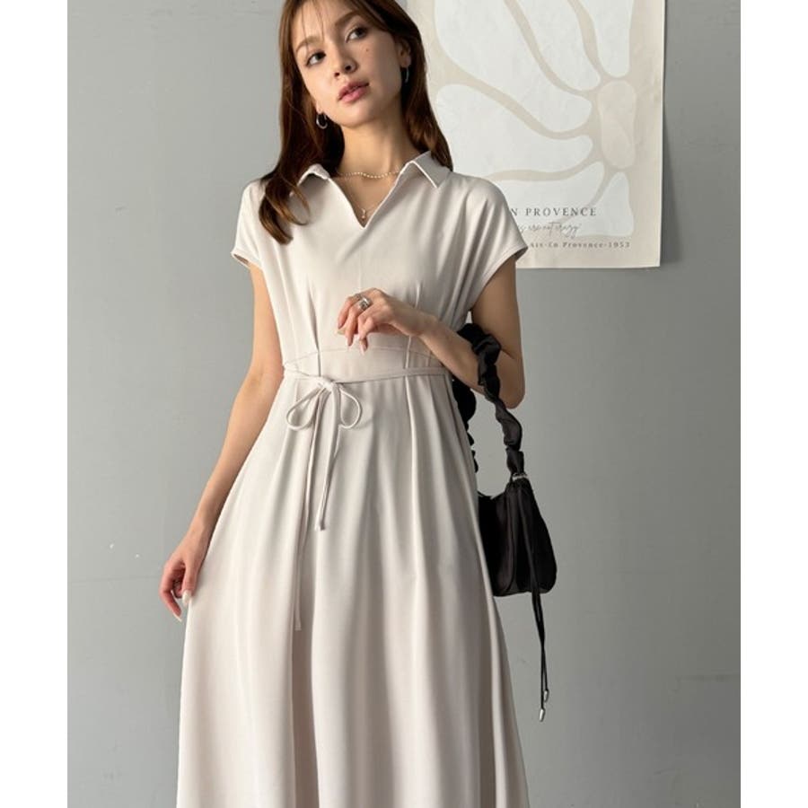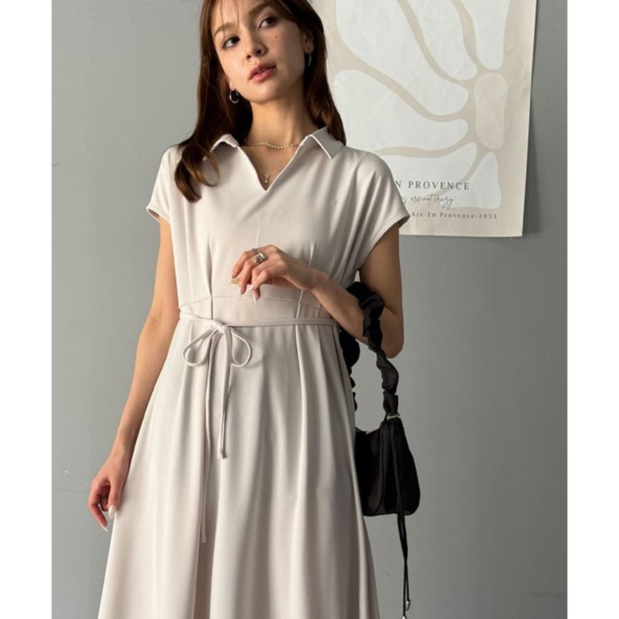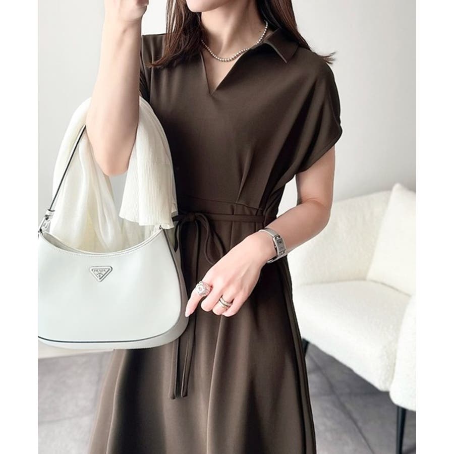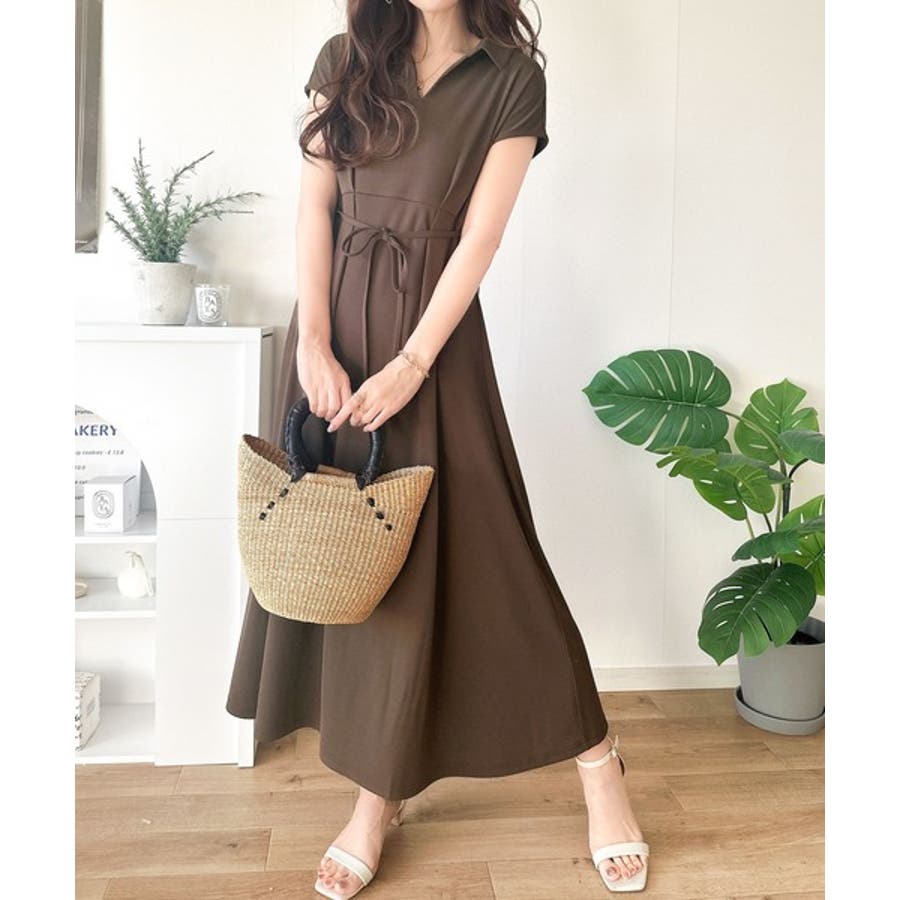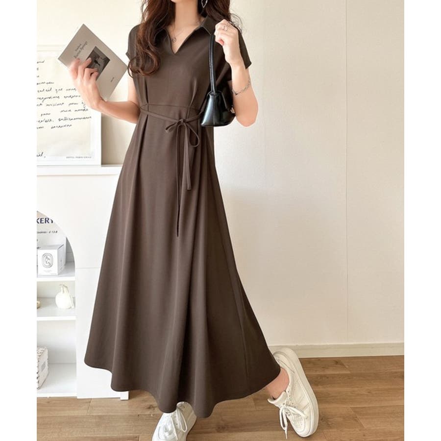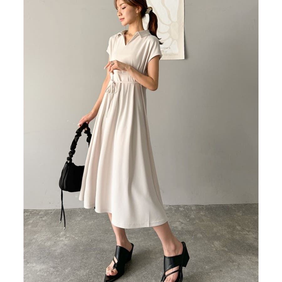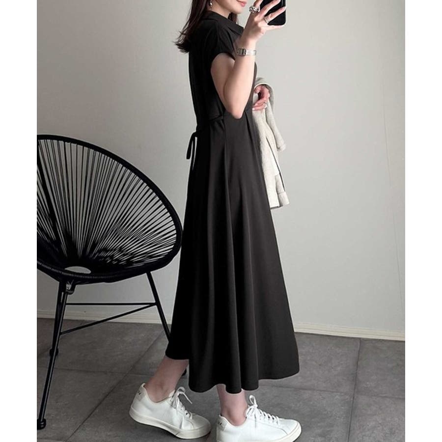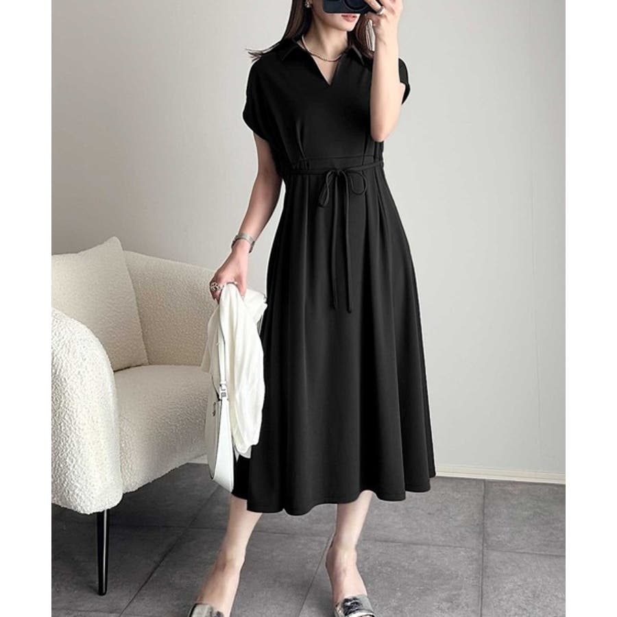 こちらのスキッパー美ラインワンピースは、シンプルながら存在感のあるデザインが魅力の一つ。