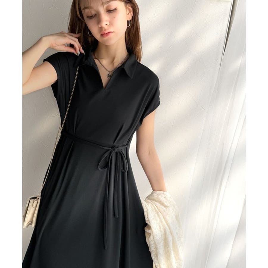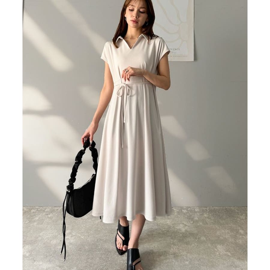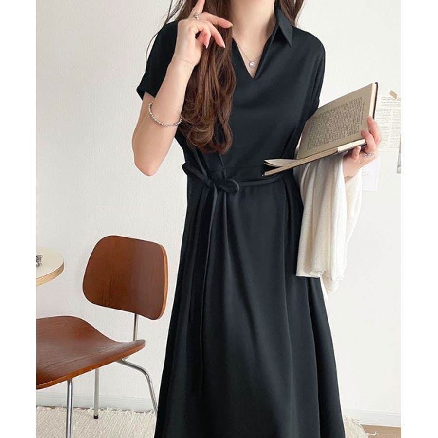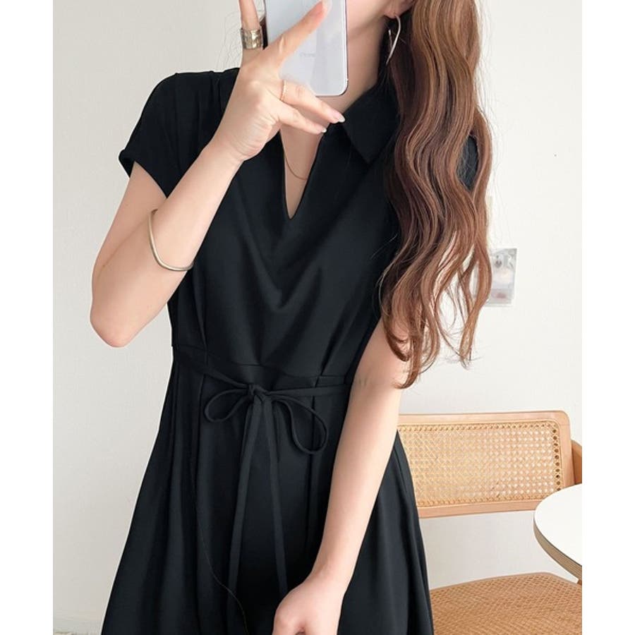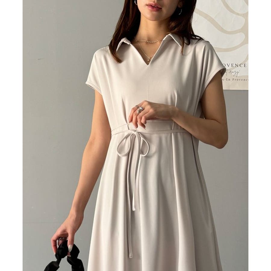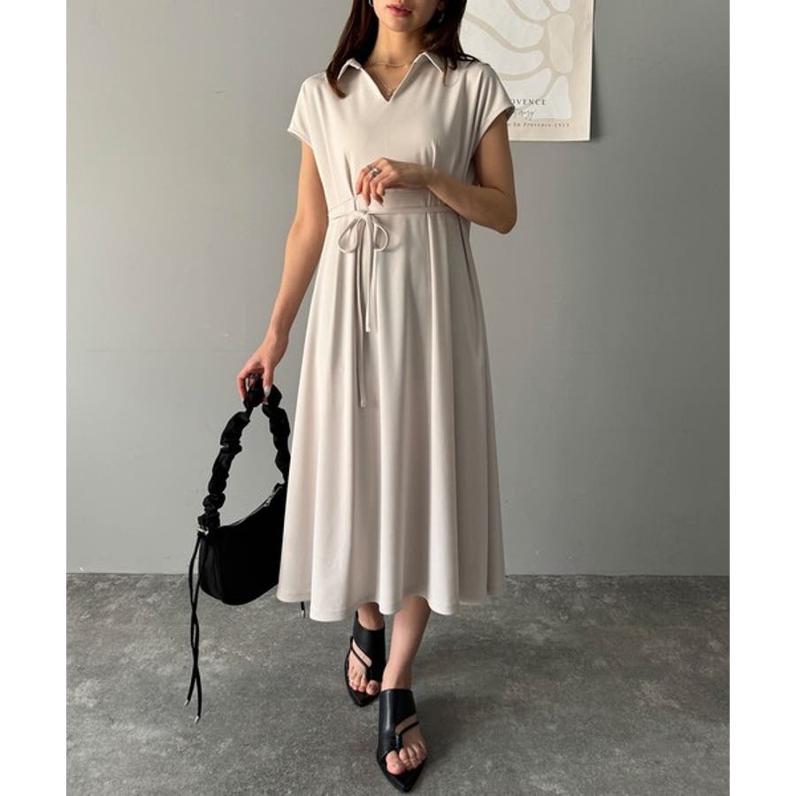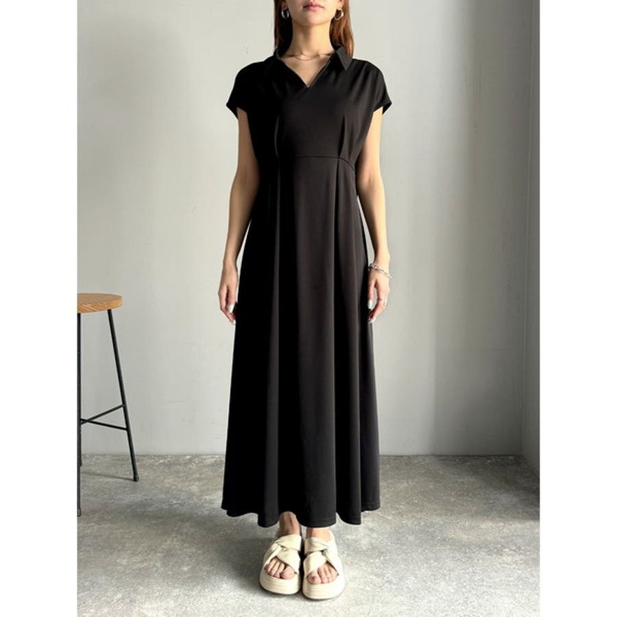 こちらのスキッパー美ラインワンピースは、シンプルながら存在感のあるデザインが魅力の一つ。