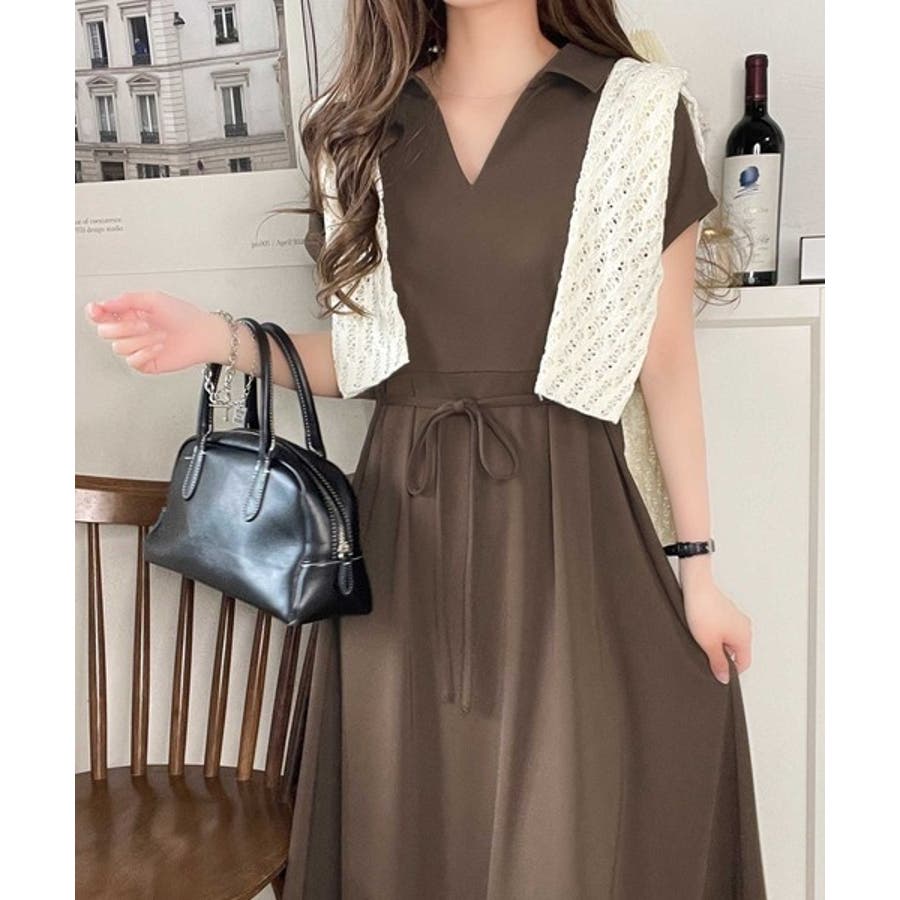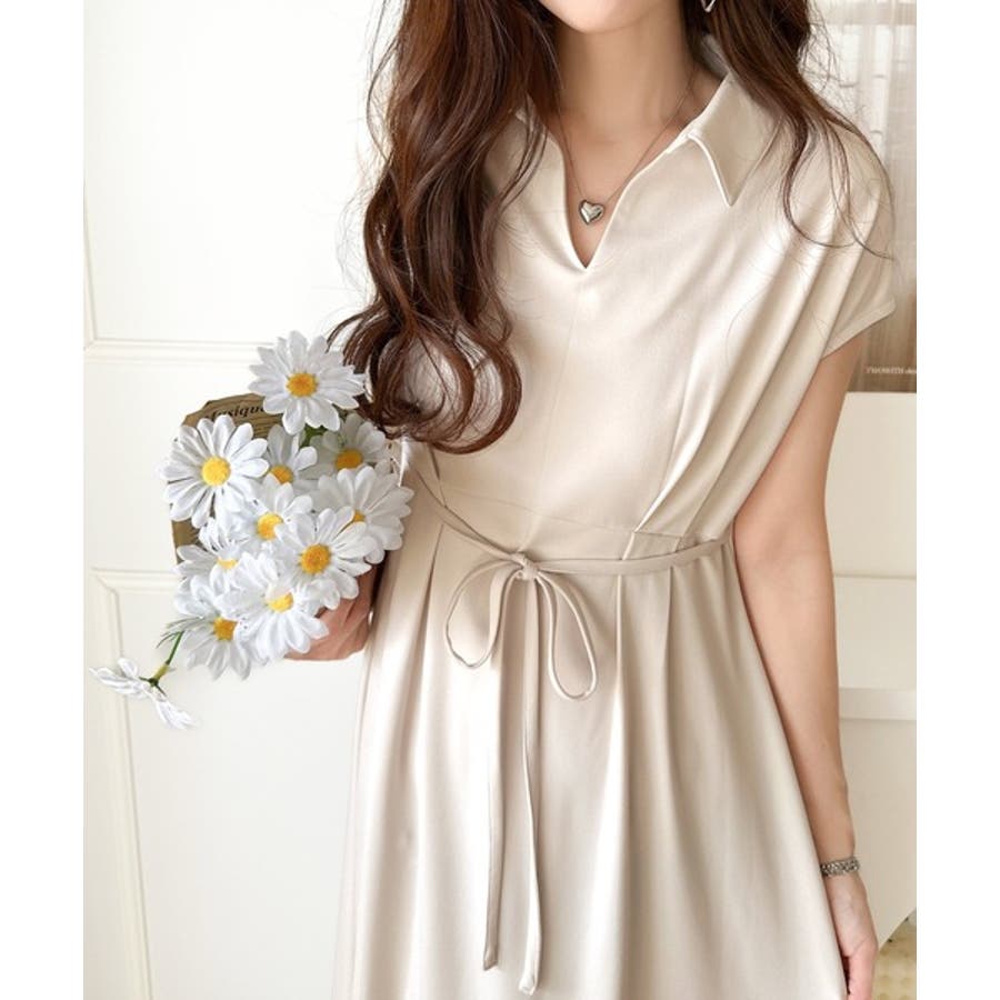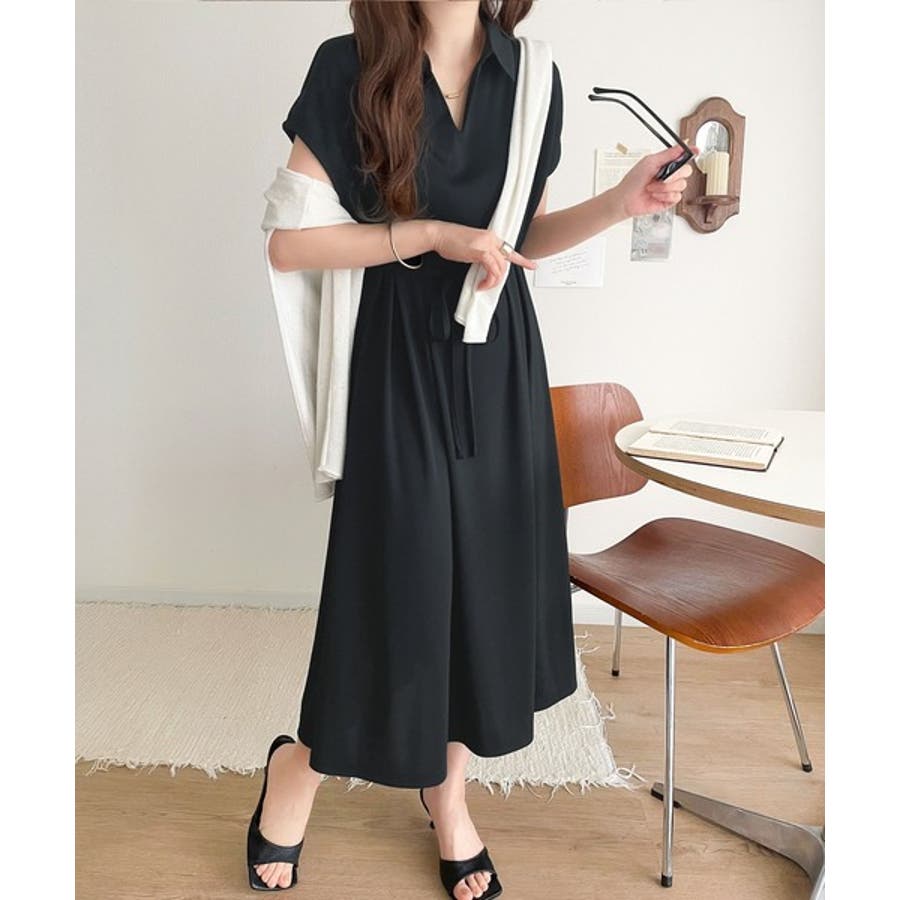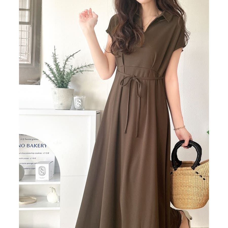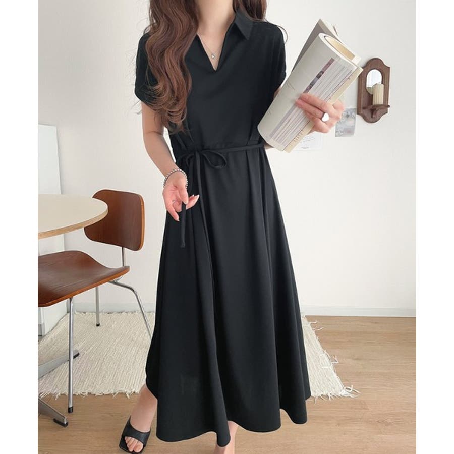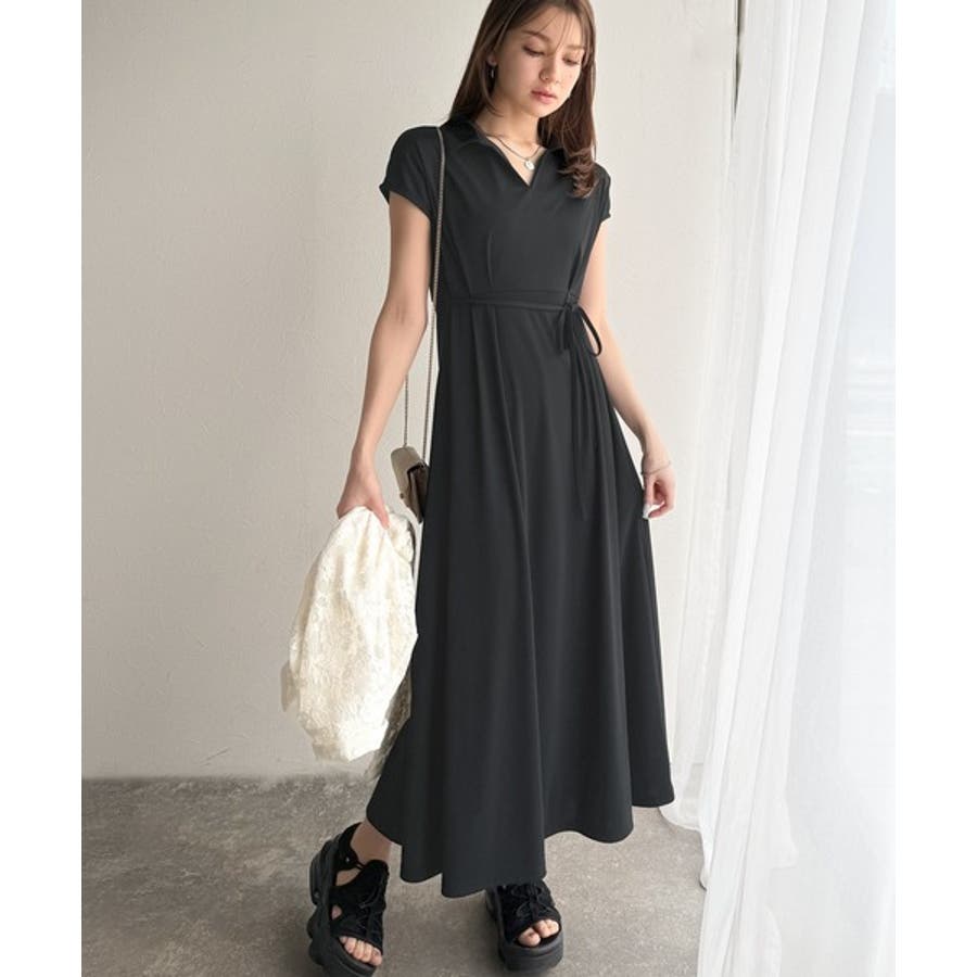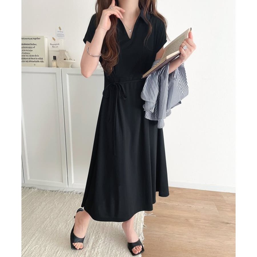 こちらのスキッパー美ラインワンピースは、シンプルながら存在感のあるデザインが魅力の一つ。