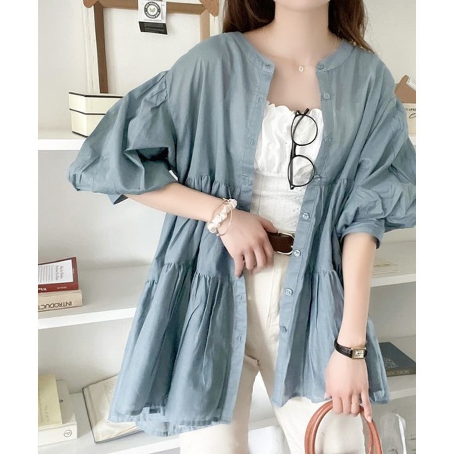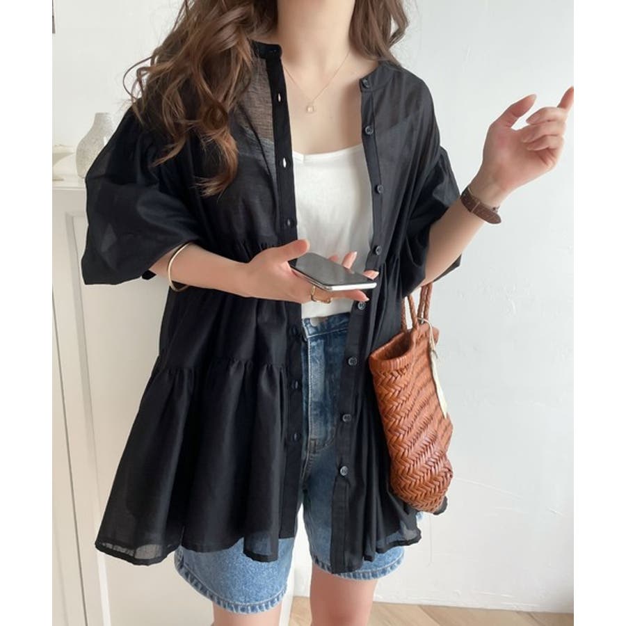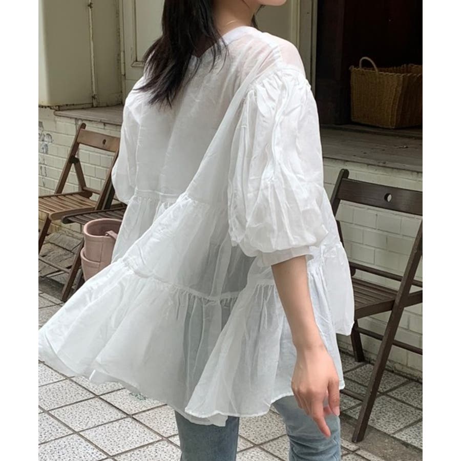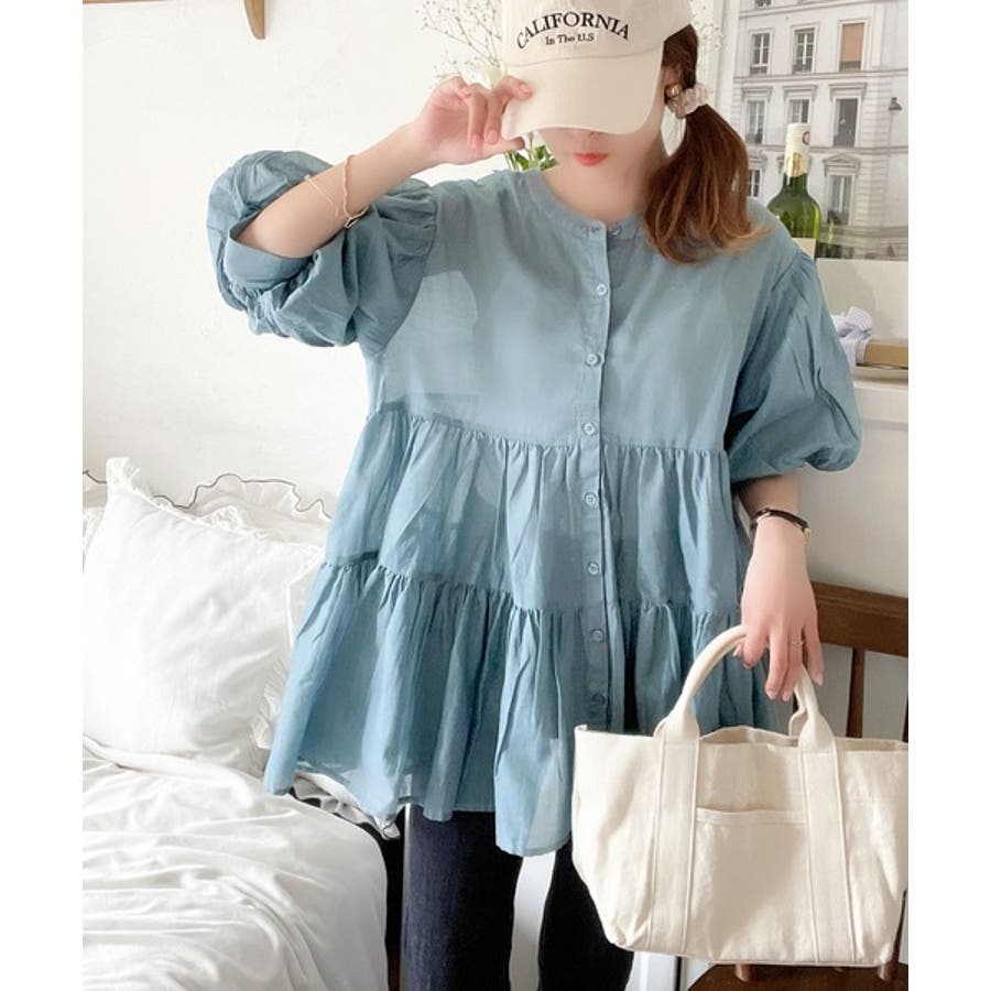 トップス 韓国ファッション 体型カバー 大きいサイズ 大人 春夏秋冬 ストリート 夏服 ルームウェア 人気 ブラウス フリル チュニック バルーンスリーブ 韓国ファッション 韓国 秋服 冬服 春服 夏服 秋 冬 春 夏 量産型 大きいサイズ オフィスカジュアル セクシー プチプラ 10代 20代 30代 40代 50代 オフィスカジュアル セクシー ロンT オフィスカジュアル ブラウス 半袖 オフィス ブラウスオフィス ホーム シンプル 冷房対策 UV対策 紫外線 羽織 体型カバー