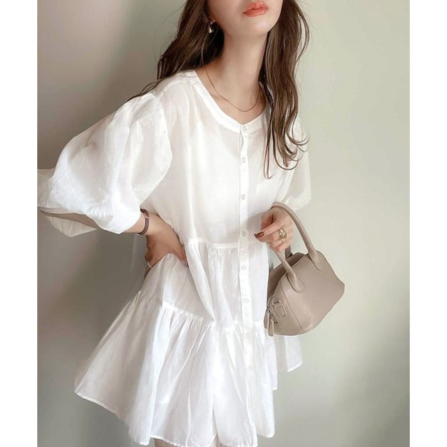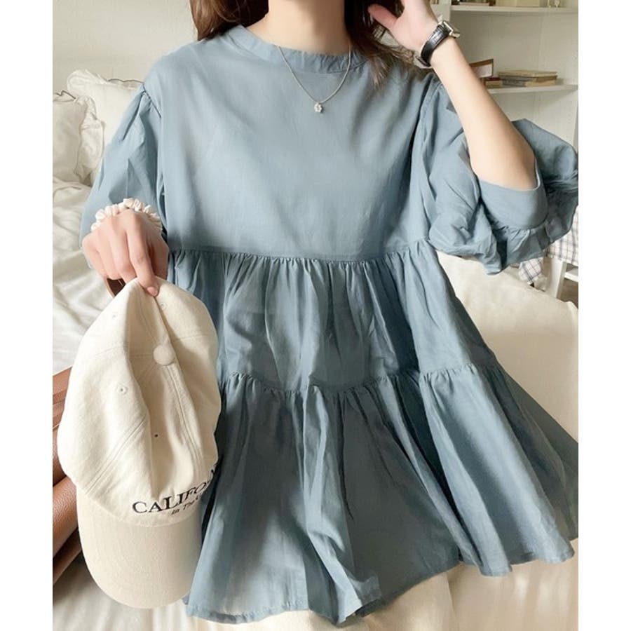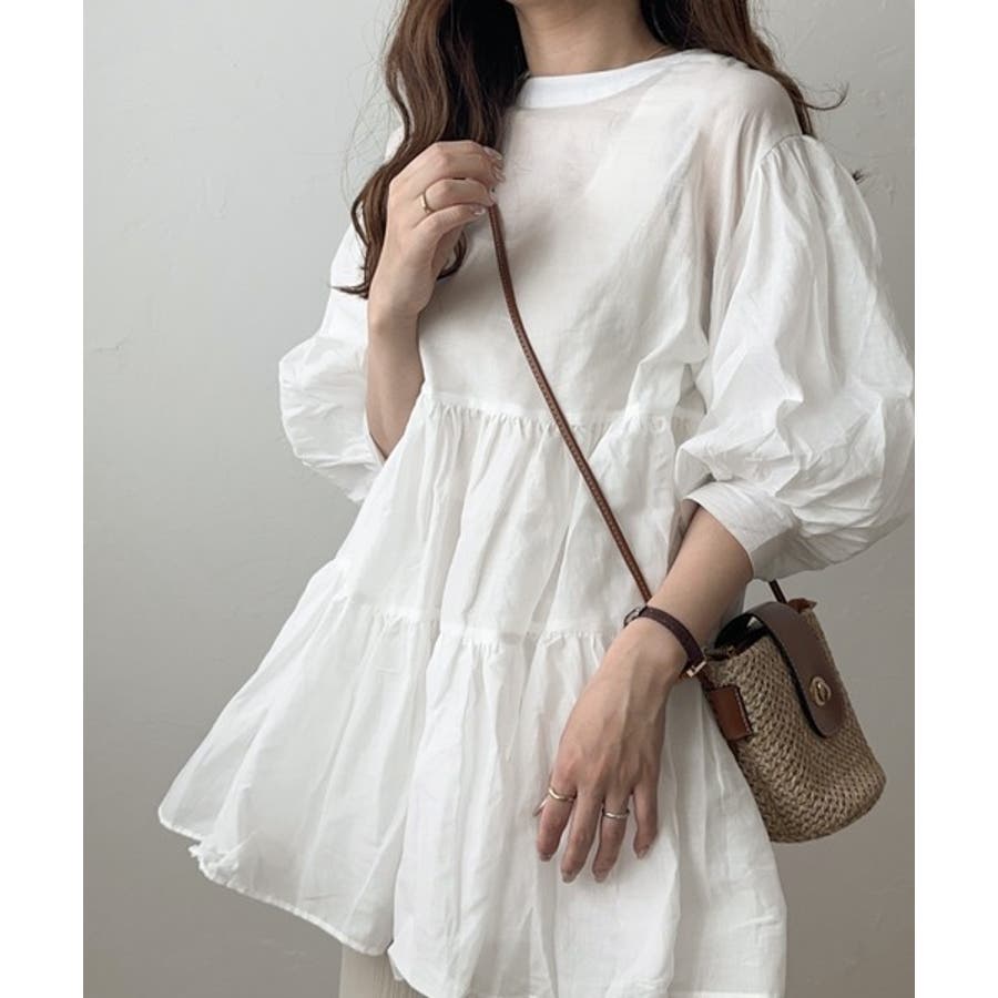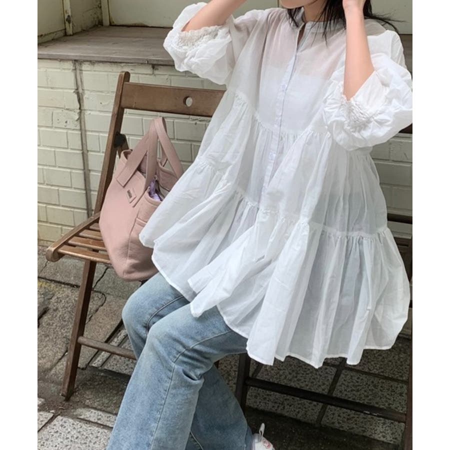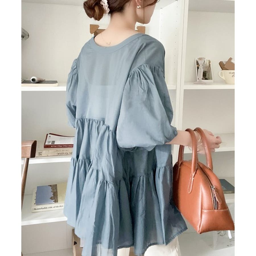 トップス 韓国ファッション 体型カバー 大きいサイズ 大人 春夏秋冬 ストリート 夏服 ルームウェア 人気 ブラウス フリル チュニック バルーンスリーブ 韓国ファッション 韓国 秋服 冬服 春服 夏服 秋 冬 春 夏 量産型 大きいサイズ オフィスカジュアル セクシー プチプラ 10代 20代 30代 40代 50代 オフィスカジュアル セクシー ロンT オフィスカジュアル ブラウス 半袖 オフィス ブラウスオフィス ホーム シンプル 冷房対策 UV対策 紫外線 羽織 体型カバー