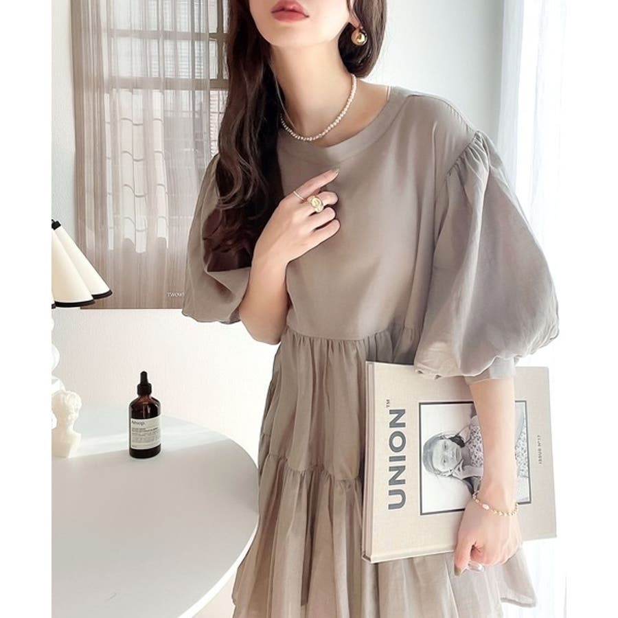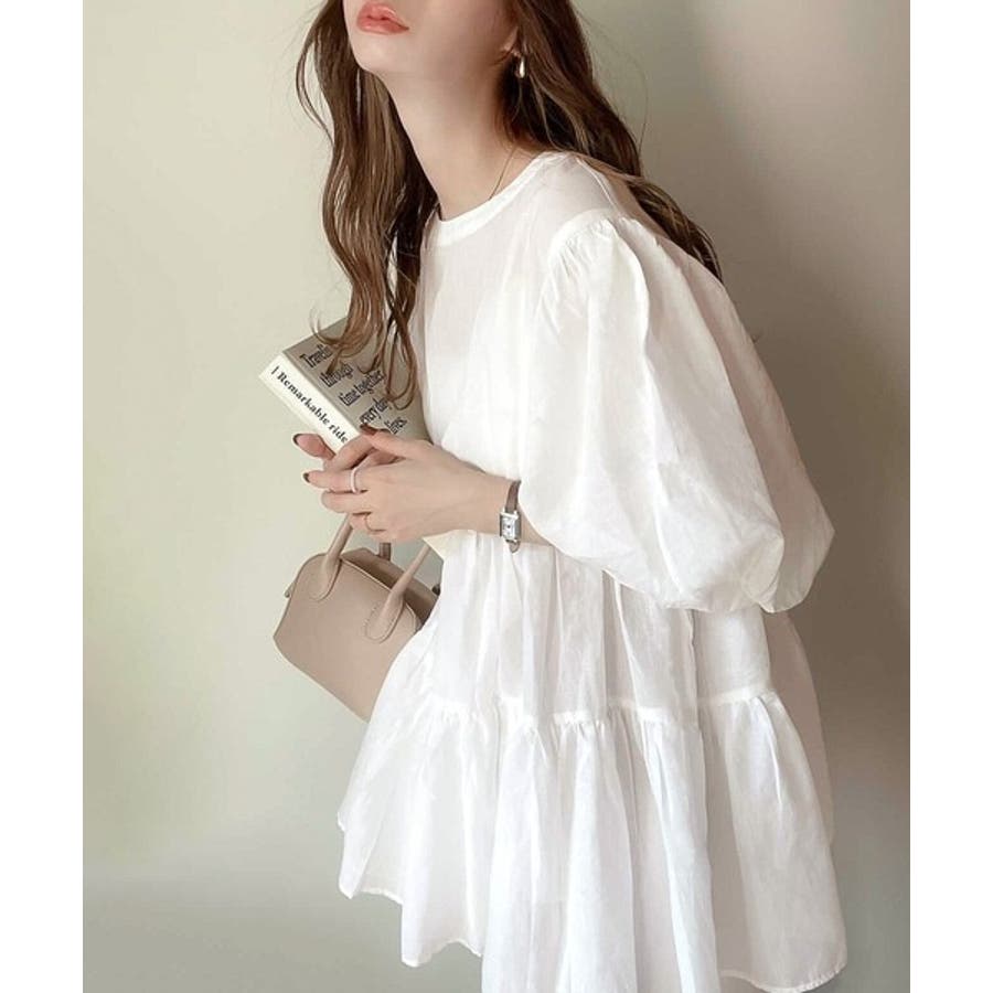 程よいふんわりシルエットとバルーンスリーブが柔らかく女性らしい雰囲気を演出。