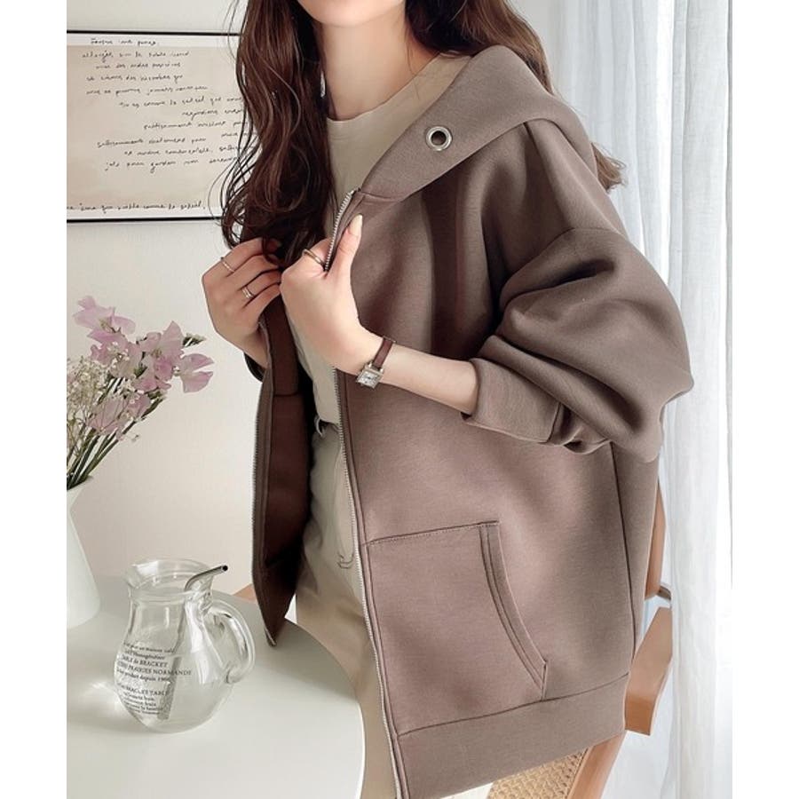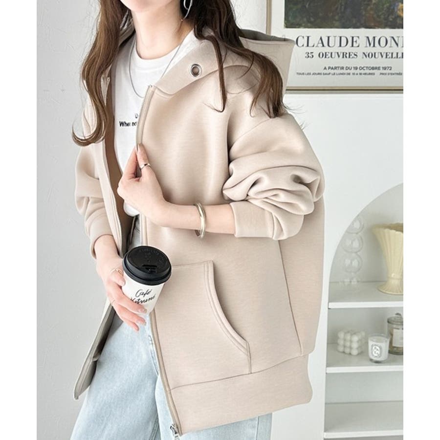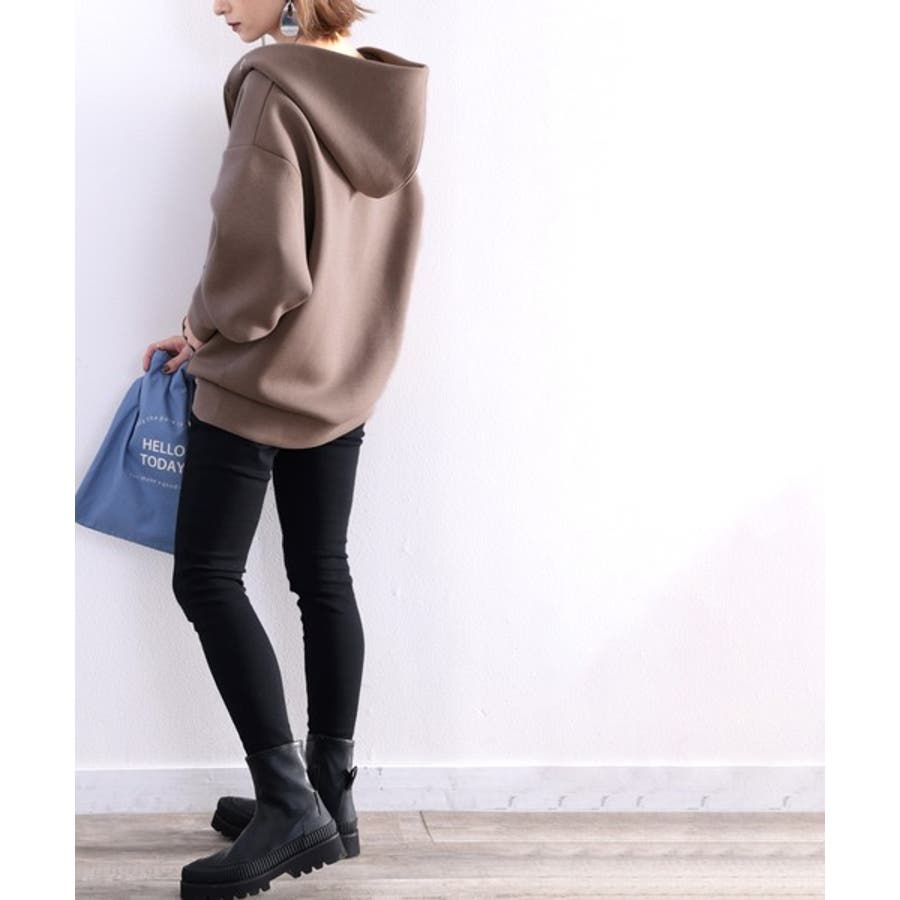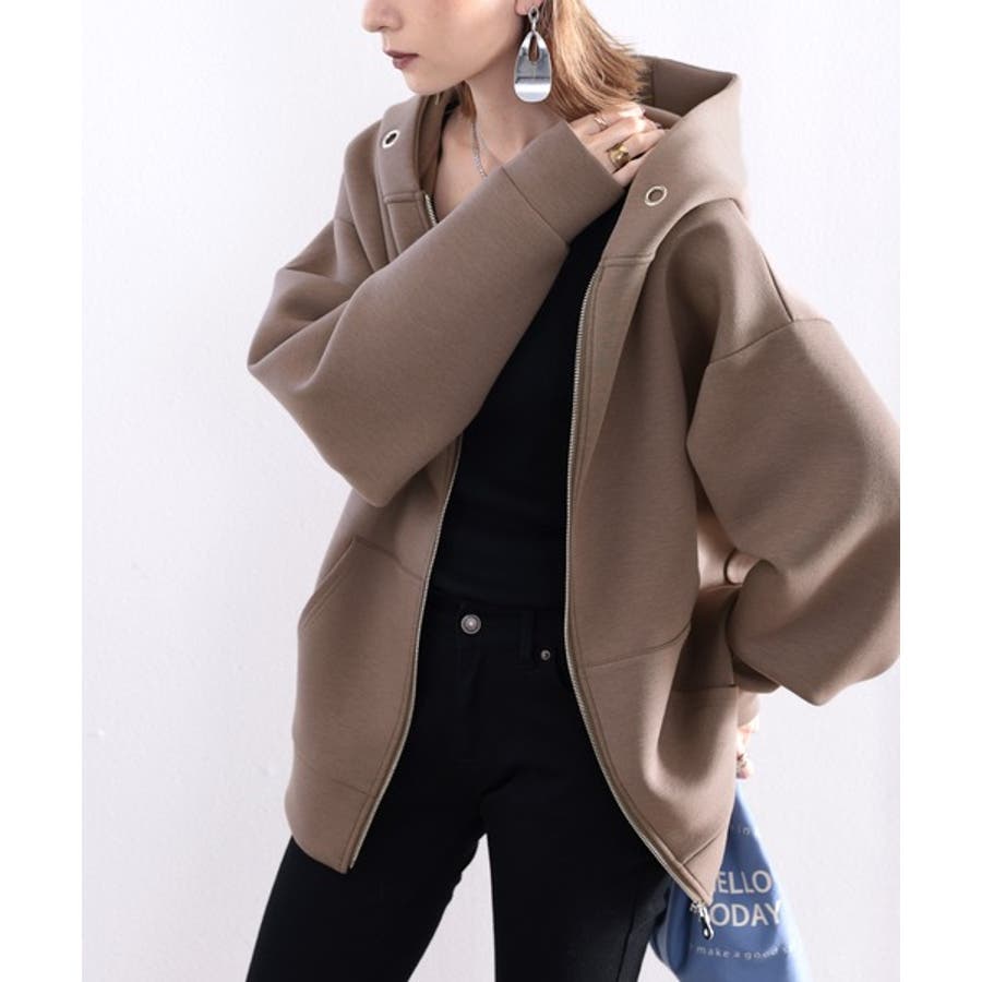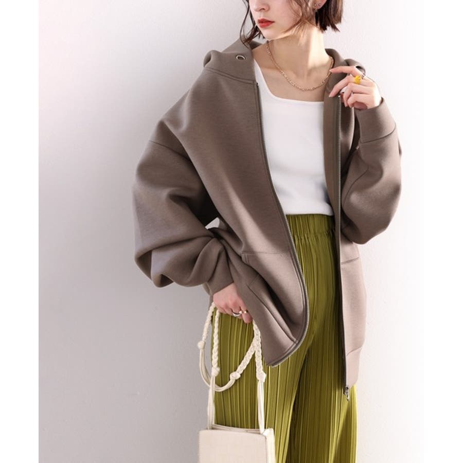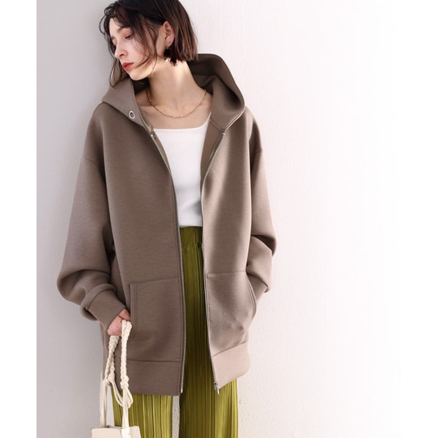 カジュアルなパーカーも上品に着こなせる1枚です。