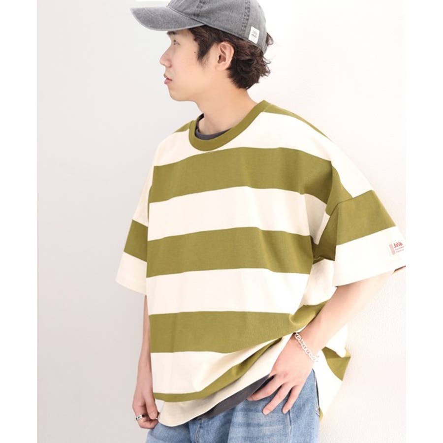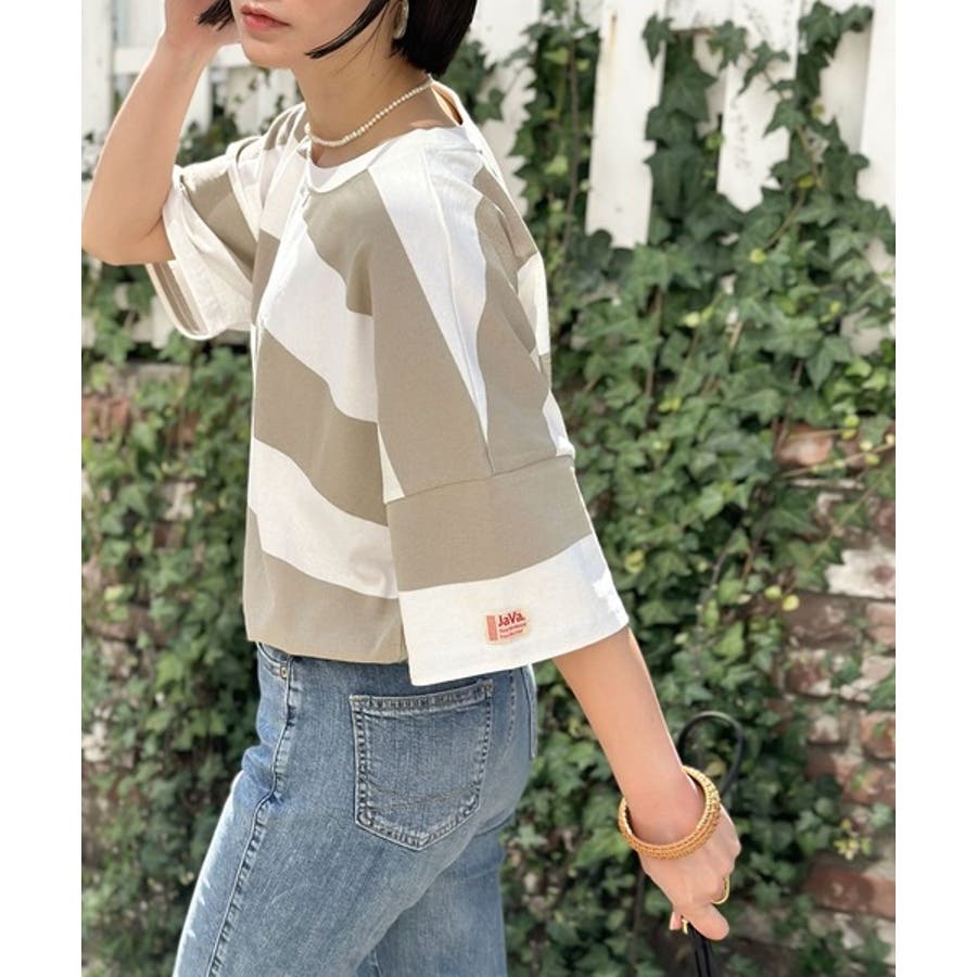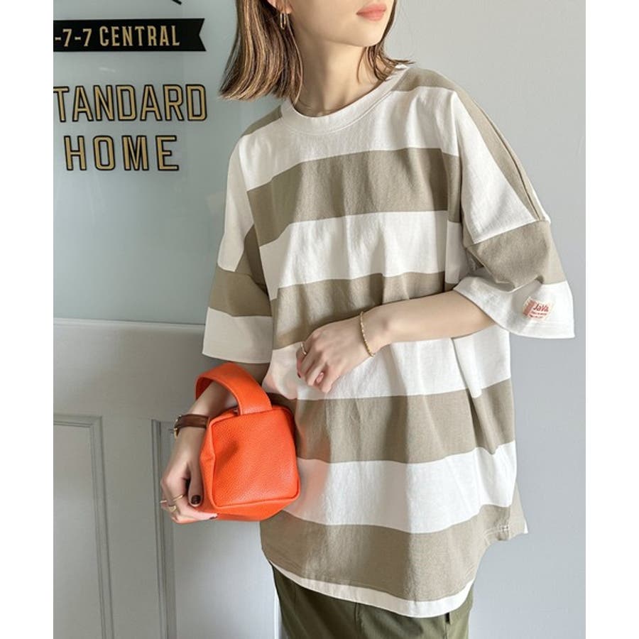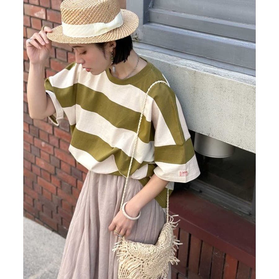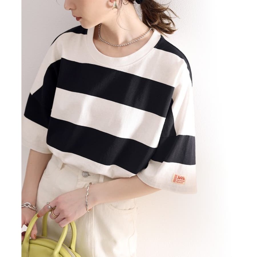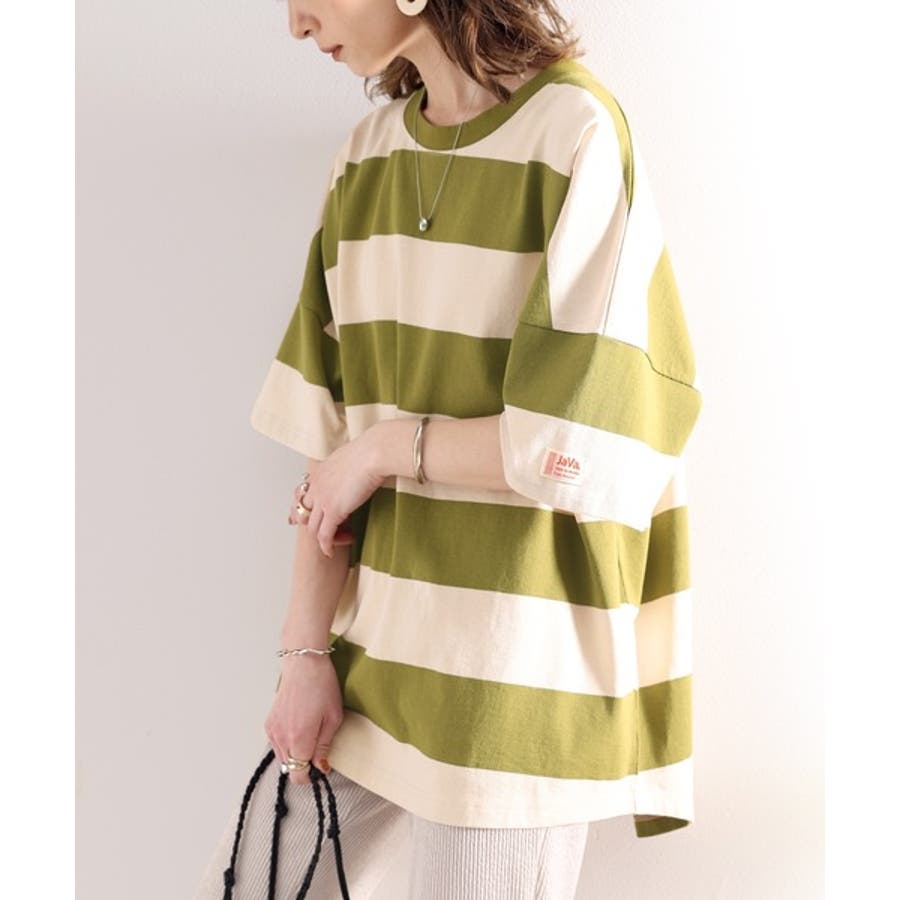 《JaVa ジャバコラボ》綿100%、ワイドボーダーbigシルエットトップス