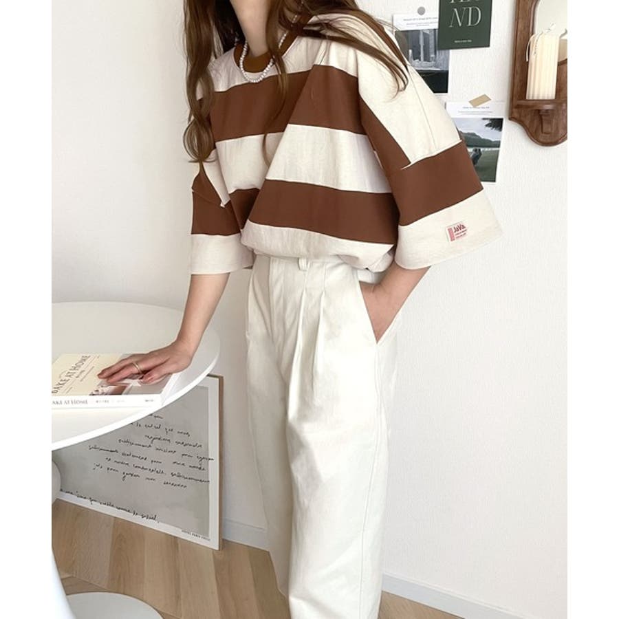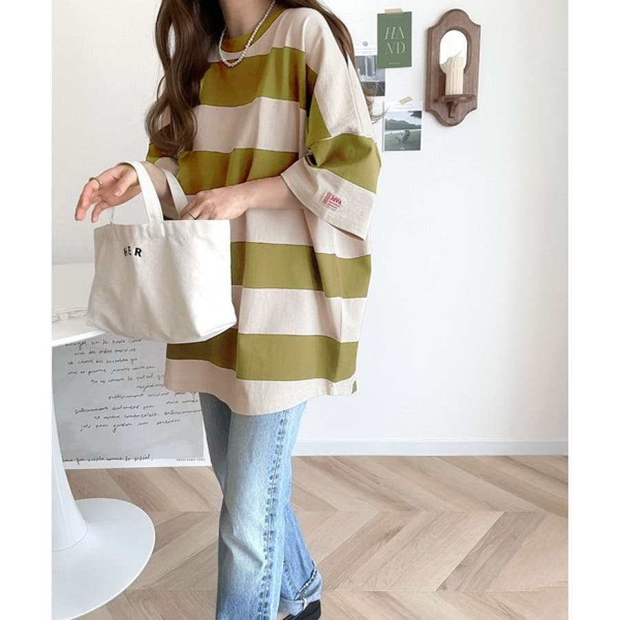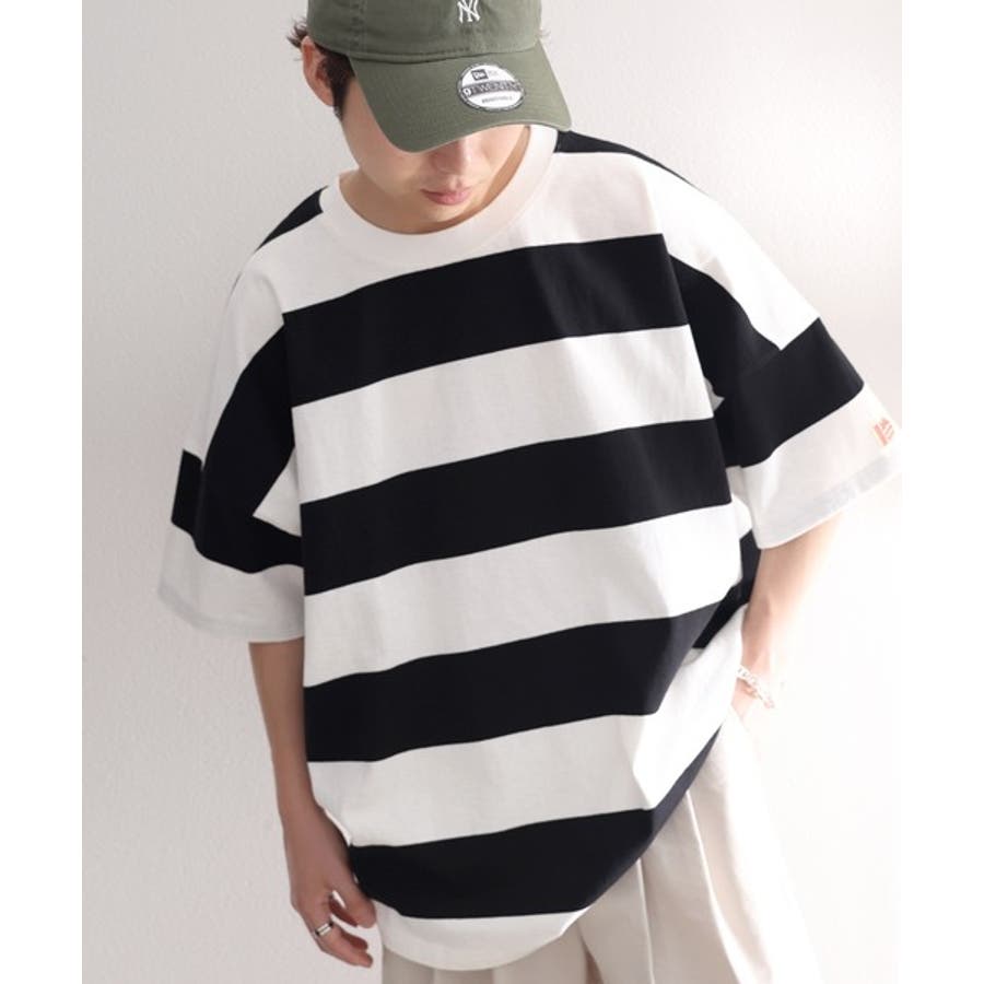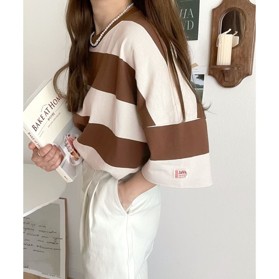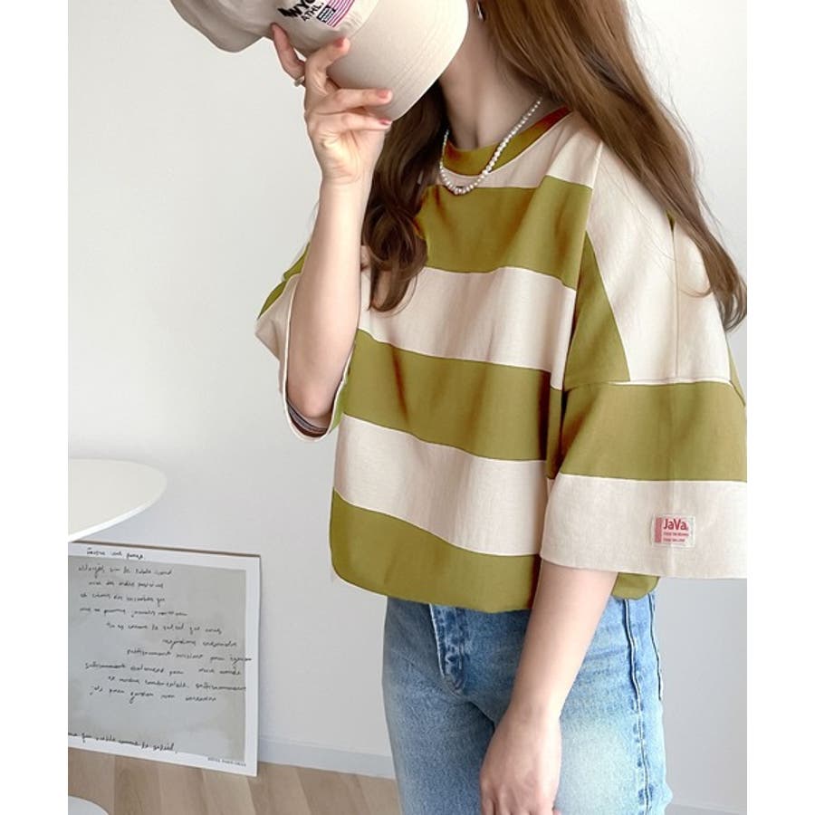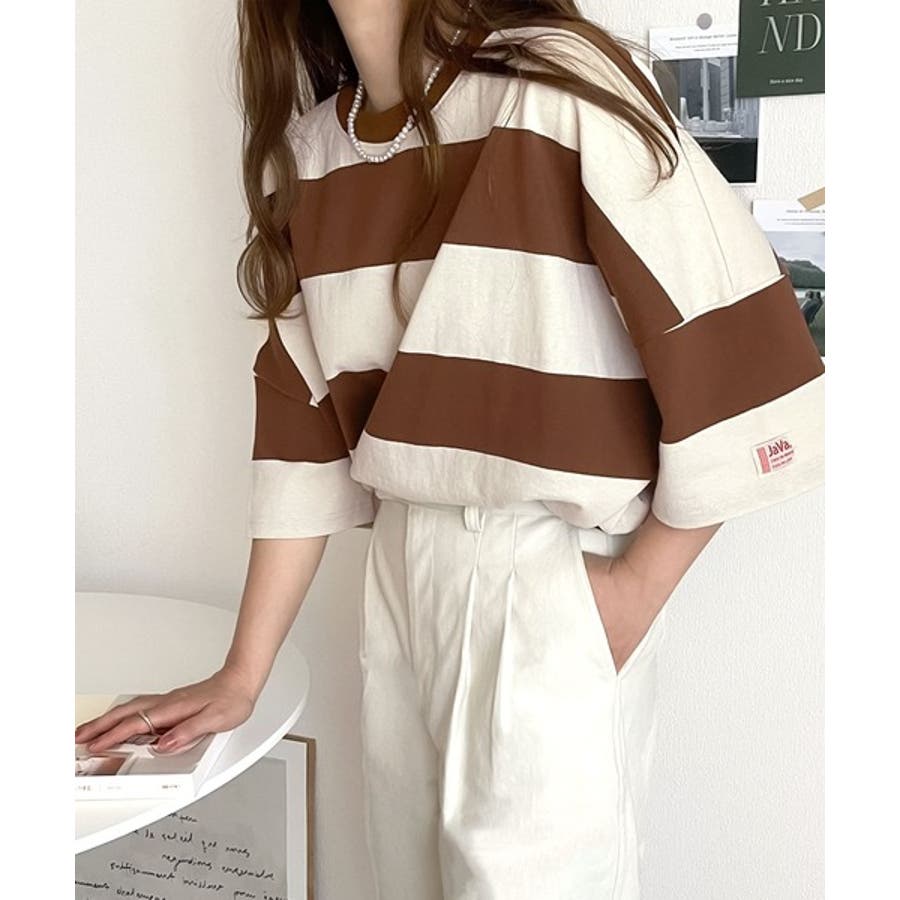 《JaVa ジャバコラボ》綿100%、ワイドボーダーbigシルエットトップス