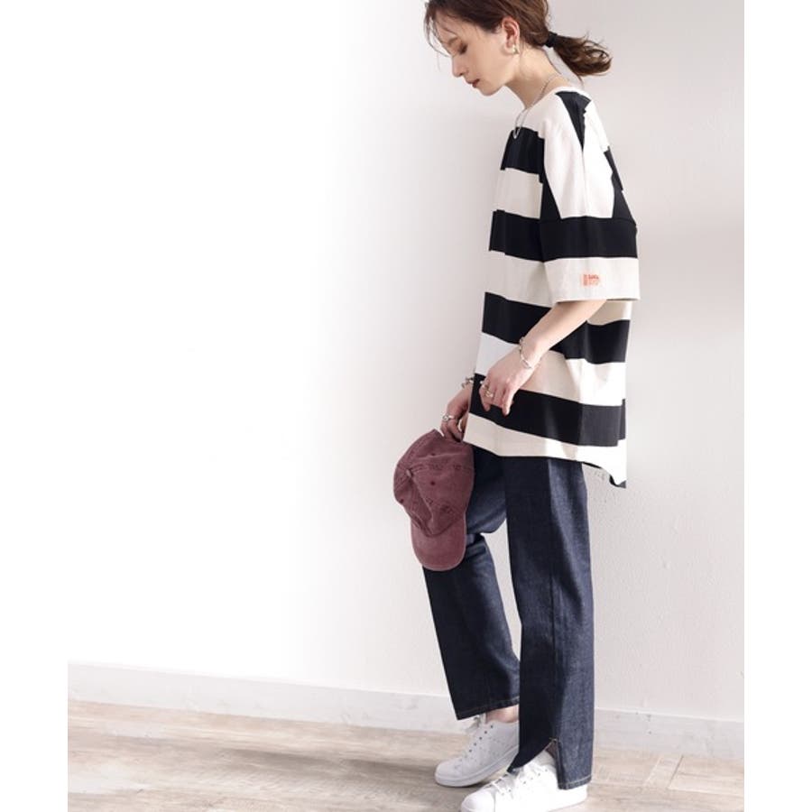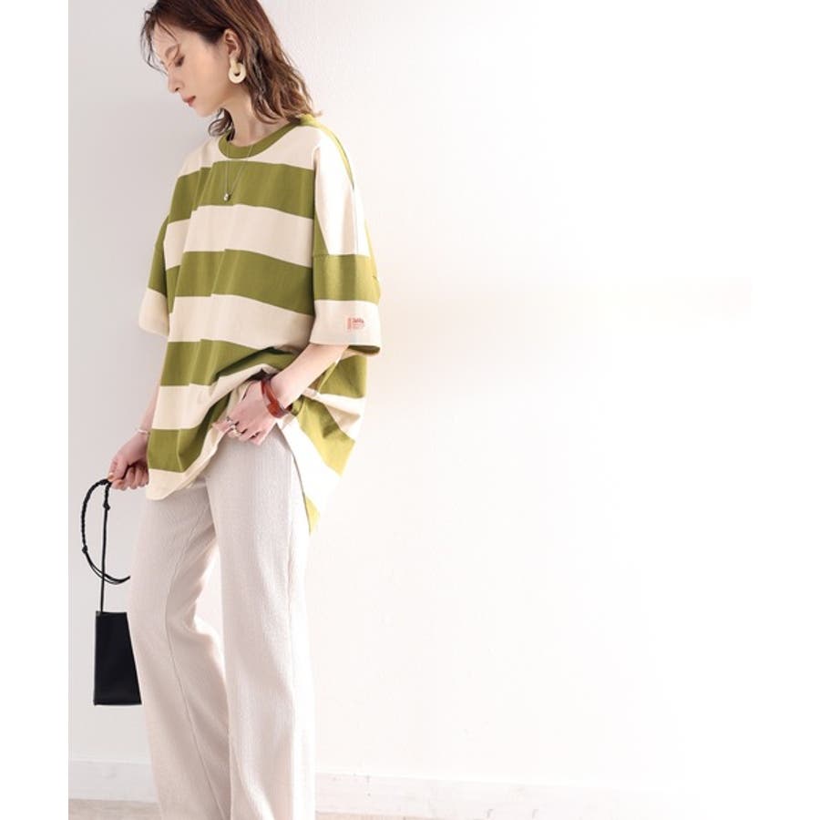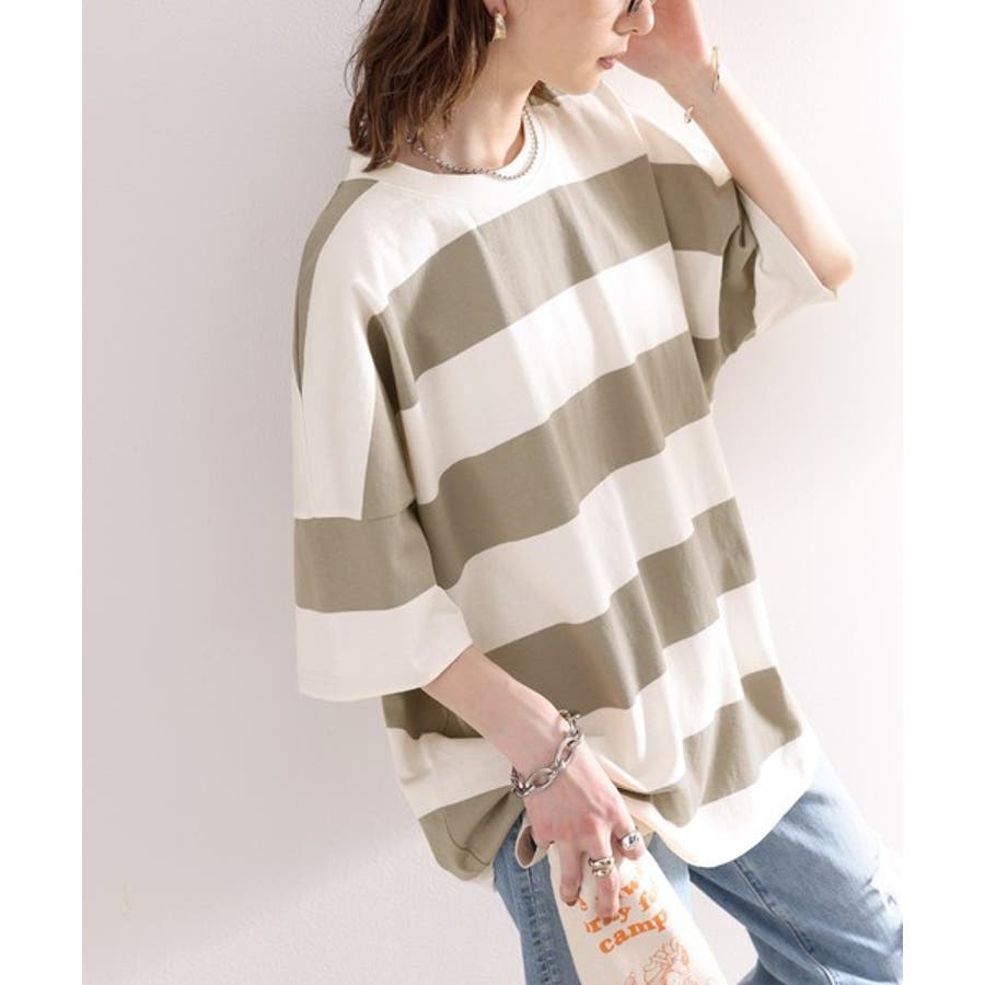 綿100%の程よく肉厚なワイドボーダートップス。