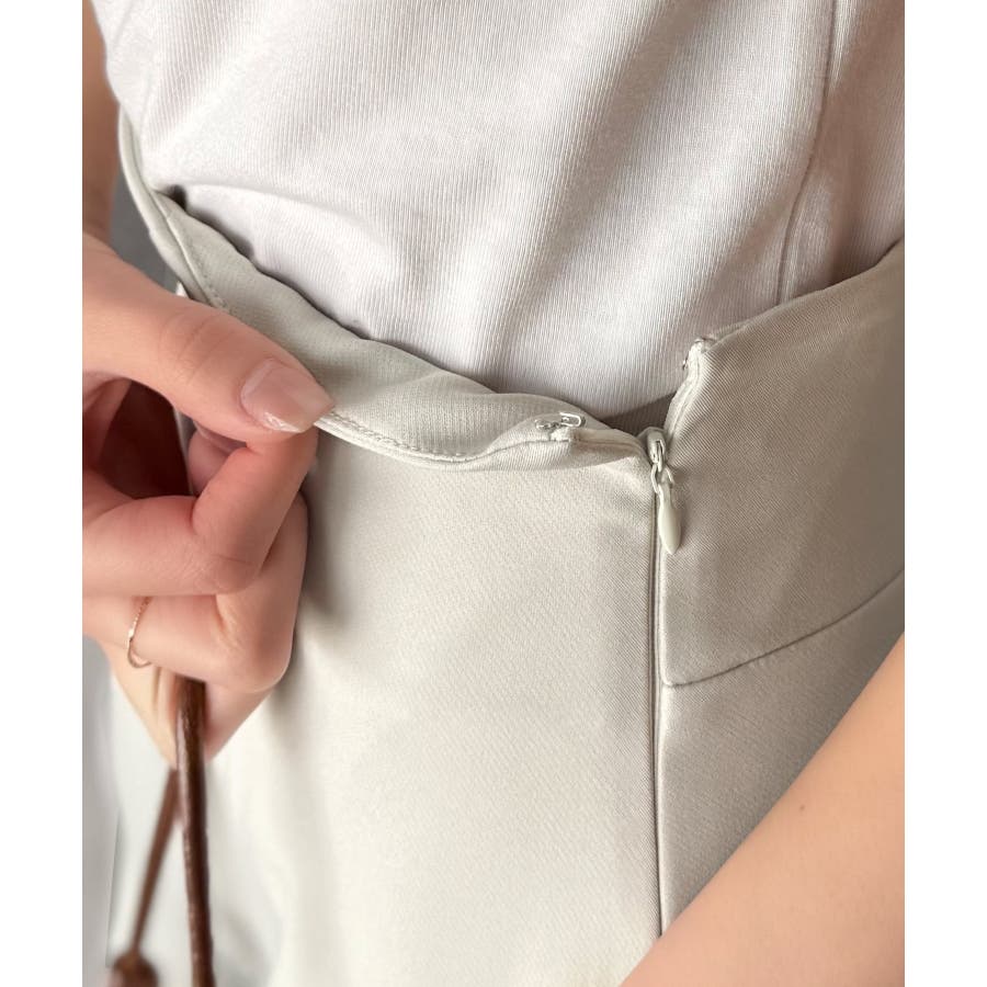 後ろウエストはゴムシャーリングでフィット感◎、左脇のコンシールファスナーで脱ぎ着も簡単。