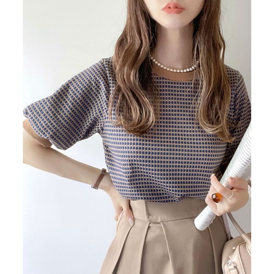 レトロムードな1枚。ハニカム柄ジャガードニットソー