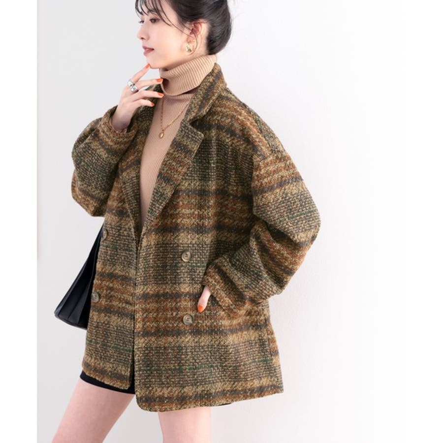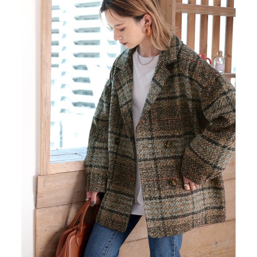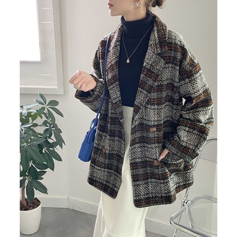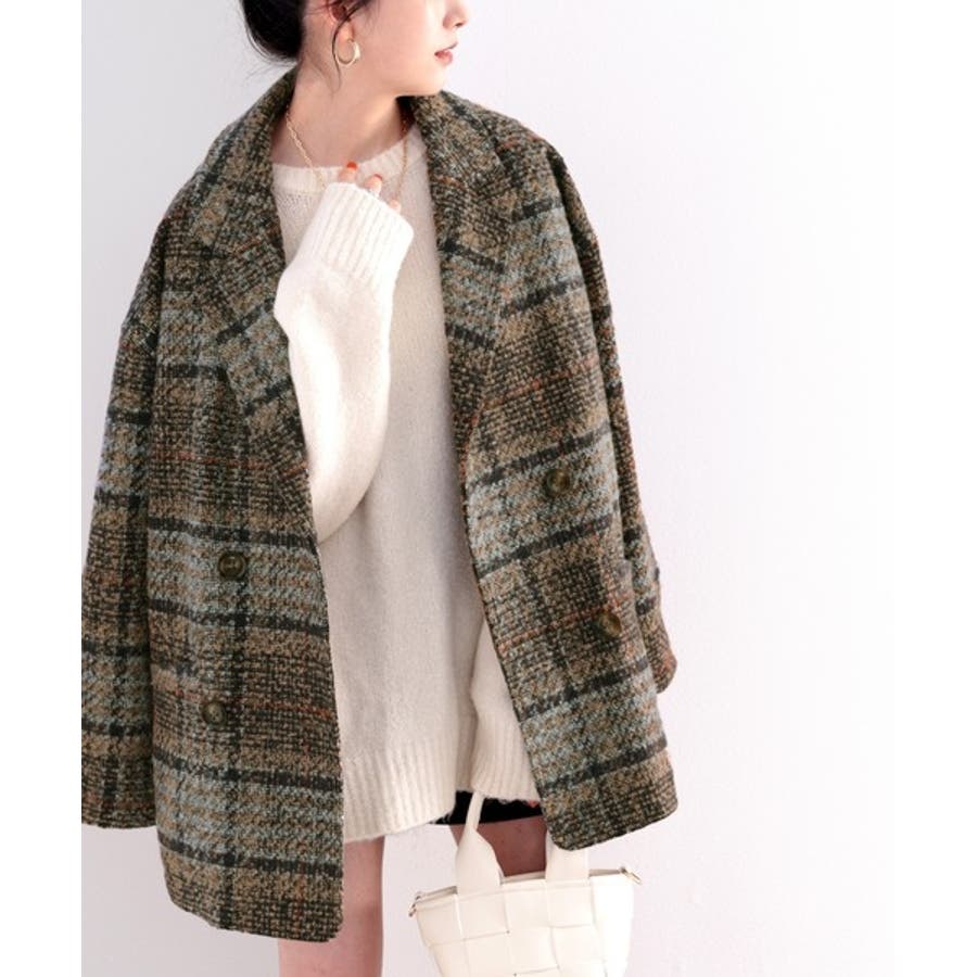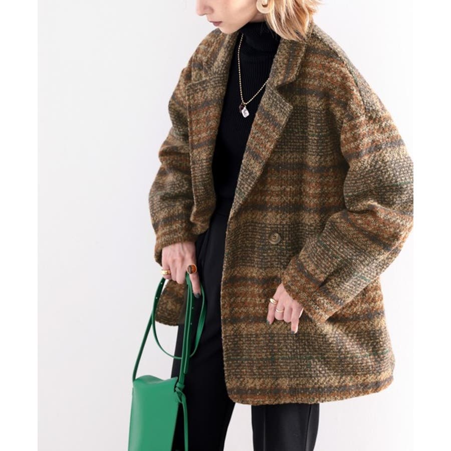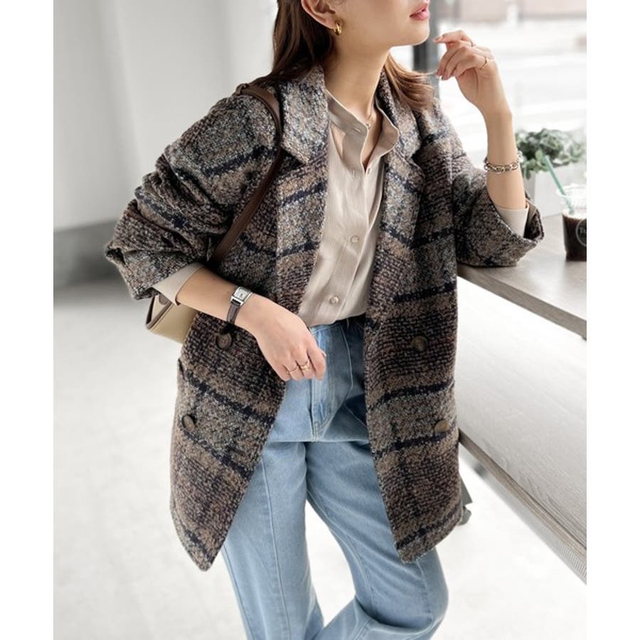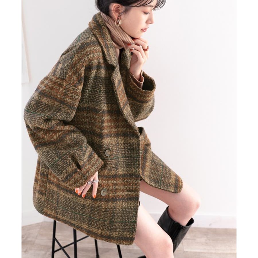 レトロな主役級アイテム。ブークレー起毛チェック柄ダブルジャケットコート
