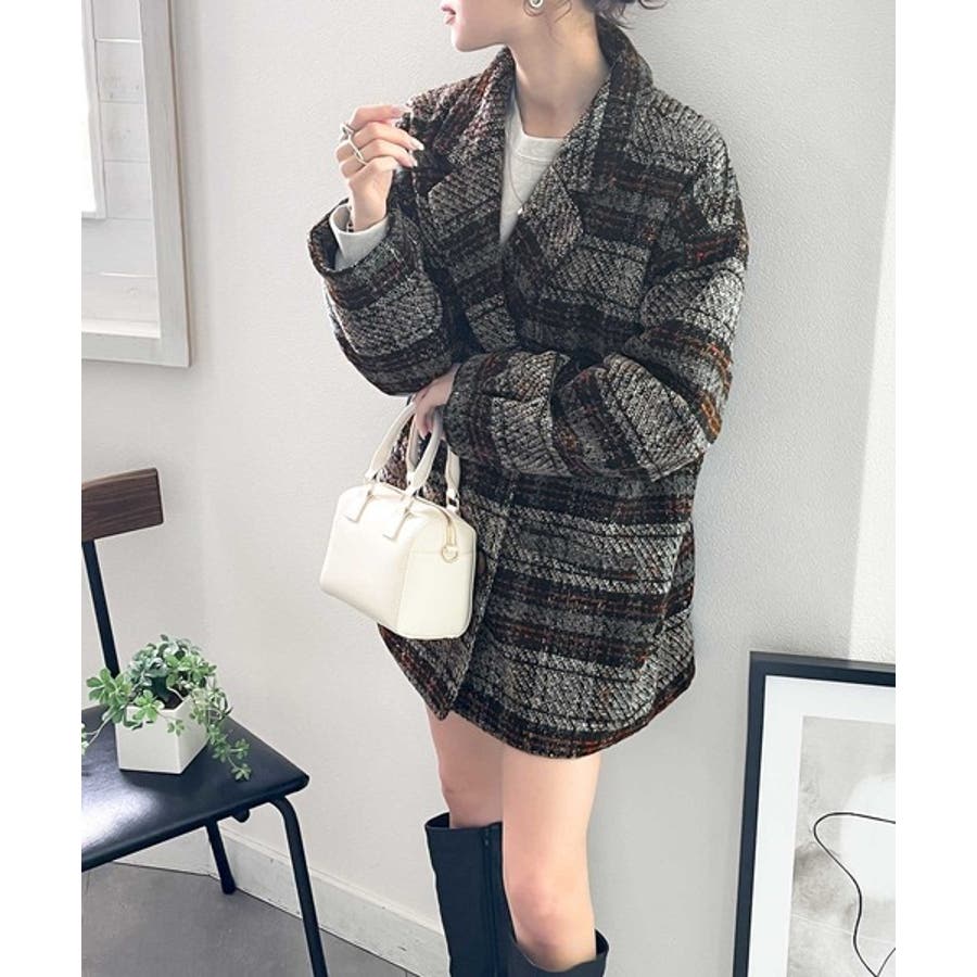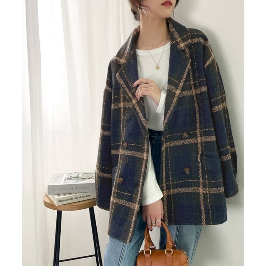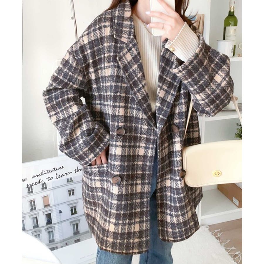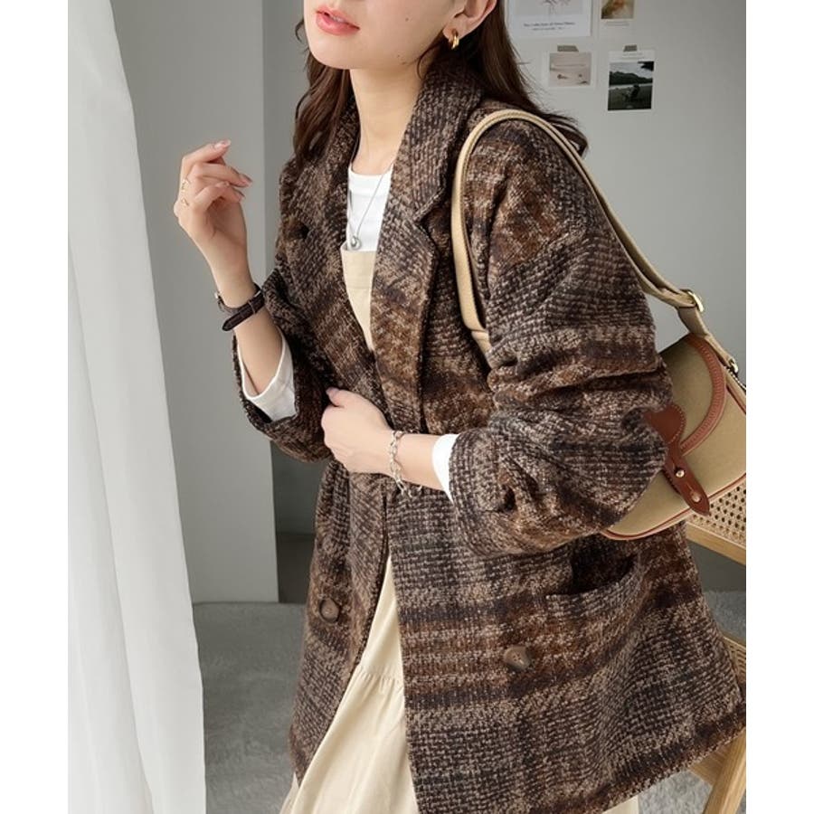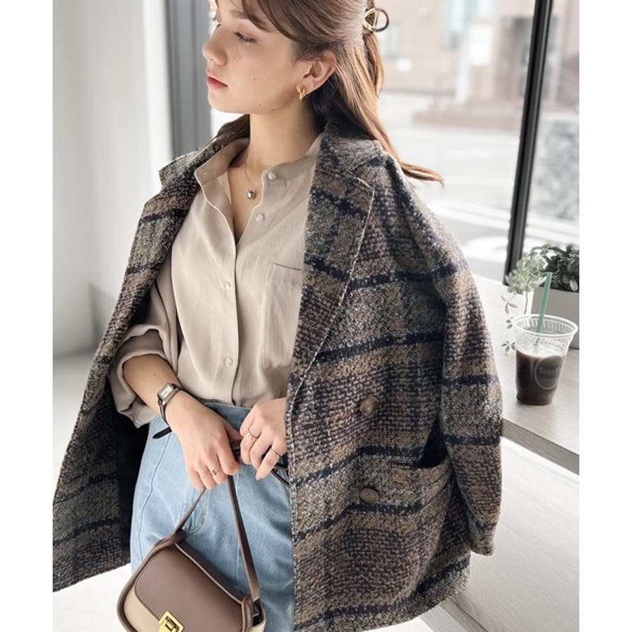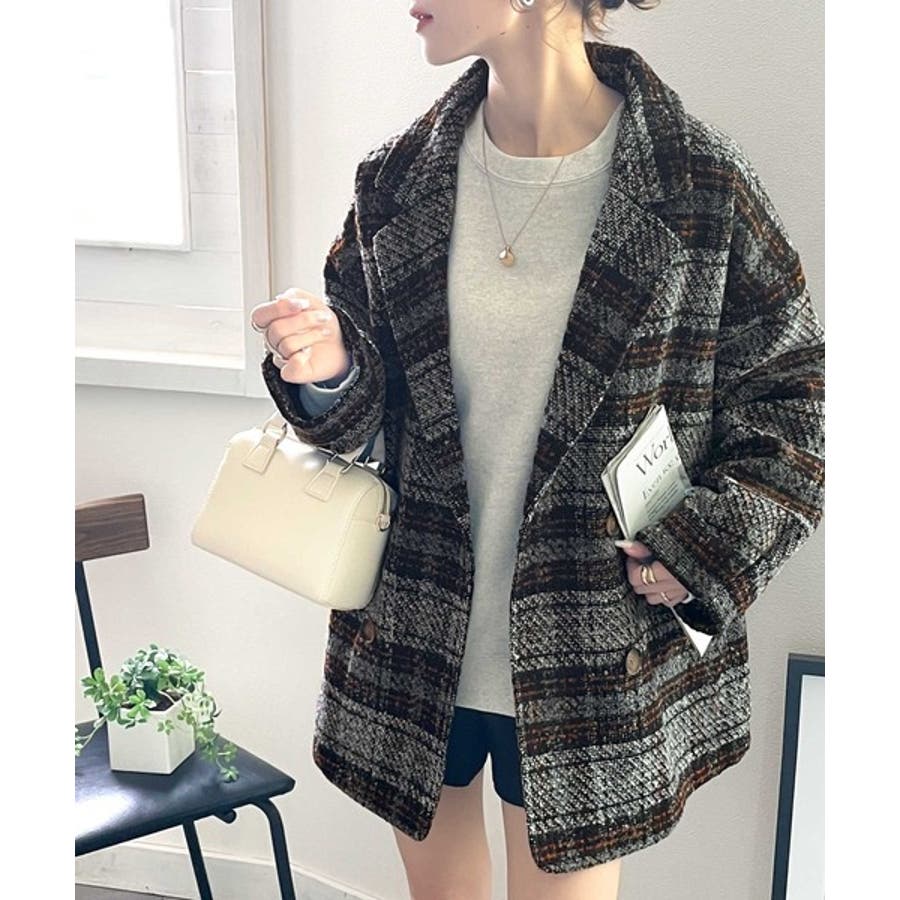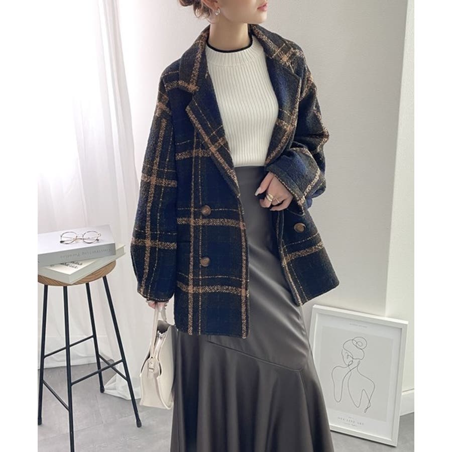 レトロな主役級アイテム。ブークレー起毛チェック柄ダブルジャケットコート