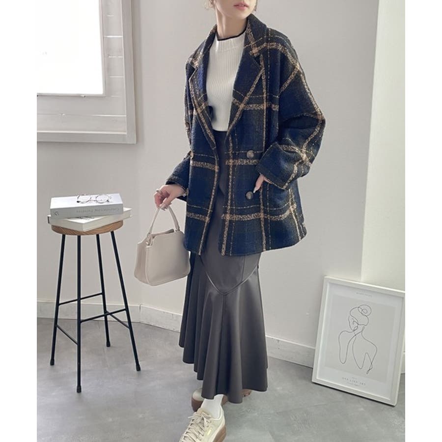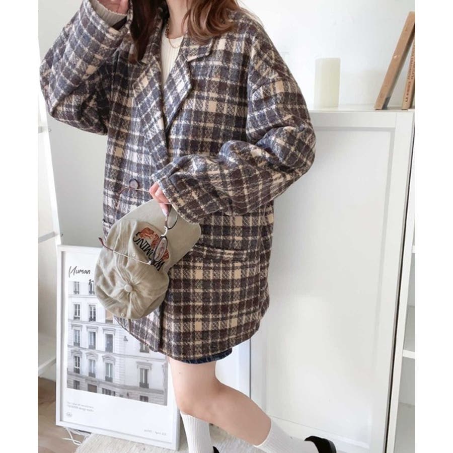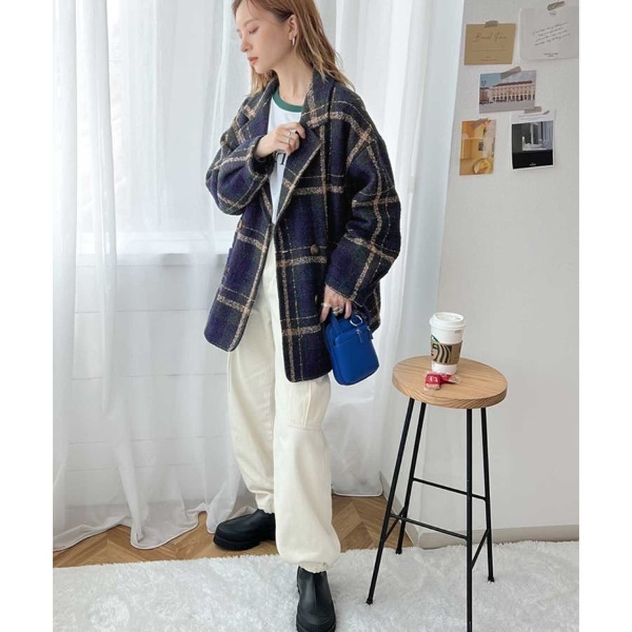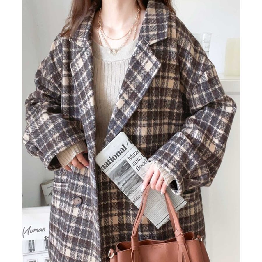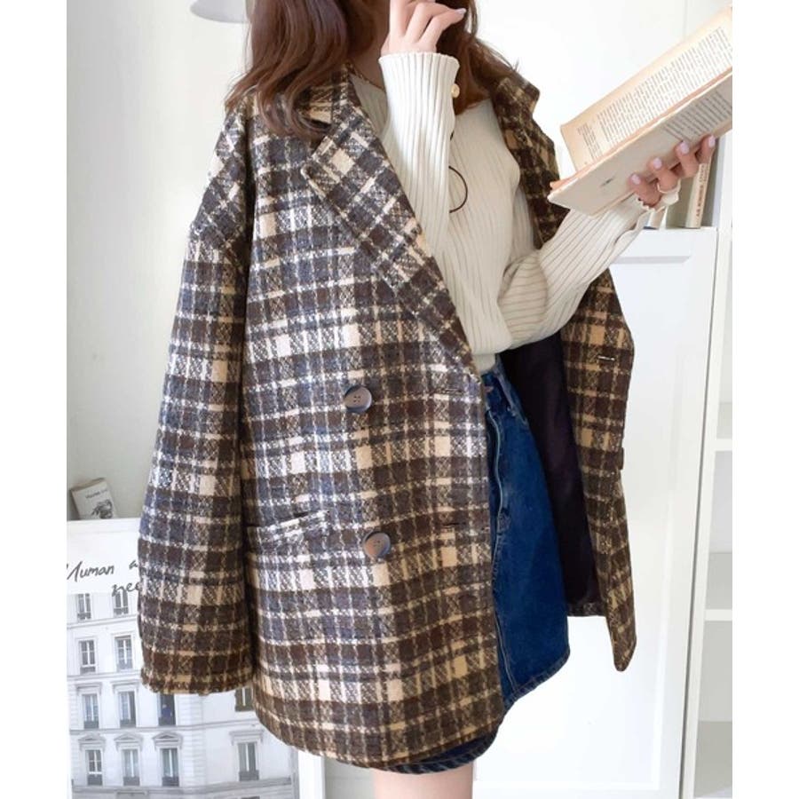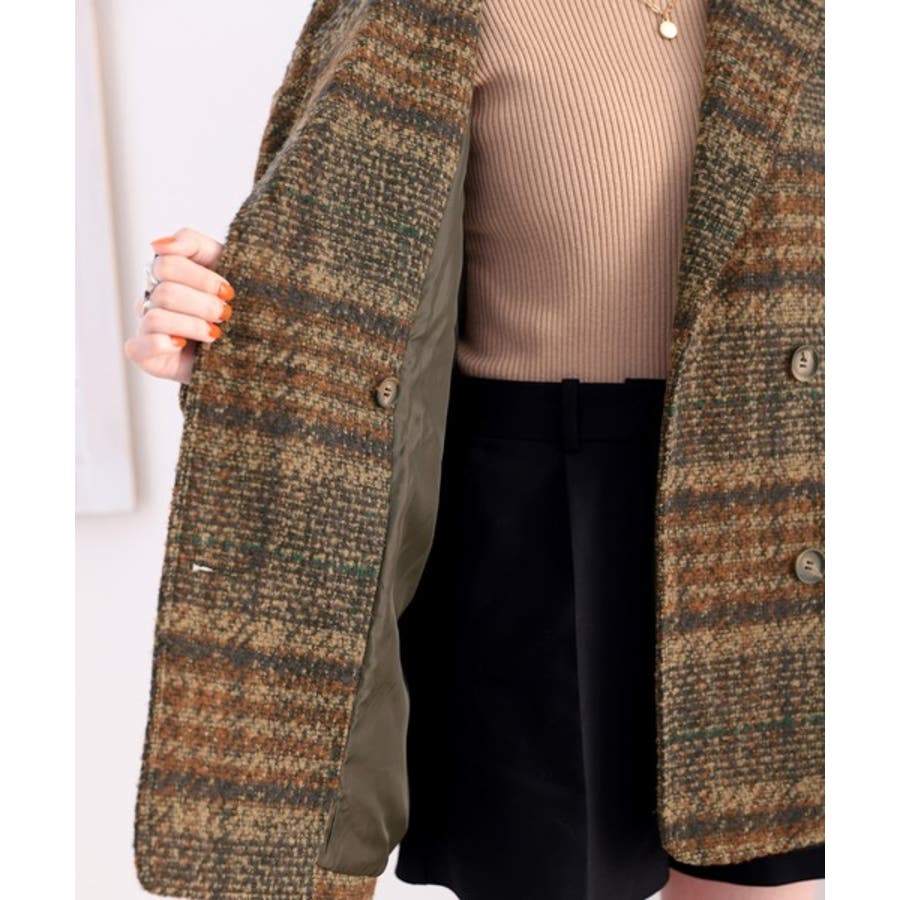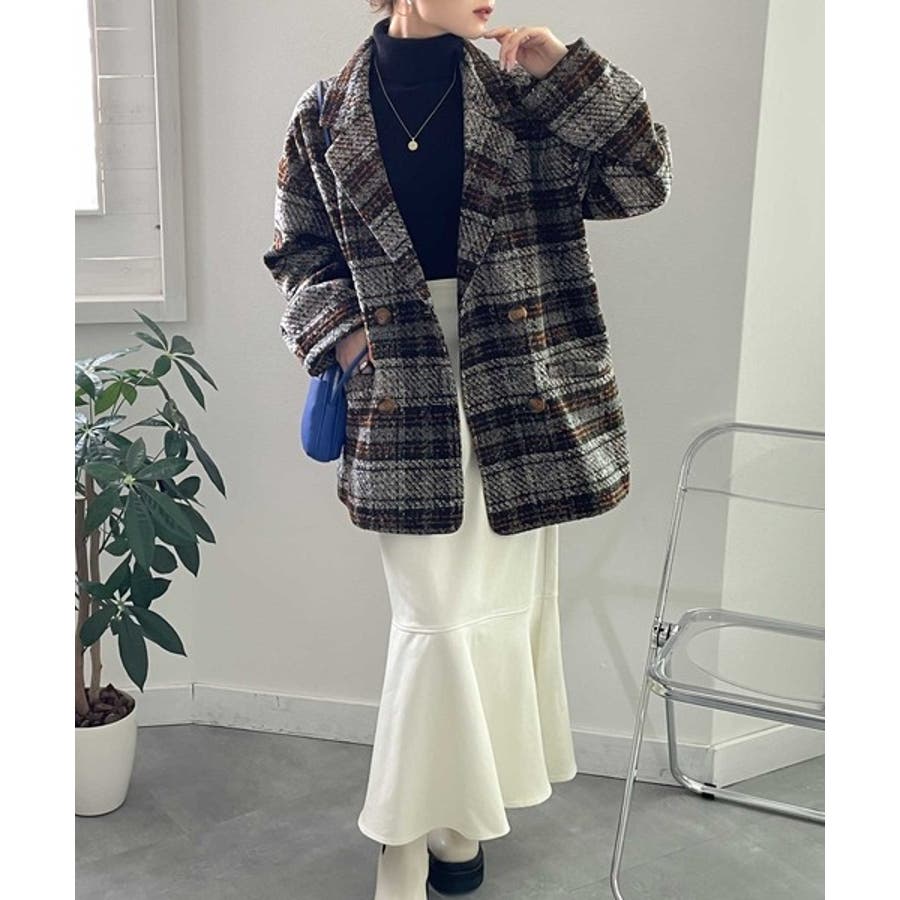 レトロな主役級アイテム。ブークレー起毛チェック柄ダブルジャケットコート