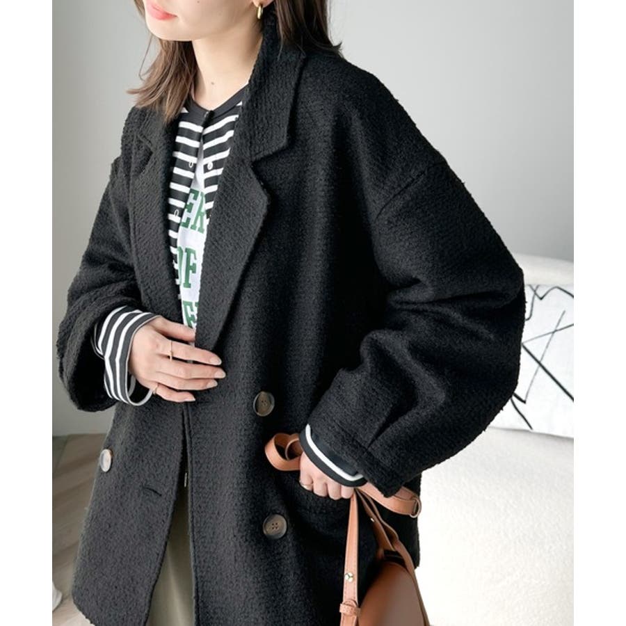 可愛らしい表情を見せてくれるブークレー素材のコート。