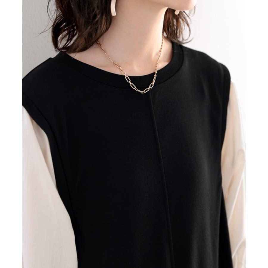 旬顔、ぽわん袖。異素材ドッキングワンピース