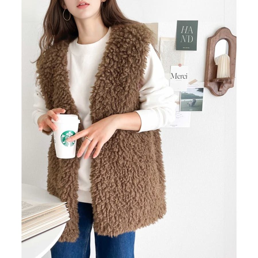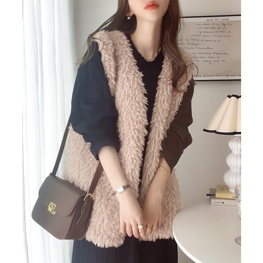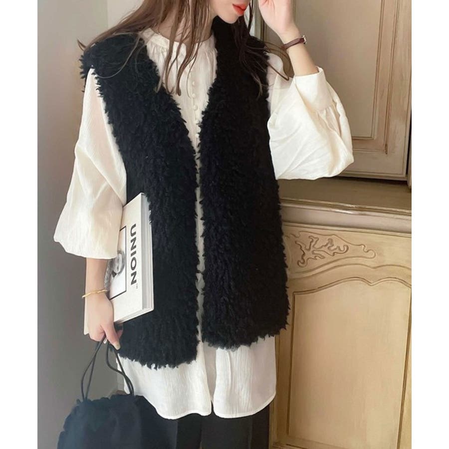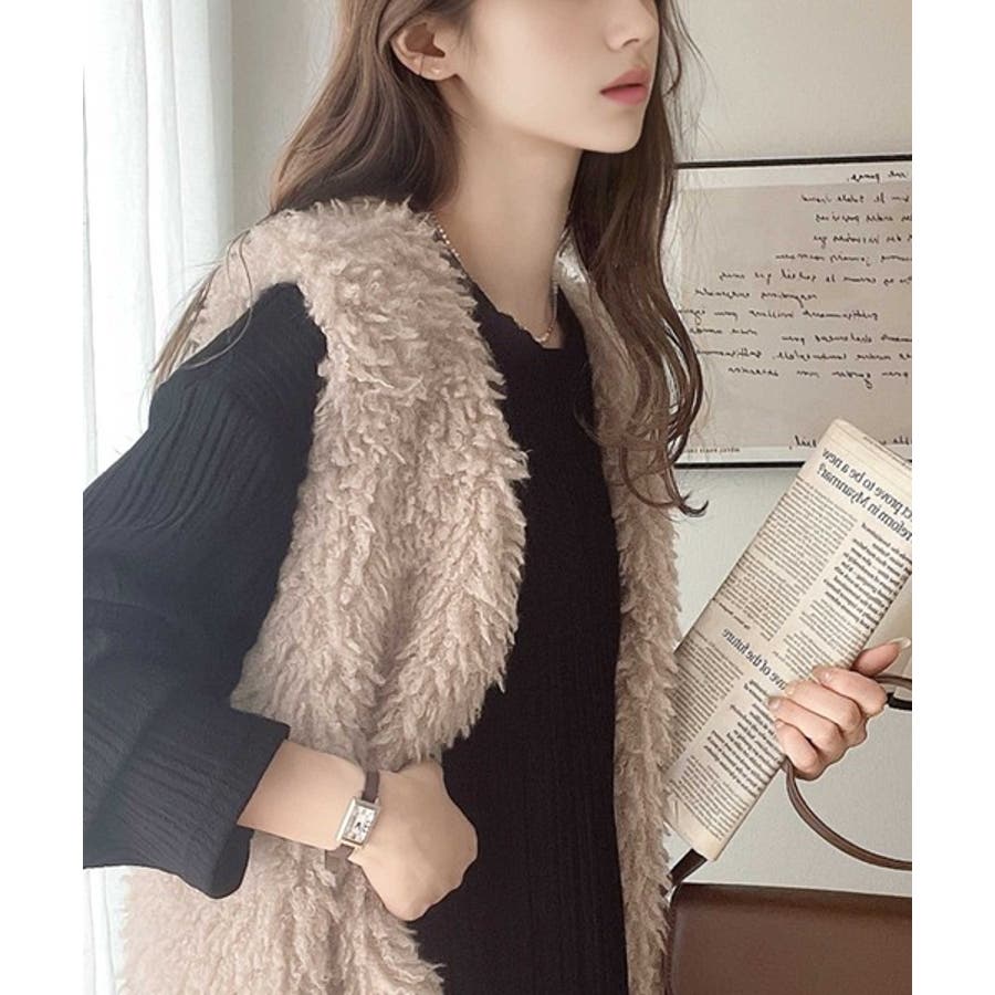 パッと目を惹くコーデの主役。ボリュームプードルフェイクファーベスト