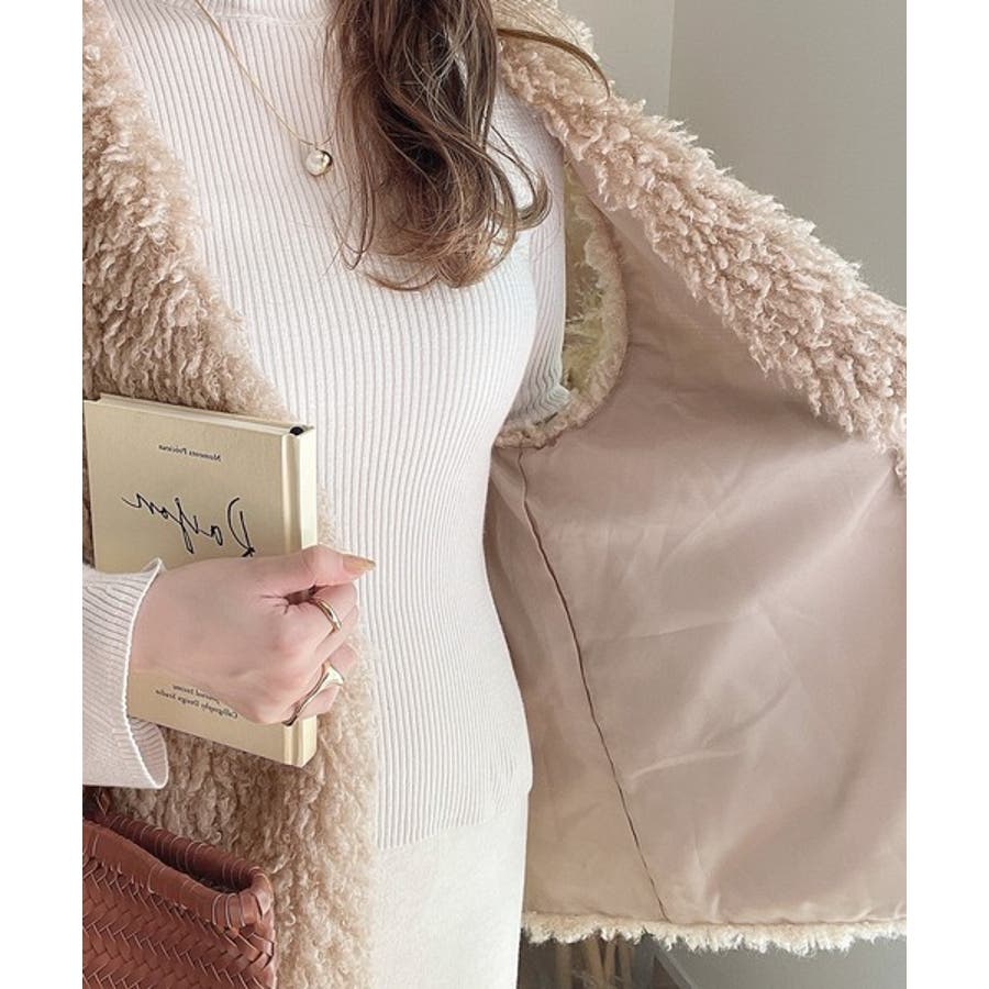 ボリュームたっぷりのプードルフェイクファーが大人可愛く着こなせます。