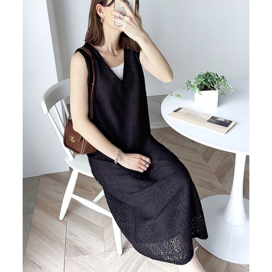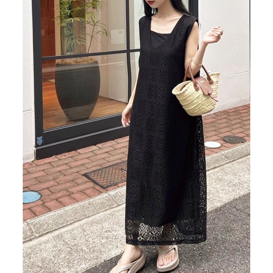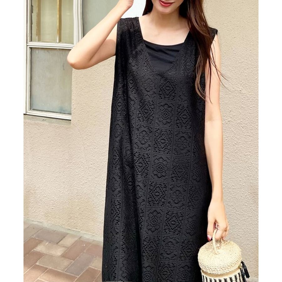 雰囲気溢れるパネルレースのワンピース。