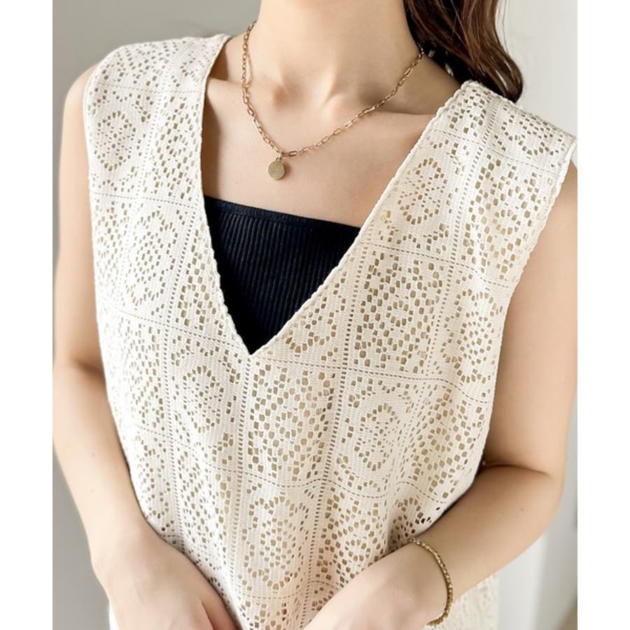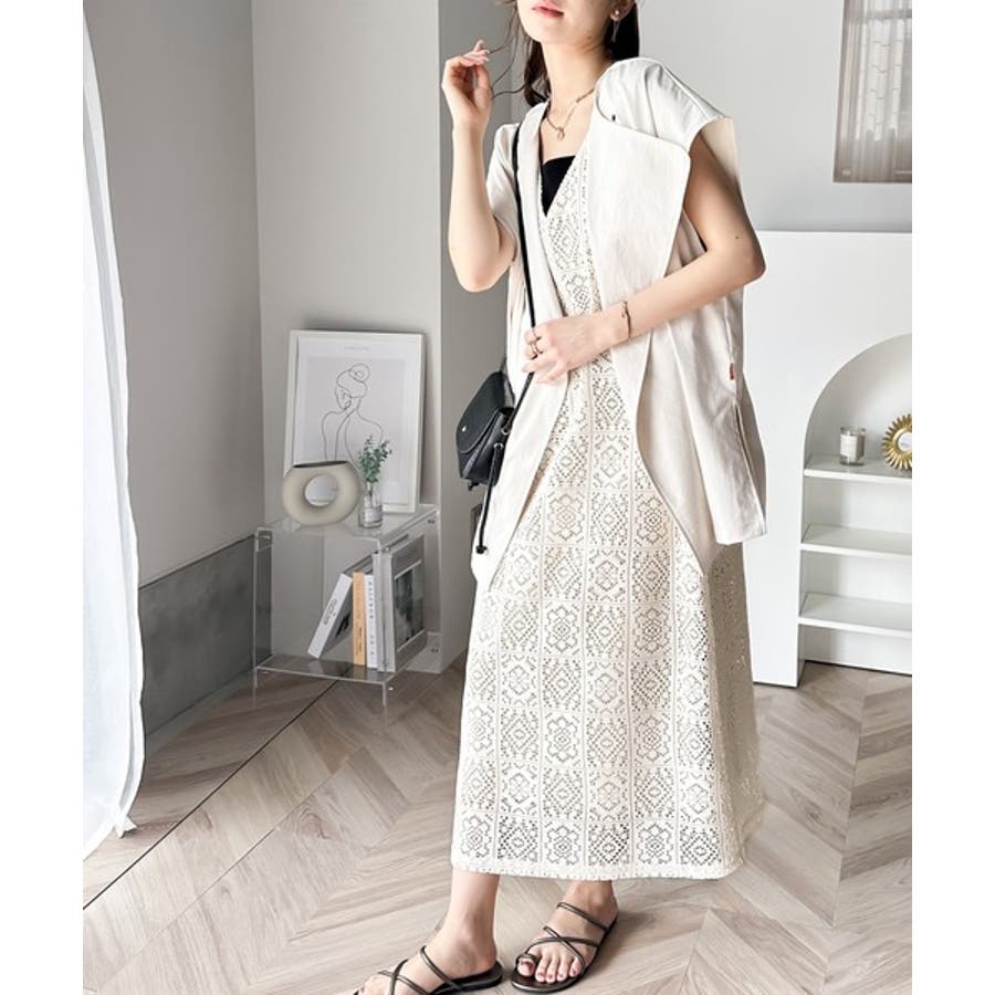 総レースだからこそ、インナーを透けさたレイヤードが映えるアイテム。