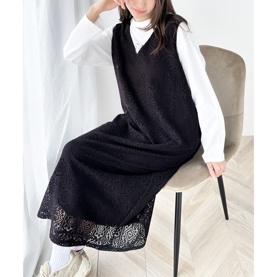 レトロ調のパネルレースが愛らしいジャンパースカート。
