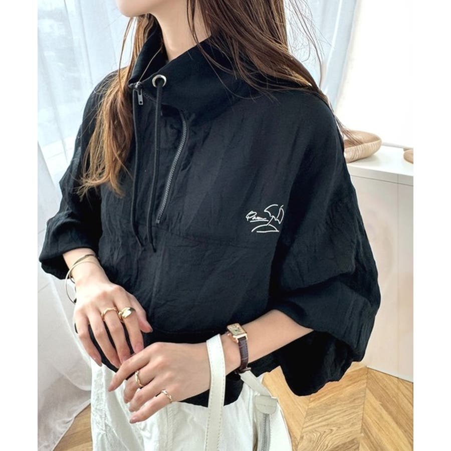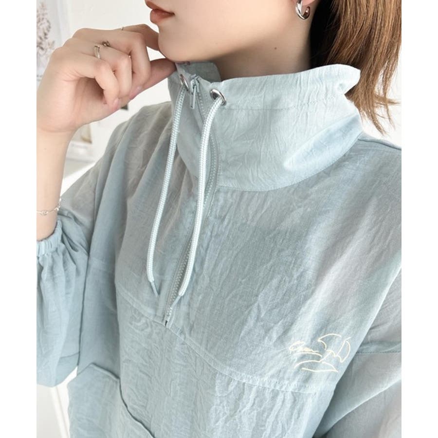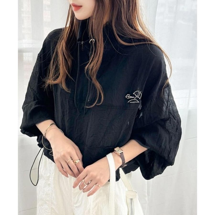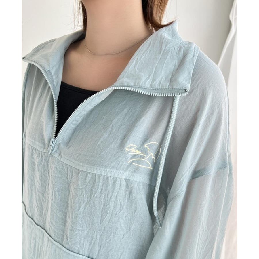 軽やかにこなれ感も漂う。胸パラソル刺繍シアーハーフジッププルオーバー